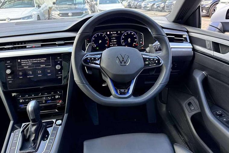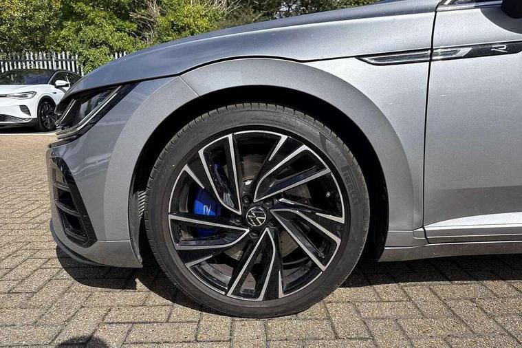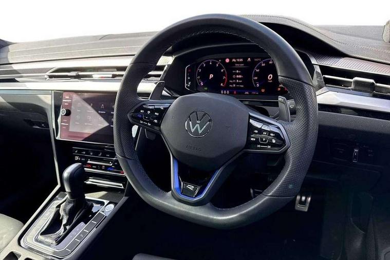 Adaptive cruise control (ACC) with speed limiter, front assist (reacting vehicles pedestrian and cyclists) and follow to stop, Advanced driver attention and drowsiness monitor, App connect including wireless Apple CarPlay, Camera for warning system, Digital cockpit with 10.25" high resolution TFT display screen with customisable menus and information, Driver profile selection including ECO function, Dynamic road sign display, eCall - Emergency call service for SOS calls to emergency response, Emergency assist, Hands free boot opening, Press and drive key, Progressive steering, R driving mode button on steering wheel, Side scan lane change assist including rear cross traffic alert, Speedo and rev counter, electronic odometer, trip, service interval display and exterior temperature gauge, Tailgate, Travel assist - Lane keeping assist and traffic jam assist, Voice activation for telephone and navigation, All wheel drive - 4Motion, Start/stop function with battery regeneration, XDS electronic differential lock, External, USB type C data sockets with increased charging performance front (45 Watt), Premium USB cable in choice of either Apple or Android smartphone compatibility, Auto dimming interior rear view mirror, Automatic coming/leaving home lighting function, Automatic headlights, Body colour door handles, Body colour side skirt, Body coloured top and matt black lower door mirrors with integrated indicators, Chrome side window surrounds, Dynamic headlight range control, Electric folding door mirror, adjustable, heated with front passenger exterior mirror lowering function, Front and rear electric windows, Front and rear stainless steel door sill protection, Front windscreen washers and wipers with 4x interval delay, Heat insulating side and rear windows, Heated rear windscreen, Heated windscreen washer jets, LED 3rd brake light, LED rear combination lamp with dynamic indicators, LED rear number plate lights, Left and right chrome effect twin trapezoid exhaust tailpipe surrounds, Panoramic sunroof with tilting and sliding including integrated roller blind, R Line design body coloured bumpers, R logo light projection, R logo on radiator grille, side panels and rear, R specific radiator grille, R specific rear bumper and R specific diffusor in black, Rain sensor, Rear fog lamp on one side and reversing lamp on both sides, Rear side wing doors, Rear tinted glass from B pillar backwards, approx 65% tinted, Rear windscreen washer and wiper with interval delay, Roof spoiler, 12V socket in front centre console, 12V socket on rear of front centre armrest, 14way electric adj front seats with lumbar + ergoComfort driver seat with memory/massage, comfort entry, integrated front headrest + door mirror memory, 3 rear head restraints, 3 seat bench in 2nd row, 30 colours options interior ambient lighting, 60:40 split folding rear seat backrests with centre armrest, Air care climatronic 3 Zone electronic air conditioning with automatic air recirculation, Chrome trim on upper and lower air vents extending across cockpit, Driver and front passenger sunvisor with vanity mirror, Front cupholders x 2, Front footwell illumination, Glovebox, Heated front seats, Height/reach adjust steering wheel, Isofix child seat preparation easy fit for two outer rear seats, Luggage compartment lighting, Nappa leather upholstery with side bolster and headrest, Pedals and footrest in stainless steel, Premium sports seats with R-logo, R performance leather wrapped heated multi-function sports steering wheel with touch controls and larger shifting paddles, blue stitching and R-logo, R specific floor mats with R-logo and stitching, Removable luggage compartment cover, Single front passenger seat, Split folding front seat backrest with front centre armrest, Titanium black roof lining, Two LED front reading light, 18" performance brakes, 3 rear three point seatbelts, ABS+EBD+Brake assist, Child locks on rear doors, Driver airbag and front passenger airbags with deactivation switch including driver knee airbags, Electronic parking brake, Electronic stability control (ESC) and Electromechanical brake booster, Front disc brakes, Front side airbags with curtain airbags, Hill start assist, Pro active occupant protection to detect critical situations with elevated accident potential from the front, R performance torque vectoring, R specific blue brake calipers, Rear disc brakes, Three point height adjust front seatbelts + pretensioners, Two tone horn, Tyre pressure monitor, Warning buzzer for seatbelts if unfastened, Warning triangle, Alarm with interior protection with deactivation via infotainment system, Electronic engine immobiliser, Keyless entry system including start/stop button on centre console, Remote central locking, Aluminium decorative inserts, Chrome trim on lower doors in front and rear, Leatherette insert on door and side trim panel in foam film, Piano black decorative inserts in centre console, R specific decor inlay aluminium black carbon,