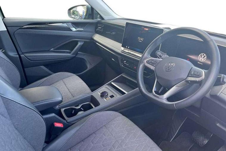 Adaptive cruise control (ACC), Advanced driver attention and drowsiness monitor, Bluetooth mobile phone interface, Digital Cockpit Pro - 10.25" high resolution dash display screen with customisable menus and information, Dynamic road sign display, E-Sim card for online connectivity, eCall emergency call service, Front Assist - Autonomous emergency braking with pedestrian and cyclist monitoring, Lane change system, Side assist, Rear traffic alert and Exit warning system, Lane keeping system Lane Assist, Multifunction front facing camera, Oncoming vehicle braking when turning including swerve support, Park assistance plus with front and rear parking sensors, Power assisted steering with speed sensitive, Start/stop system with regenerative braking, Warning signal and warning light for front and rear seatbelts not fastened, Wireless App-Connect, Front wheel drive, Digital radio reception (DAB), Diversity antenna for FM reception, Ambient lighting with logo projection, Auto dimming interior rear view mirror, Automatic headlight control system, Body coloured bumpers and air intake with chrome trim, Body coloured door handles, Body-coloured exterior mirror housings, Coming/leaving home lighting function, Heat insulating glass in side and rear windows, Heat insulating windshield, Heated rear window, High level 3rd brake light, Illuminated door handle recesses, Illuminated lightline between headlamps, Rain sensor windscreen wipers, Rear fog light on one side, reversing light on both sides, Rear side wing doors, Rear wiper, 12V outlet in center console rear and in luggage compartment, 12V socket in centre console, 3 bench rear seats in 2nd row, Air care climatronic 3 zone air conditioning system with rear air conditioning control panel, Carpet mats, front and rear, Centre console with illuminated storage compartment with sliding cover and two drinks holders, Ceramique headlining, Door and side trim panel in foam film and woven fabric, Front centre armrest, ISOFIX anchors for child seats on outer rear seats and front passenger seat compatible with i-Size, Mechanical rear seat release, Power adjustable lumbar support in front, Rear bench seat, split folding, longitudinally movable and folding with load-through hatch and centre armrest, Safety optimised front head restraints, Single front passenger seat, Sun visors with illuminated vanity mirrors, Three rear head restraints, Variable luggage compartment floor, Comfort package incl. Memory feature for Park assist and Safelock - Tiguan, Design package - Tiguan, 3 point seat belt for centre rear seats, 3 Point seat belts in front with pretensioners, 3 point seatbelts in outer rear with ECE label, Driver and front passenger airbag with front passenger airbag deactivation, Electronic parking brake with auto hold, Front and rear curtain airbags, Front and rear side airbags, Front centre airbag, Front disc brakes, Manual child proof rear door locks, Rear disc brakes, Two tone horn, Warning triangle, Anti theft wheel bolts, Soul instrument panel,