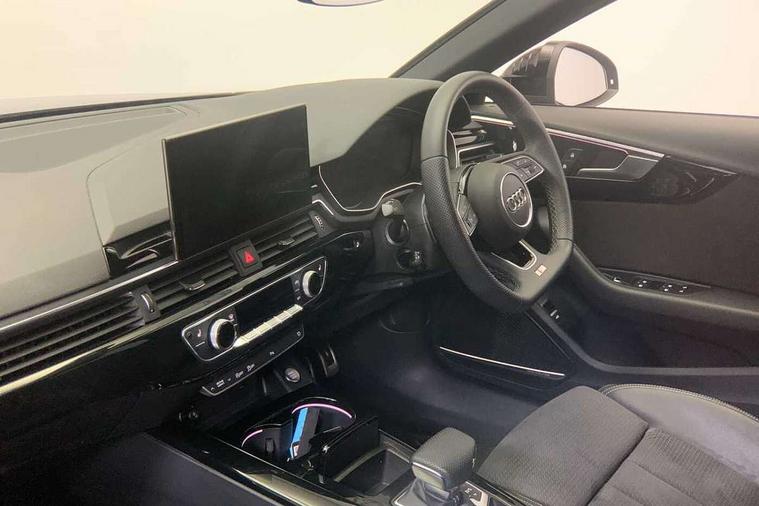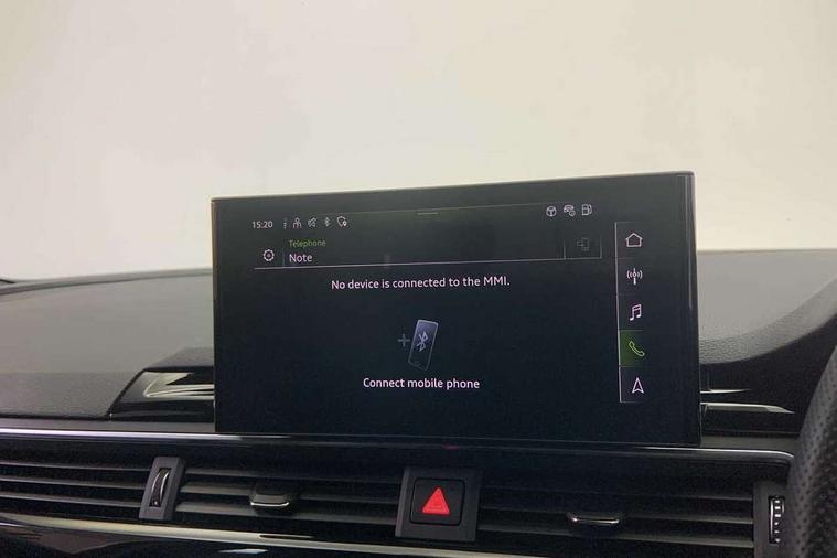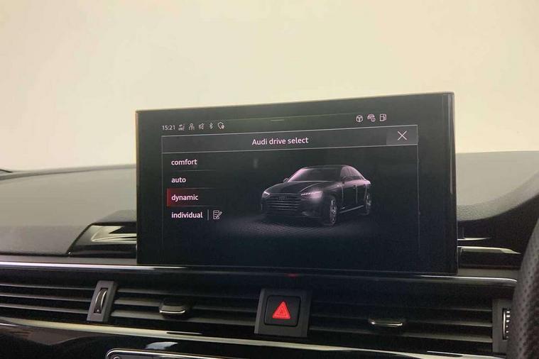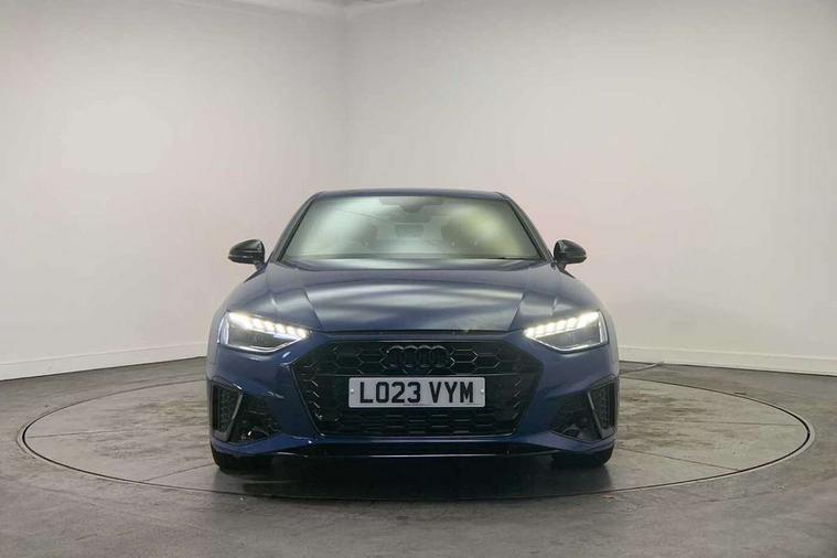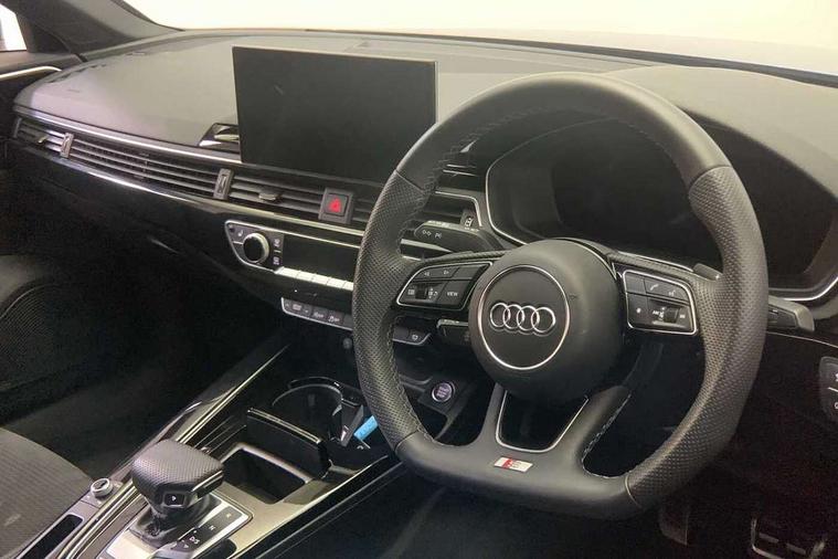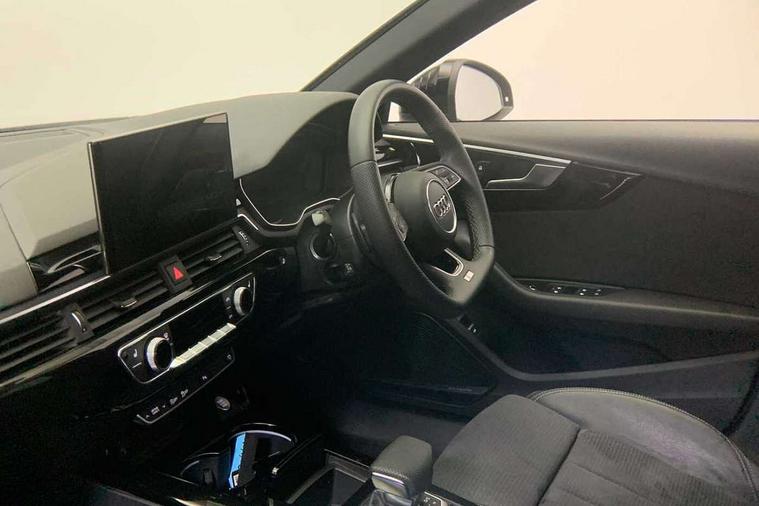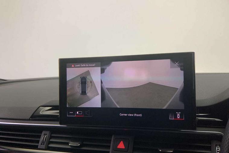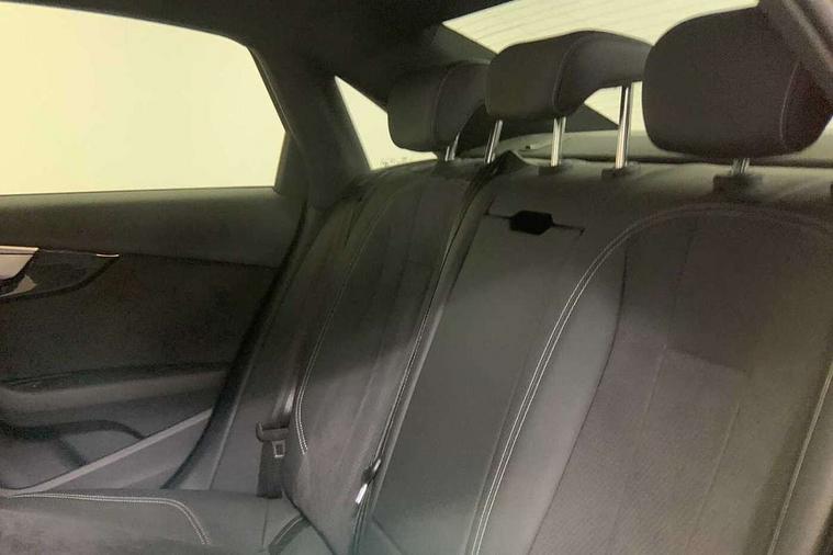 Audi connect safety and service (e-call), Audi drive select, Audi smartphone interface, Audi virtual cockpit, Automatic start-stop system with coasting functionality and efficiency programme, Bluetooth interface, Camera based traffic sign recognition, Electric boot lid release, Electromechanical power steering, Email, calendar and text messages displayed via MMI, Front and rear parking sensors, Lane departure warning, MMI Navigation plus with MMI touch includes 10.1" high resolution colour MMI display, 3D map, Rear view camera, Voice control system, 54 litre fuel tank, Sports suspension lowered by 23mm, 2 USB charging ports, 8 passive loudspeakers, DAB digital radio reception, Audi beam uses LEDs to project the audi logo onto the ground as you exit your A4, Auto dimming rear view mirror, Black Audi rings and black badging (model name in black badging, no engine badging), Body colour door handles, Body colour front spoiler lip, Body colour side sill trim, Electrically folding auto dimming/adjustable/heated door mirrors with LED side indicators and kerb view function for passenger side, Exhaust tailpipes in high dark chrome, Grained matt black side air inlets with matt aluminium silver inlay, High beam assistant, High gloss black B pillar trims and triangular rear door trim, LED headlights with LED rear lights + dynamic rear indicators + headlight adjustment and high beam, turning light + LED daytime running lights, LED third brake light, Privacy glass, Rain and light sensors, Rear boot, Rear diffuser in matt black with trim strip in matt aluminium silver, Rear side wing doors, Sport front and rear bumpers with side skirts, Variable intermittent front wash/wipe, Windscreen with acoustic glazing, 4 way electric lumbar support for driver and front passenger, 40/20/40 split folding 3 rear seat bench in 3 parts with rear centre armrest, Black cloth headlining, Black perforated leather gearknob, Contrast stitching on seats, steering wheel and gear lever gaiter, Deluxe 3 zone electronic climate control, Door sill trims with aluminium inlay, Front and rear head restraints, Front centre armrest, Heated front seats, Illuminated door sill trims with S logo, ISOFIX child seat mounting and top tether, Manual seat adjustment, Single front passenger seat, Stainless steel pedals and foot rest, Black styling pack - A4 Saloon, LED Interior light pack - A4/S4, 3 rear seatbelts, 6 airbags - Driver, front passenger, curtain and side windows, Attention and drowsiness assist, Electronic Stabilisation Control (ESC) including ABS, ASR and EDL, Hill hold assist, Multi collision brake assist, Pop-up bonnet for pedestrian protection, Pre sense city, Rear door child safety locks, Seatbelt monitoring, Warning triangle and first aid kit, Anti theft alarm, Anti theft wheel bolts, Central locking, Keyless Go, Piano black finish inlay, Tool kit, Tyre repair kit,