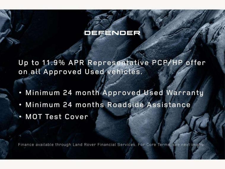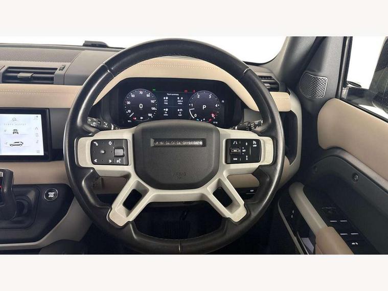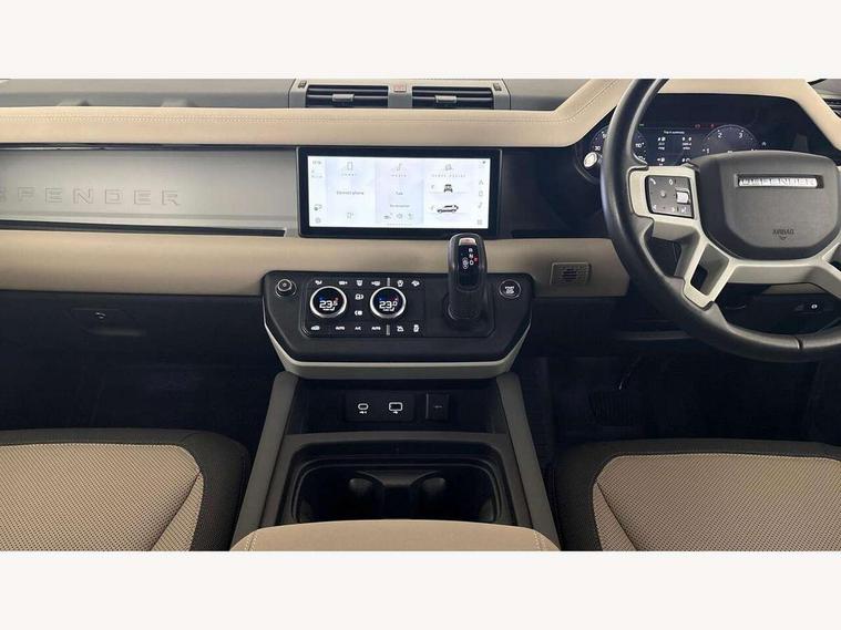 360 degree parking aid, 3D Surround Camera with 360 View, 180 Rear View, Front Traffic Detection, Forward Vehicle Guidance, Tow Hitch Assist and clear sight Ground View, Adaptive cruise control, Android Auto, Apple CarPlay, Assisted tailgate with soft close, Bluetooth system, Brake pad wear indicator, Connected navigation pro, Driver condition monitor, Electric power assisted steering (EPAS), Lane keep assist, Push button start, Traffic sign recognition with adaptive speed limiter, Trip computer, Wade Sensing, 8 speed automatic transmission, All wheel drive system, Twin speed transfer box, DAB Radio (Digital Audio Broadcasting), Meridian 400w sound audio system with 11 speakers and subwoofer, Pivi pro connected, Auto high beam assist, Automatic headlight levelling, Automatic headlights, Centre high mounted stop light, Electric heated/power fold door mirrors with approach lights and auto dimming driver side, Electric windows with one touch open/close and anti-trap, Follow me home lighting, Front fog lights, Heated rear window with timer, Heated windscreen, LED tail lights, Premium LED headlights with signature DRL, Privacy glass, Puddle lights, Rain sensing windscreen wipers, Rear fog lights, Rear side wing doors, Rear wiper, Side hinged tailgate, Trailer stability assist, X-Dynamic badge, 12V power socket in loadspace, 3 seat bench in 2nd row, Alpine lights, Durable rubber cabin flooring, Durable rubber loadspace flooring, Footwell lights, Front head restraints, Loadspace cover, Loadspace Hook, Multifunction steering wheel, Overhead stowage for sunglasses, Rear headrests, Rear ISOFIX, Rear reading lights, Single front passenger seat, Standard seat configuration, Storage glovebox, Sunvisors with illuminated vanity mirrors, Online pack with data plan - Defender, 5 x 3 point seatbelts, ABS, Brake hold function, Cornering brake control (CBC), Customer configurable autolock, DSC - Dynamic Stability Control, EBD - Electronic brakeforce distribution, Electric parking brake (EPB), Emergency brake assist, Emergency braking, ESP + traction control, Front airbags with passenger seat occupant detector, HDC - Hill descent control, Hill launch assist, Low traction launch, Power operated child locks, Remote for (e-Call, Optimised assistance call, InControl app, Climate, beep and flash and door), RSC - Roll stability control, Seat belt reminder, TPMS (Tyre pressure monitoring system), Alarm, Immobiliser, Intrusion sensor, Keyless entry, Locking wheel nuts,