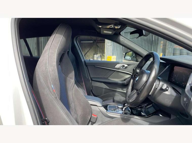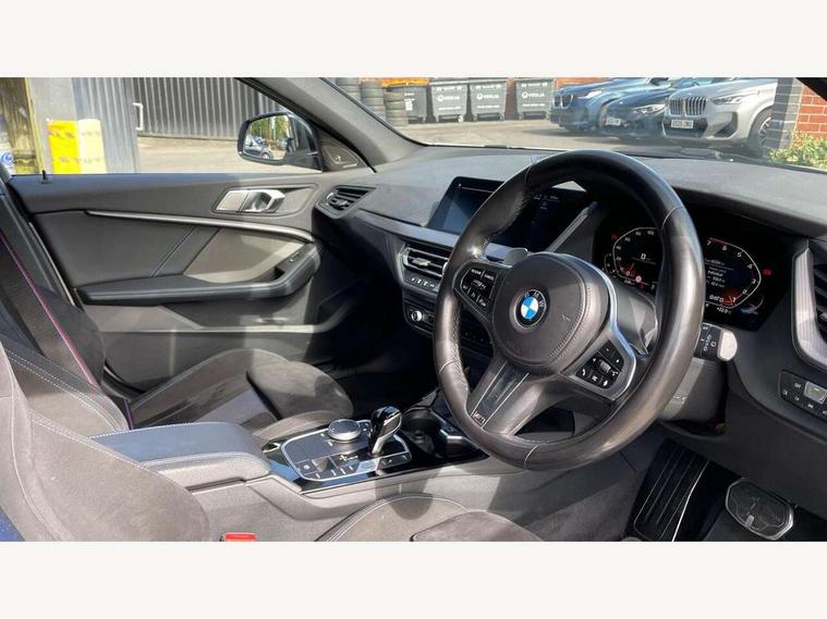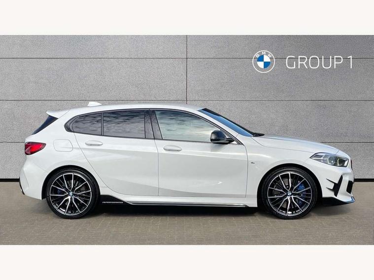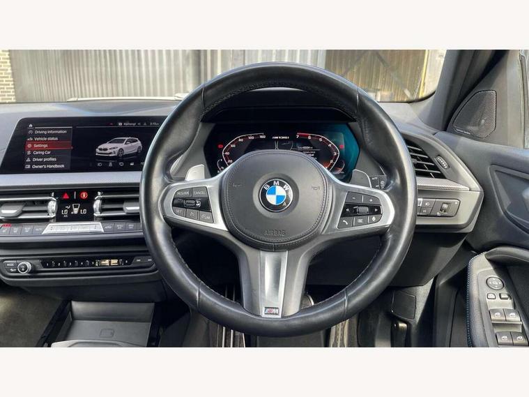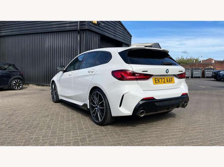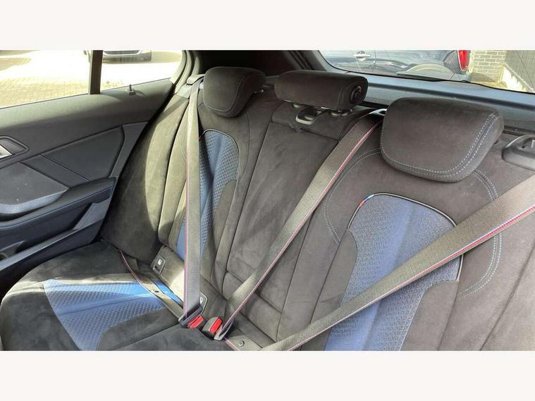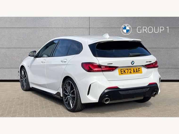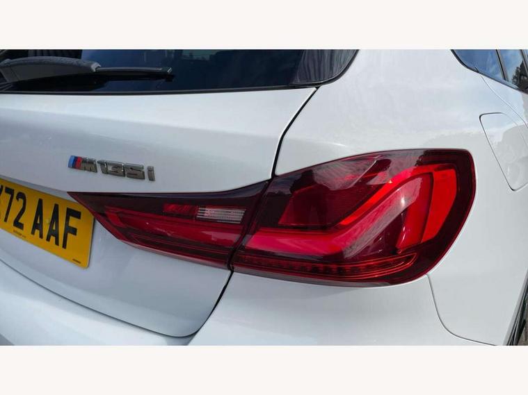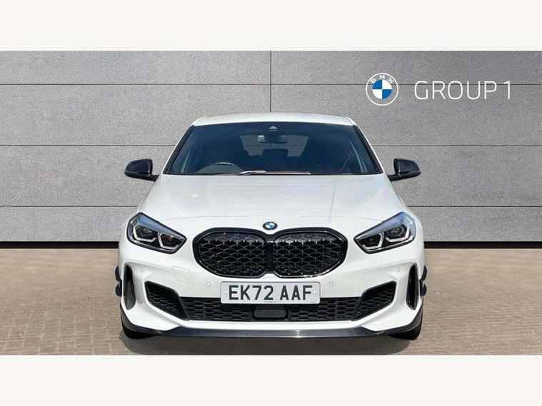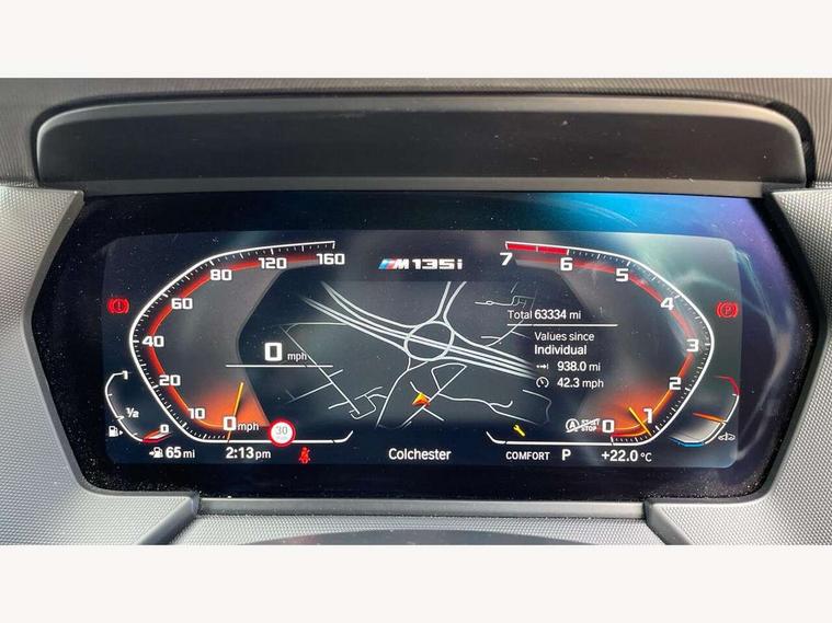 Active guard plus, Attentiveness assist, BMW ConnectedDrive online services, BMW Teleservices, Check Control warning system for monitoring of lights and door/luggage compartment open warning, Cruise control with brake assist, Eco pro mode, Electric power steering, Electro hydraulically controlled multi-plate clutch transfers drive to rear axle and with power take-off device located on the front differential., Energy efficient operating strategy, Front axle single joint with specific axle kinematics to minimise drive influences on steering + provide increased rigidity agile driving behaviour, Gearshift time display in manual mode, Integrated owners handbook, Lane departure warning system, M Sports steering with M135i xDrive specific settings, Oil sensor for level and grade, On board computer, Optimum shift indicator, Personal Profile, Pull away assistant, Rigidly mounted rear subframe - Multi link construction with separate spring / damper configuration and excellent driving characteristics, Speed limit Info including no-overtaking indicator, Speed limiter, Sporty fast gear shifting in sport mode, Aluminium lightweight construction, Anti roll bar front and rear, Balancer shaft, Double VANOS, Drive Performance Control, Eight speed sport automatic transmission with gearshift paddle switches, Electronic differential lock, Electronic selector lever, Engine cover with M performance designation, High precision injection, Larger fuel tank capacity (50 litres), Launch control, M135i specific heavily de-throttled engine intake air guide, M135i specific high-performance cooling package, M135i specific larger turbocharger with integrated divert-air valve, Petrol Particulate Filter, Twin tube gas filled shock absorbers with degressive characteristic curve, VALVETRONIC engine management, Variable, stepless and infinitely adjustable distribution of drive torque between the front and rear axles, xDrive intelligent all wheel drive with M135i specific reinforced components, DAB Digital radio, Auto dimming rear view mirror, Automatic headlight beam throw control, Automatic windscreen wipers and automatic headlight, Body colour door handles, Body colour roof trims, Cerium grey exterior mirror caps, Direction indicator side lights in exterior mirrors, Exhaust tailpipe, Cerium Grey with bevelled finish - twin, round 100mm, left and right split, Fading support, Folding side mirrors with auto dimming/folding wing mirrors with auto dimming, Follow me home headlights, Front and rear bumper system with replaceable deformation elements, Front and rear electric windows with open and close fingertip control, anti trap facility and comfort closing, Front door sill finishers with M135i designation, Green tinted heat protection glazing, Heated, electrically adjustable exterior mirror aspheric on driver side, convex on passenger side, High gloss shadowline window frame, Recess cover mirror frames and B/C pillar embelisher trim, High level third brake light, Integrated front windscreen with washer jets, Kidney grille frame in Cerium Grey with Mesh design, LED daytime running lights, LED eyebrow turn indicators, LED front fog lights, Lightweight engineering, M logo designation side in cerium grey, M Performance exhaust system with valve control and minimised exhaust back pressure, M Performance specific setup, M Sport spoiler, Matt black air guide grilles, Matt black wheel arch trim, Model designation on electric bootlid includes xDrive designation for M135i xDrive, Nearside reverse light in rear light cluster, Preparation for high beam assistant, Rear fog lights, Rear side wing doors, Rear window wiper, Reinforced crank drive, new pistons and adapted con rods, Shark fin antenna, Trailer stabilisation logic, Visible VIN plate, Welcome lighting, 12V power socket in front centre console with blanking plug, 3 rear seat head restraints, 3 seat bench in 2nd row, 3 spoke sports leather steering wheel with black leather and stitching, pearl chrome decorative finish, specific M Badge, Ambient interior lighting, Anthracite headlining, Black boot net with lashing eyes, Cargo function on 2nd seat row, Child seat ISOFIX attachment for two outer rear seats and front passenger seat with anchorage points, Conditioned based service, Driver and front passenger seat heating, Folding rear clothes hook, Four grab handles integrated in roof lining, Front and rear door pockets with bottle holders, Front and rear side armrest integrated into door trim, Front armrest, Front integrated head restraints, Front M sports seats, Glove compartment, Luggage compartment for bag hooks on left and right, foldable luggage compartment liner and four lashing eyelets, Manual adjust steering wheel, Multi-function controls for steering wheel, Single front passenger seat, Storage compartment in centre console, Sun visors with vanity mirrors and insert tab, Two front centre console cupholders, Two zone automatic air conditioning, Velour floor mats, Additional interior lighting pack - 1 Series M135i, BMW live cockpit professional pack- 1 Series, Connected pack professional - 1 Series, Interior lights pack - 1 Series, M Sport exterior styling aerodynamics pack - 1 Series 135i, 2 tone horn, 3 point seatbelts on all seats, front pyrotechnic belt tensioners, stopper and belt force limiters, rear coded belt buckles, Airbags - Front driver/passenger, front and rear curtain head protection, front side, manual deactivation of front passenger airbag, Anti lock braking system (ABS) with brake assist, BMW emergency call, Brake drying, Braking readiness, Child proof locking system in rear door, City braking function, Comfort modes, Cornering brake control, Crash sensor activating central locking release, hazard warning lights, fuel cut off, interior lighting + activation of safety battery terminal clamp, Driver and front passenger seat belt security check, Dynamic stability control + (DSC+), Dynamic Traction Control - DTC, Electrically operated hand brake including automatic ho
