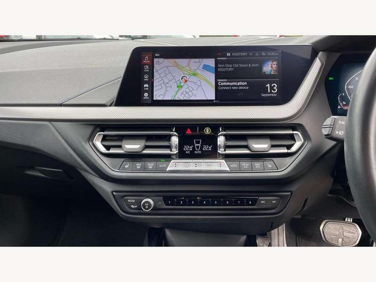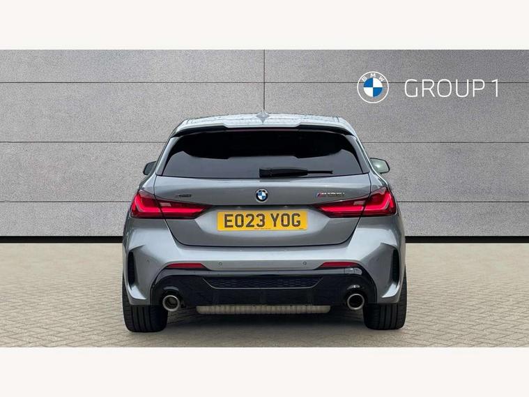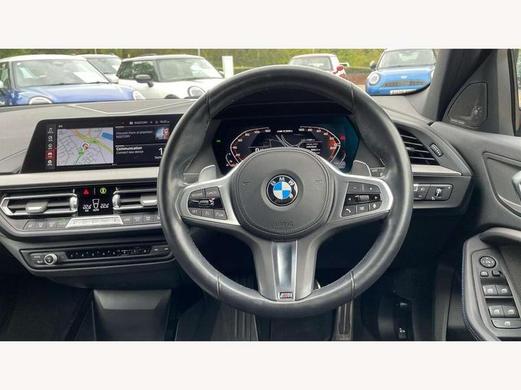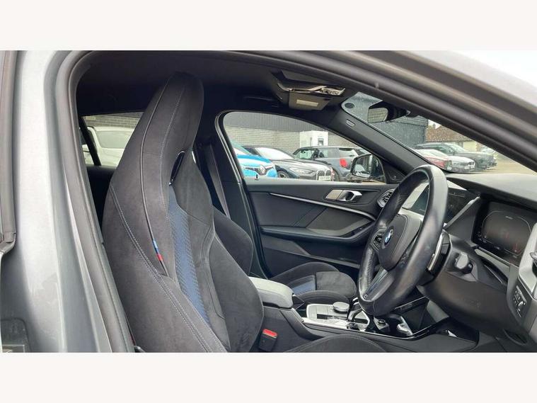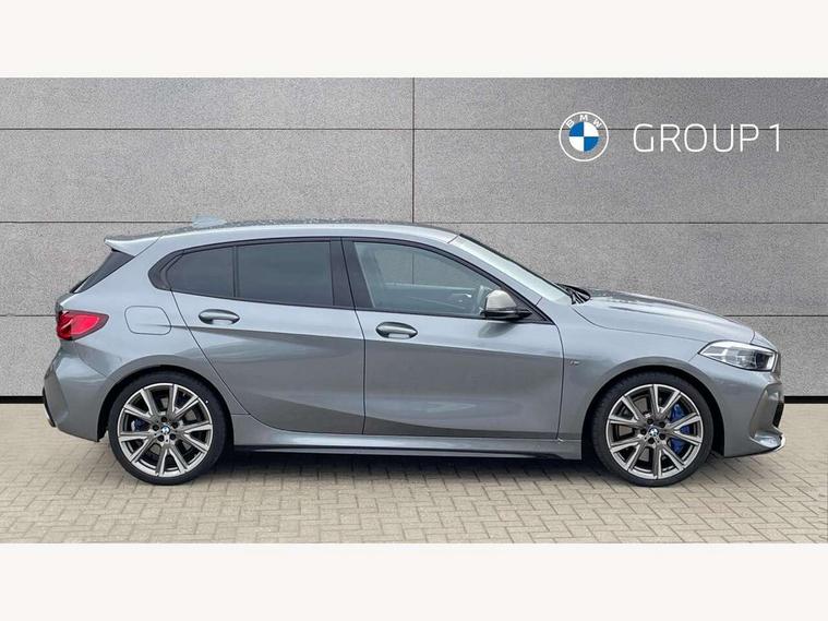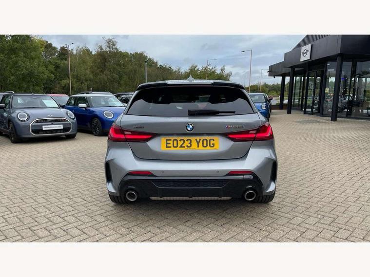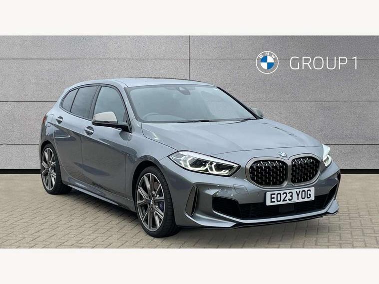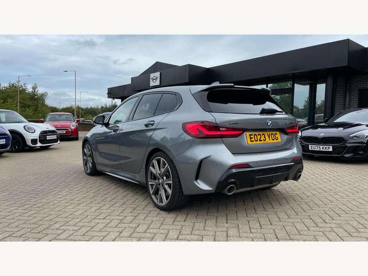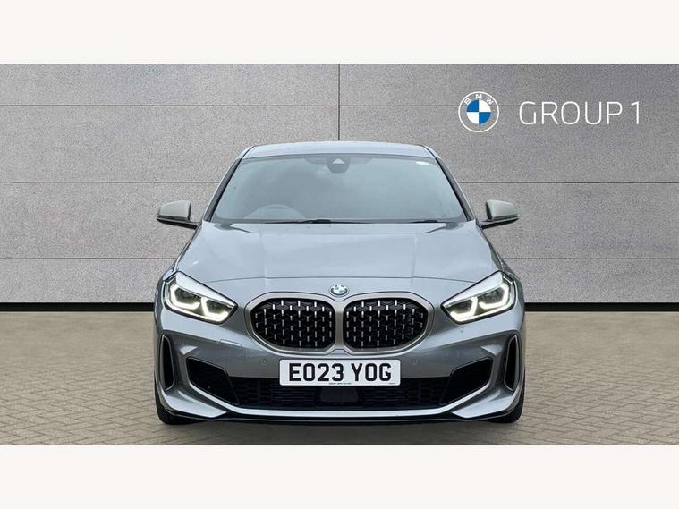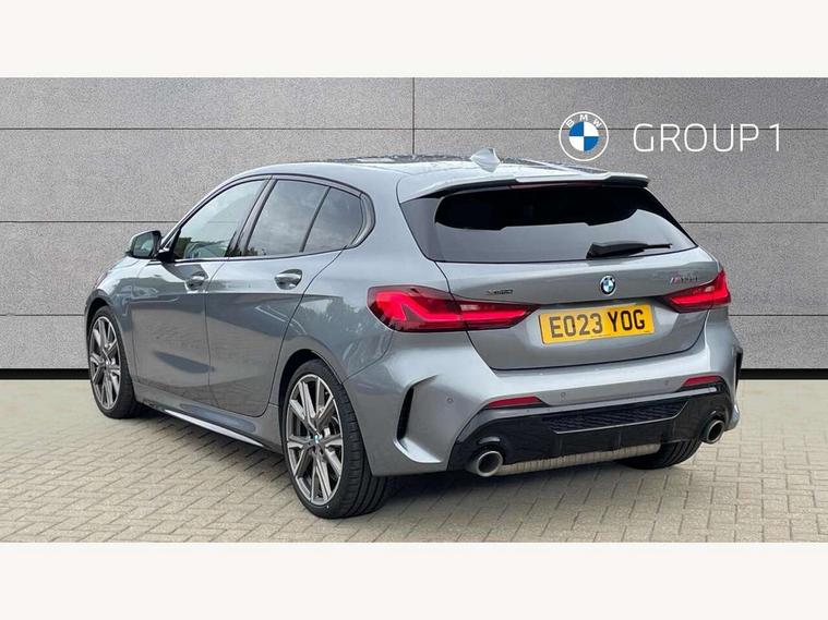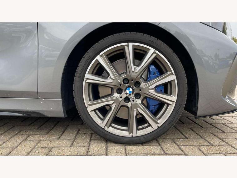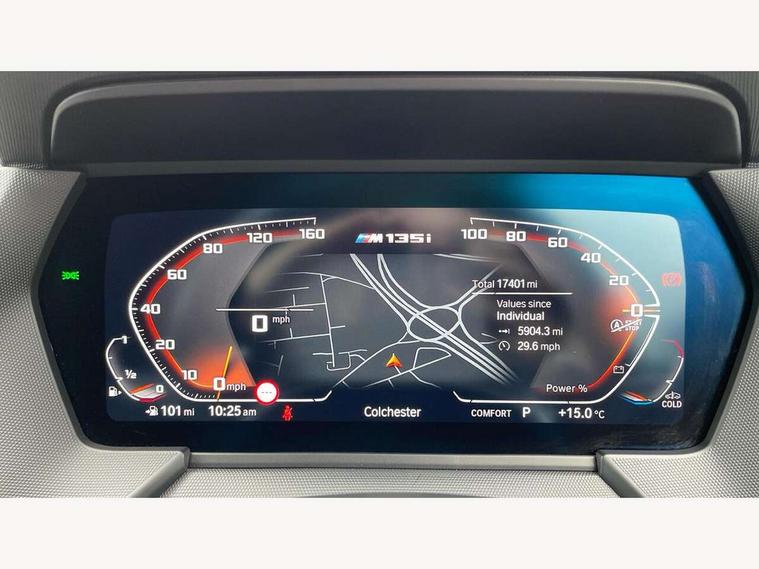 Active guard plus, Attentiveness assist, BMW ConnectedDrive online services, BMW Teleservices, Check Control warning system for monitoring of lights and door/luggage compartment open warning, Cruise control with speed limiter, Eco pro mode, Electric power steering, Electro hydraulically controlled multi-plate clutch transfers drive to rear axle and with power take-off device located on the front differential., Energy efficient operating strategy, Front axle single joint with specific axle kinematics to minimise drive influences on steering + provide increased rigidity agile driving behaviour, Gearshift time display in manual mode, Integrated owners handbook, Lane departure warning system, M Sports steering with M135i xDrive specific settings, Oil sensor for level and grade, On board computer, Optimum shift indicator, Personal Profile, Pull away assistant, Rigidly mounted rear subframe - Multi link construction with separate spring / damper configuration and excellent driving characteristics, Speed limit Info including no-overtaking indicator, Sporty fast gear shifting in sport mode, Aluminium lightweight construction, Anti roll bar front and rear, Balancer shaft, Double VANOS, Drive Performance Control, Eight speed sport automatic transmission with gearshift paddle switches, Electronic differential lock, Electronic selector lever, Engine cover with M performance designation, High precision injection, Larger fuel tank capacity (50 litres), Launch control, M135i specific heavily de-throttled engine intake air guide, M135i specific high-performance cooling package, M135i specific larger turbocharger with integrated divert-air valve, Petrol Particulate Filter, Twin tube gas filled shock absorbers with degressive characteristic curve, VALVETRONIC engine management, Variable, stepless and infinitely adjustable distribution of drive torque between the front and rear axles, xDrive intelligent all wheel drive with M135i specific reinforced components, DAB Digital radio, Auto dimming rear view mirror, Automatic headlight beam throw control, Automatic windscreen wipers and automatic headlight, Body colour door handles, Body colour roof trims, Cerium grey exterior mirror caps, Direction indicator side lights in exterior mirrors, Electrically adjustable exterior mirror with mirror adjustment switch on drivers armrest and aspheric on driver side, convex on passenger side, Exhaust tailpipe, Cerium Grey with bevelled finish - twin, round 100mm, left and right split, Fading support, Folding side mirrors with auto dimming/folding wing mirrors with auto dimming, Follow me home headlights, Front and rear bumper system with replaceable deformation elements, Front and rear electric windows with open and close fingertip control, anti trap facility and comfort closing, Front door sill finishers with M135i designation, Green tinted heat protection glazing, High gloss shadowline window frame, Recess cover mirror frames and B/C pillar embelisher trim, High level third brake light, Integrated front windscreen with washer jets, Kidney grille frame in Cerium Grey with Mesh design, LED daytime running lights, LED eyebrow turn indicators, LED front fog lights, Lightweight engineering, M logo designation side in cerium grey, M Performance exhaust system with valve control and minimised exhaust back pressure, M Performance specific setup, M Sport spoiler, Matt black air guide grilles, Matt black wheel arch trim, Model designation on electric bootlid includes xDrive designation for M135i xDrive, Nearside reverse light in rear light cluster, Preparation for high beam assistant, Rear fog lights, Rear side wing doors, Rear window wiper, Reinforced crank drive, new pistons and adapted con rods, Shark fin antenna, Trailer stabilisation logic, Visible VIN plate, Welcome lighting, 12V power socket in front centre console with blanking plug, 3 rear seat head restraints, 3 seat bench in 2nd row, 3 spoke sports leather steering wheel with black leather and stitching, pearl chrome decorative finish, specific M Badge, Anthracite headlining, Black boot net with lashing eyes, Cargo function on 2nd seat row, Child seat ISOFIX attachment for two outer rear seats and front passenger seat with anchorage points, Conditioned based service, Driver and front passenger backrest net on rear, Driver and front passenger seat heating, Driver side folding compartment in instrument panel, Folding rear clothes hook, Four grab handles integrated in roof lining, Front and rear door pockets with bottle holders, Front and rear side armrest integrated into door trim, Front armrest, Front M sports seats, Glove compartment, Height adjustable front head restraints, Luggage compartment for bag hooks on left and right, foldable luggage compartment liner and four lashing eyelets, Manual adjust steering wheel, Multi-function controls for steering wheel, Single front passenger seat, Storage compartment in centre console, Storage compartment in luggage compartment, Stowage of the parcel shelf in luggage compartment trim, Sun visors with vanity mirrors and insert tab, Two front centre console cupholders, Two zone automatic air conditioning, Type C two USB ports in rear centre console, Velour floor mats, Additional interior lighting pack - 1 Series M135i, BMW live cockpit professional pack- 1 Series, Connected pack professional - 1 Series, Interior lights pack - 1 Series, M Sport exterior styling aerodynamics pack - 1 Series 135i, 2 tone horn, 3 point seatbelts on all seats, front pyrotechnic belt tensioners, stopper and belt force limiters, rear coded belt buckles, Airbags - Front driver/passenger, front and rear curtain head protection, front side, manual deactivation of front passenger airbag, Anti lock braking system (ABS) with brake assist, BMW emergency call, Brake drying, Braking readiness, Child proof locking system in rear door, City braking function, Comfort modes, Cornering brake control, Crash sensor activating of airbags, Unlocking doors, hazard warning 