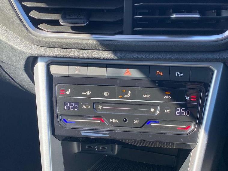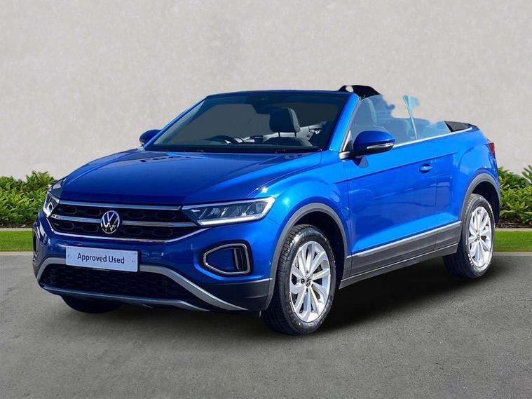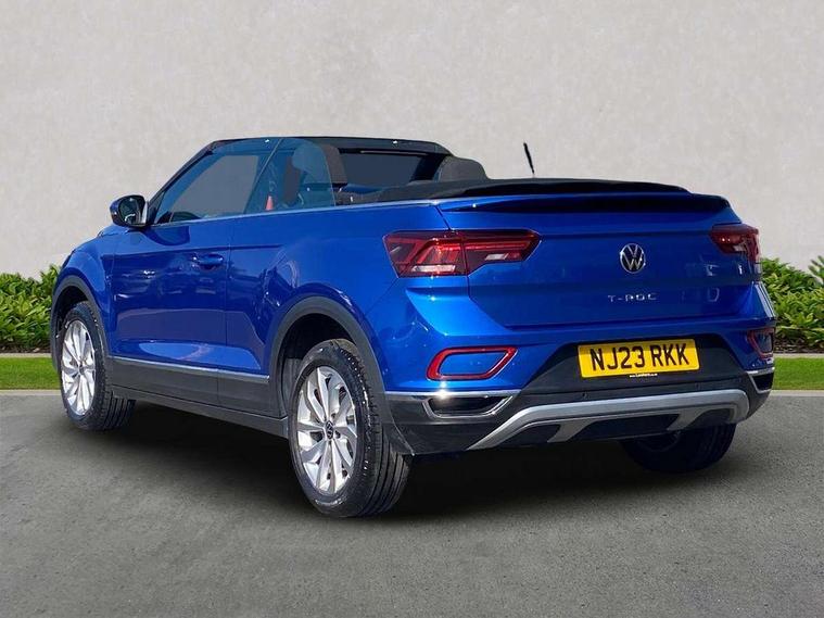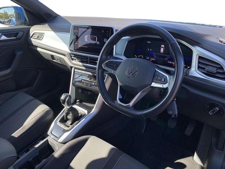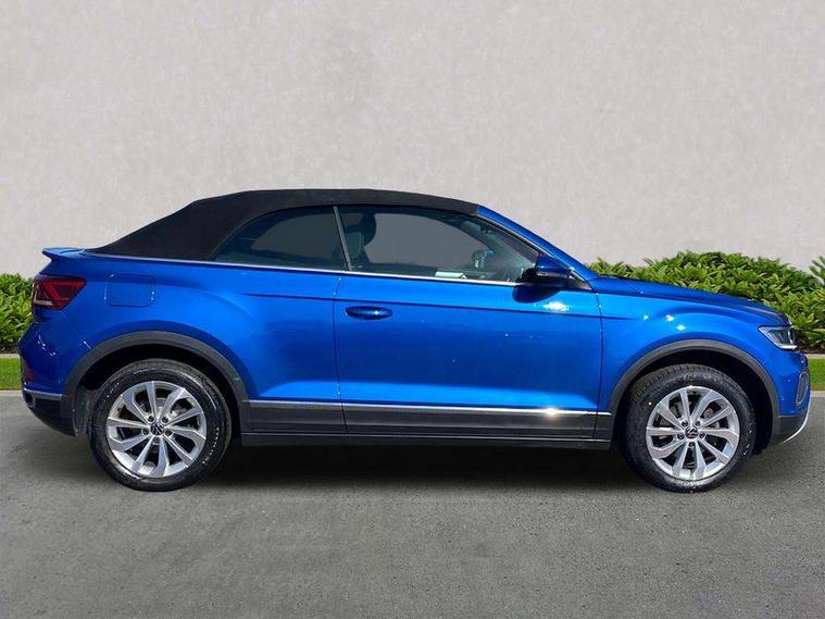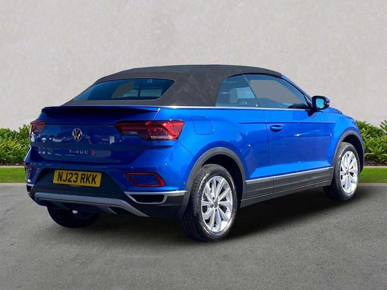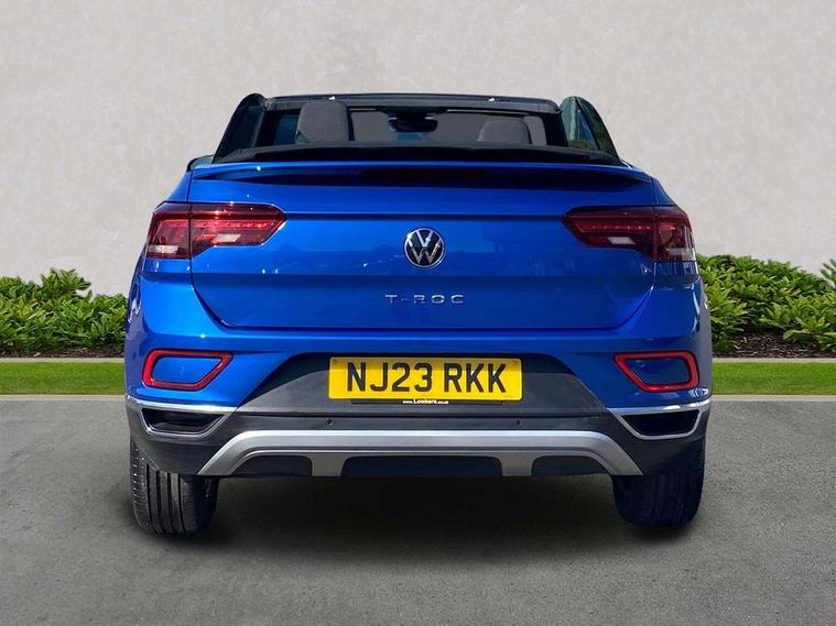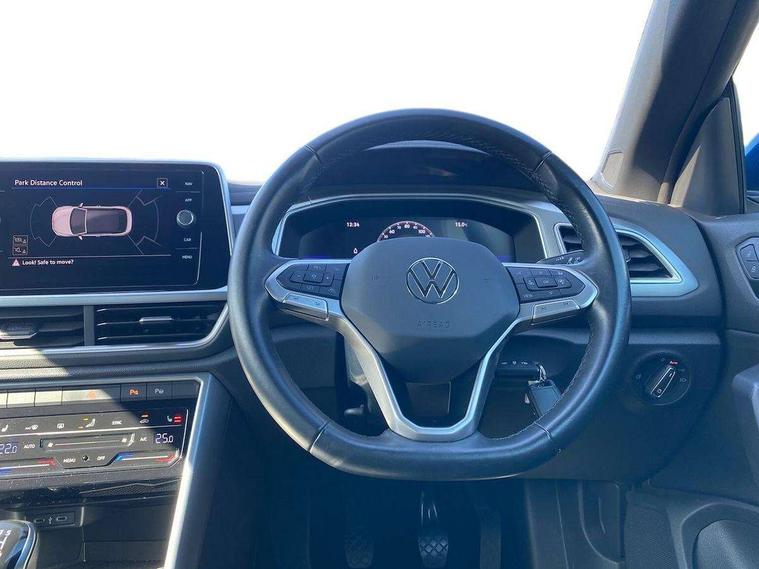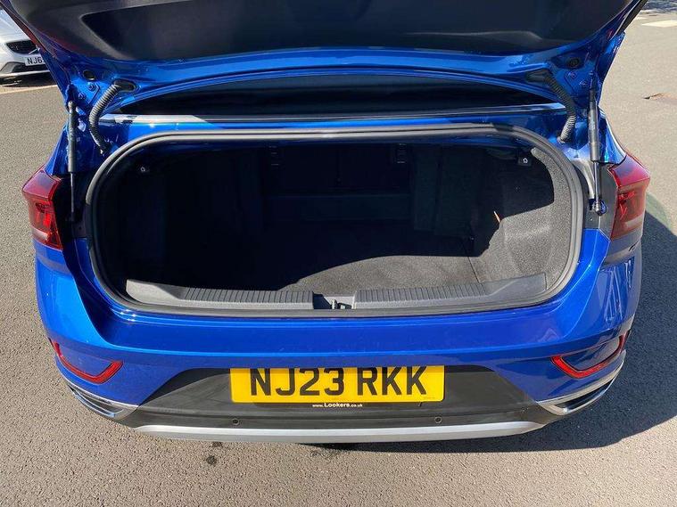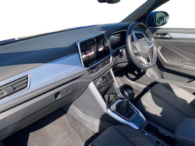 Adaptive cruise control and speed limiter, Bluetooth mobile phone interface, Brake pad wear indicator, Car information display, Driver alert system with fatigue detection, Driver tips and journey analysis, Dusk sensor, Emergency call service, Modified key software - reduce switch off time for key status change to Long no motion, Multifunction computer with visual gear change recommendation for fuel consumption, Multifunction front facing camera, Park assist including front and rear parking sensors, Speedo and rev counter, electronic odometer, trip, service interval display and exterior temperature gauge, Start/stop system with brake energy recovery, Tailgate/trunk lid release from outside, Warning sound and light for front seatbelts unfastened, Diversity antenna for FM reception, Music playback - MP3, WMA and AAC files, SMS functionality - read, compose and send SMS messages using touch-screen display, Title and cover art display, USB-C Interface and USB charging socket, We Connect and We Connect Plus functionality, Auto dimming interior rear view mirror, Automatic hazard lights activation under emergency braking, Automatic headlight control with LED separate daytime running lights with coming/leaving home function, Black roof, Body colour door handles, Body colour rear spoiler, Body coloured bumpers and radiator grille with chrome trim and front fog lamps with chrome bezel, Chrome effect left and right trapezoid exhaust tailpipe fascia surround, Dark red rear combination lamps in LED technology, Exterior mirrors aspherical on driver side, convex on front passenger side, Headlight range control, Heat insulating glass windscreen, High level 3rd brake light, LED Headlights, LED rear number plate lights, Power operated canvas convertible top, Power windows with comfort operation and circuit breaker, Rain sensor, Rear boot, Rear exhaust tailpipe, Rear fog light on one side and reversing lights on both sides, Remote electrically foldable door mirrors, puddle lights and reverse activated passenger door mirror, Volkswagen roundel, Windscreen wiper with intermittent wipe light, Without exterior ambient lighting, 12V socket in centre console storage area, 2 LED front reading lights, 2 seat bench in 2nd row, 50:50 Split folding rear seat backrests with fixed rear seat bench, Air care climatronic air conditoning system with active combination filter and 2-zone temperature control, Ambient lighting with logo projection, Black door lower parts with chrome trim, Chrome plated surround to light, mirror and window switch, Door and side trim panel with leatherette insert, Easy entry backrest release, Front and rear carpet mats with black stitching, Front centre armrest, Front cupholders x 2, Front door pockets, Front seat back storage pockets, Heated multi function steering wheel, Height/reach adjust steering wheel, Instrument lighting, white adjustable panel illumination, Interior light delay, Interior light in footwell, Interior lighting with switch off delay and contact switches on all doors, Interior white ambient lighting and surround lighting, Isofix child seat preparation, Lockable glove compartment with light, Luggage compartment lighting, Rear head restraints, Single front passenger seat, Sun visors with illuminated vanity mirrors, Driver assistance pack without proactive passenger protection - T-Roc cabriolet, 2 x 3-point seatbelts/outer rear seats with ECE label, Driver and front passenger airbag with front passenger airbag deactivation, Driver and front passenger safety-optimised head restraints, Drivers seatbelt reminder, Electronic parking brake, Electronic Stability Control (ESC) including ABS, ASR and EDL, Front and rear disc brakes, Front assist with autonomous emergency braking, Pedestrian monitoring, Predictive pedestrian protection, Rigid safety cell with front and rear crumple zones, Side airbag/thorax airbag system, for front passengers, Single tone horn, Three point height adjust front seatbelts + pretensioners, Tyre pressure loss indicator, Volkswagen roadside assistance, Anti-theft alarm system with interior protection and central locking system with SAFELOCK, radio remote control and 2 remote control folding keys, Electronic engine immobiliser, Trims for alloy wheels,