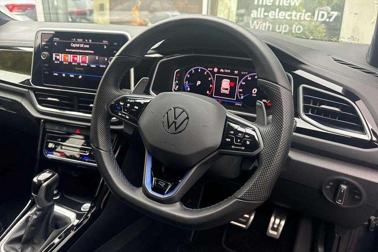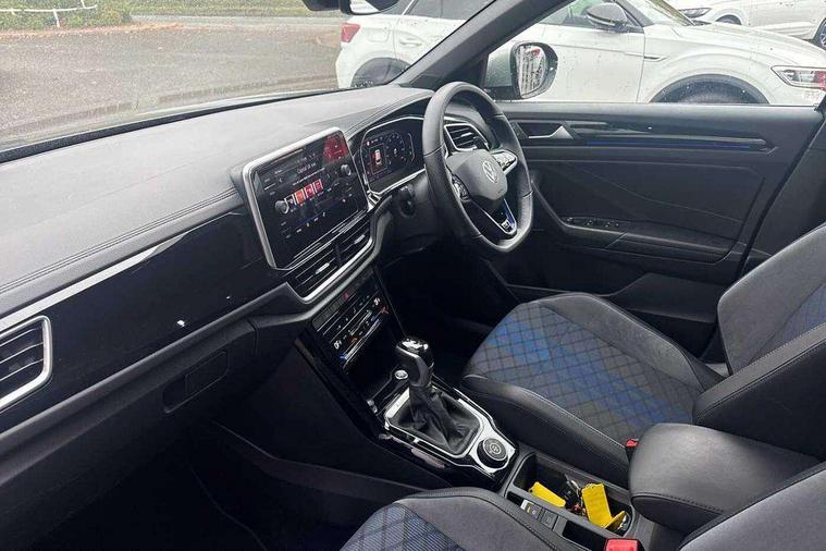 10.25" Digital cockpit pro, Bluetooth mobile phone interface, Driver alert system with fatigue detection, Driver tips and journey analysis, Emergency call service, Lane keeping system Lane Assist, Modified key software - reduce switch off time for key status change to Long no motion, Online services, Park assist including front and rear parking sensors, Service interval indicator, Tailgate/trunk lid release from outside, Think blue trainer driver tips and journey analysis, Warning sound and light for front seatbelts unfastened, Wireless app connect, Battery regeneration during braking, Four wheel drive, Start/stop function with battery regeneration, Diversity antenna for FM reception, Front and rear 6 speakers, Music playback - MP3, WMA and AAC files, Premium USB cable in choice of either Apple or Android smartphone compatibility, SD card slot, Simultaneous pairing of 2 compatible mobile devices, Title and cover art display, We Connect and We Connect Plus functionality, 3rd brake light, Auto dimming interior rear view mirror, Automatic hazard lights activation under emergency braking, Automatic headlight control with LED separate daytime running lights with coming/leaving home function, Extended roof spoiler, Exterior mirrors aspherical on driver side, convex on front passenger side, External USB type C socket and charging sockets, Front windscreen wiper with intermittent wipe and 4 position delay, Heated rear window, LED Plus headlamps, LED rear combination lamps, LED rear number plate lights, LED tail lamp rear comination lamps, Power windows with comfort operation and circuit breaker, Privacy glass for rear side windows and rear window, R-Line design body coloured bumpers, Rain sensor, Rear fog light on one side and reversing lights on both sides, Rear side wing doors, Rear wash/wipe with intermittent wipe setting, Remote electrically foldable door mirrors, puddle lights and reverse activated passenger's door mirror, 12V power socket in centre console, 3 rear head restraints, 3 seat bench in 2nd row, 4 load lashing points in luggage compartment, Air care climatronic air conditoning system with active combination filter and 2-zone temperature control, Ambient lighting - 10 colour (blue), Black roof lining, Chrome plated radiator grille inserts, air vent surrounds and light switch surrounds, Door and side trim panel with leatherette insert, Drawer under drivers seat, Driver/front passenger seat height adjustment, Front + rear carpet mats, Front centre armrest, Front cupholders x 2, Front footwell illumination, Front scuff plates with R logo in door apertures, Front sport seats, Heated leather wrapped multi function sports steering wheel with tiptronic, Instrument lighting, white adjustable panel illumination, Interior light delay, Isofix child seat preparation, Leather gearshift handle, LED interior light with switch off delay/dimmer and 2 front/rear LED reading lights, Load-through provision with cup holder when folded down ('Unsplit rear seat bench, split folding backrest, with centre armrest), Luggage compartment lighting, Lumbar support for driver's and front passengers seat, Non-folding front passenger seat backrest, R-logo stitching in floor mats, Single front passenger seat, Stainless steel pedals, Storage compartment in left and right luggage area, Storage compartment in rear doors, Storage compartments in driver and front passenger doors, Sunvisors with illuminated vanity mirrors, Variable boot floor, height adjustable and removable, Driver assistance pack without proactive passenger protection - T-Roc, R styling pack - T-Roc, 3 point height adj front seatbelts + pretensioners, 3 point seatbelts in outer rear with ECE label, ABS, Child locks on rear doors, Driver and front passenger airbag with front passenger airbag deactivation, Driver and front passenger safety-optimised head restraints, Drivers seatbelt reminder, Electronic parking brake, Electronic Stability Control (ESC) inc EDL (Electronic Differential Lock) and ASR (Traction Control), Front and rear passengers curtain airbag system including front side airbags, Front assist with city emergency braking and pedestrian monitoring, Front seat side impact airbags, Hill descent control, Hill start assist, Predictive pedestrian protection, Rear disc brakes, Single tone horn, Tyre pressure loss indicator, Volkswagen roadside assistance, Alarm with interior protection, Anti-theft alarm system with interior monitoring, backup horn, and towing protection, Keyless entry and start, Remote central locking with SAFELOCK, radio remote control with 2 remote control folding keys, Trims for alloy wheels,