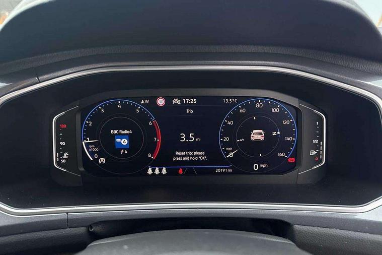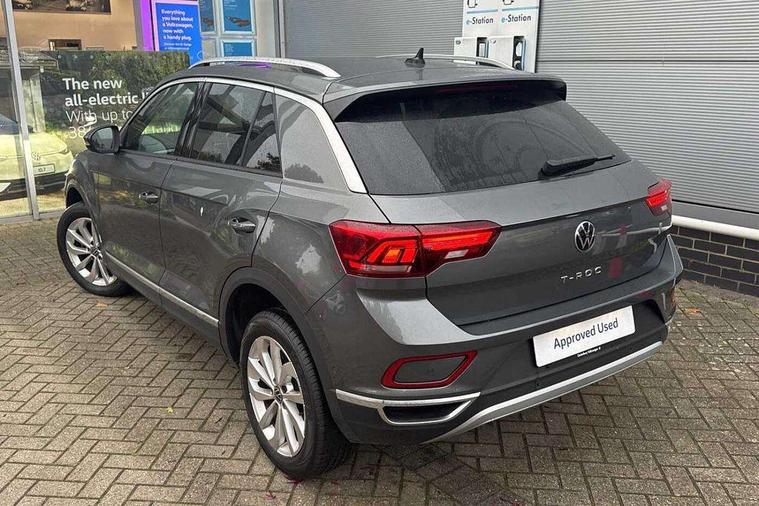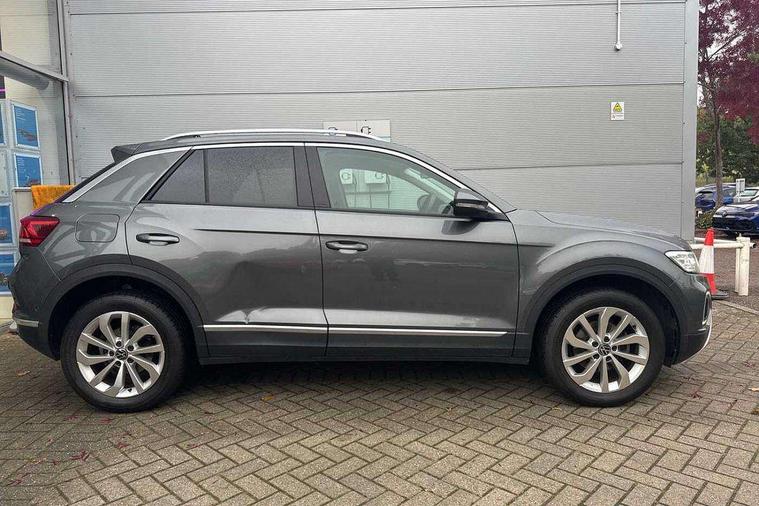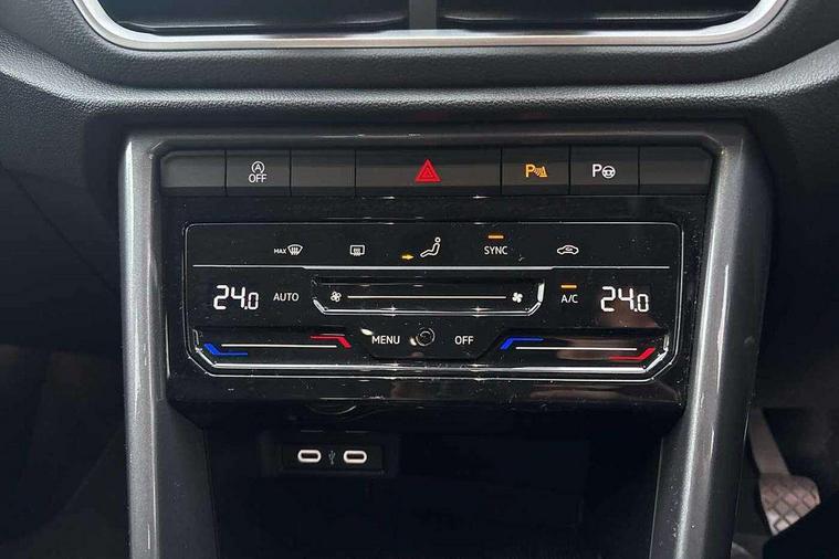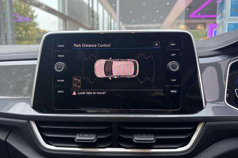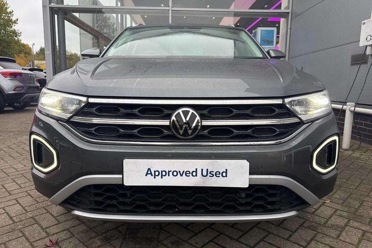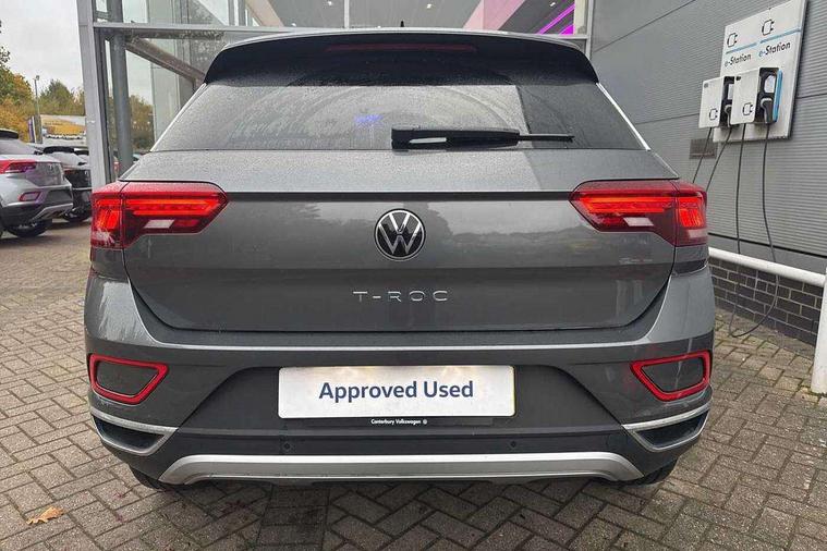 10.25" Digital cockpit pro, Bluetooth mobile phone interface, Driver alert system with fatigue detection, Driver tips and journey analysis, Dynamic road sign display, Emergency call service, Lane keeping system Lane Assist, Modified key software - reduce switch off time for key status change to Long no motion, Online services, Park assist including front and rear parking sensors, Power assisted speed sensitive steering, Service interval indicator, Tailgate/trunk lid release from outside, Think blue trainer driver tips and journey analysis, Warning sound and light for front seatbelts unfastened, Wireless app connect, Battery regeneration during braking, Front shock absorption, Rear shock absorption chassis with increased ride height, Start/stop function with battery regeneration, Diversity antenna for FM reception, Music playback - MP3, WMA and AAC files, Premium USB cable in choice of either Apple or Android smartphone compatibility, SD card slot, Simultaneous pairing of 2 compatible mobile devices, Title and cover art display, We Connect and We Connect Plus functionality, 3rd brake light, Auto dimming interior rear view mirror, Automatic hazard lights activation under emergency braking, Automatic headlight control with LED separate daytime running lights with coming/leaving home function, Body colour sports bumpers with silver metallic underbody fascia, Dynamic headlight range control with self adjusting whilst driving, Extended roof spoiler, Exterior mirrors aspherical on driver side, convex on front passenger side, External USB type C socket and charging sockets, Front windscreen wiper with intermittent wipe and 4 position delay, Heated rear window, LED rear combination lamps, LED rear number plate lights, LED tail lamp rear comination lamps, Light mode for poor weather, rain, fog or snow, Power windows with comfort operation and circuit breaker, Rain sensor, Rear exhaust tailpipe, Rear fog light on one side and reversing lights on both sides, Rear side wing doors, Rear wash/wipe with intermittent wipe setting, Remote electrically foldable door mirrors, puddle lights and reverse activated passenger's door mirror, 12V power socket in centre console, 3 rear head restraints, 3 seat bench in 2nd row, 4 load lashing points in luggage compartment, Air care climatronic air conditoning system with active combination filter and 2-zone temperature control, Chrome plated radiator grille inserts, air vent surrounds and light switch surrounds, Door and side trim panel with leatherette insert, Drawer under drivers seat, Front + rear carpet mats, Front centre armrest, Front comfort sports seats, Front cupholders x 2, Front footwell illumination, Instrument lighting, white adjustable panel illumination, Interior ambient lighting and surround lighting, Interior light delay, Isofix child seat preparation, Leather gearshift handle, LED interior light with switch off delay/dimmer and 2 front/rear LED reading lights, Load-through provision with cup holder when folded down ('Unsplit rear seat bench, split folding backrest, with centre armrest), Luggage compartment lighting, Non-folding front passenger seat backrest, Single front passenger seat, Storage compartment in left and right luggage area, Storage compartment in rear doors, Storage compartments in driver and front passenger doors, Sunvisors with illuminated vanity mirrors, Variable boot floor, height adjustable and removable, Driver assistance pack without proactive passenger protection - T-Roc, 3 point height adj front seatbelts + pretensioners, 3 point seatbelts in outer rear with ECE label, ABS, Child locks on rear doors, Driver and front passenger airbag with front passenger airbag deactivation, Driver and front passenger safety-optimised head restraints, Drivers seatbelt reminder, Electronic parking brake, Electronic Stability Control (ESC) inc EDL (Electronic Differential Lock) and ASR (Traction Control), Front and rear passengers curtain airbag system including front side airbags, Front assist with city emergency braking and pedestrian monitoring, Front disc brakes, Front seat side impact airbags, Predictive pedestrian protection, Rear disc brakes, Single tone horn, Tyre pressure loss indicator, Volkswagen roadside assistance, Anti-theft alarm system with interior monitoring, backup horn, and towing protection, Remote central locking with SAFELOCK, radio remote control with 2 remote control folding keys, Trims for alloy wheels,