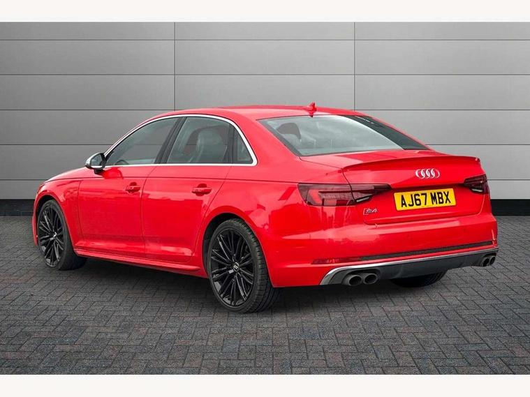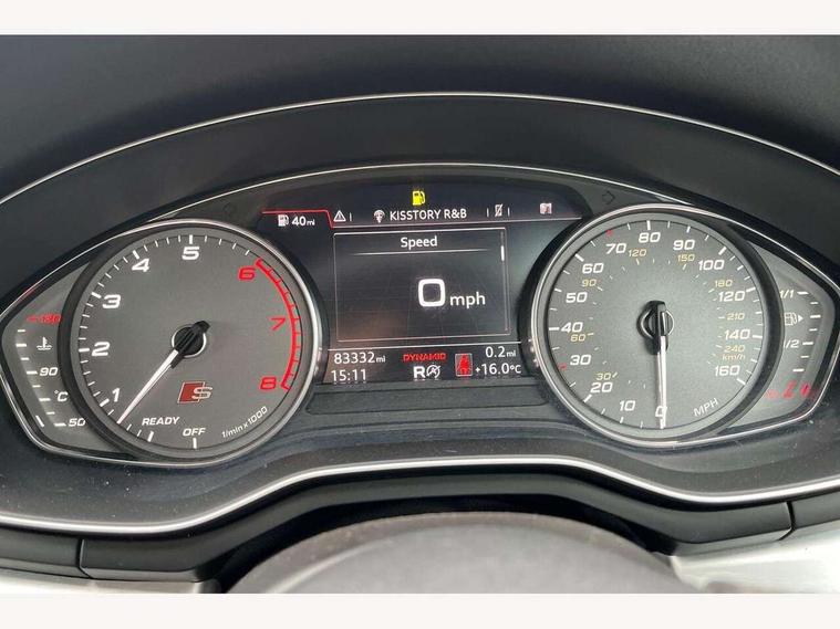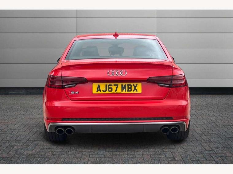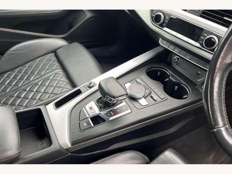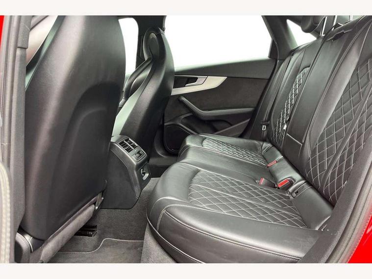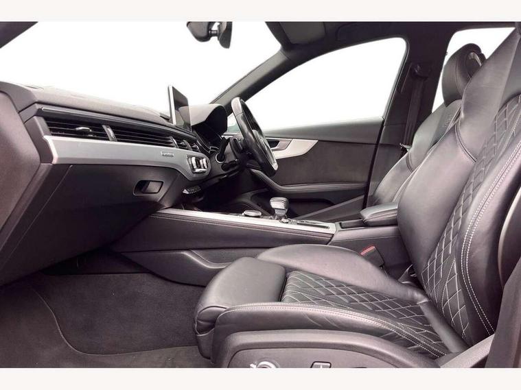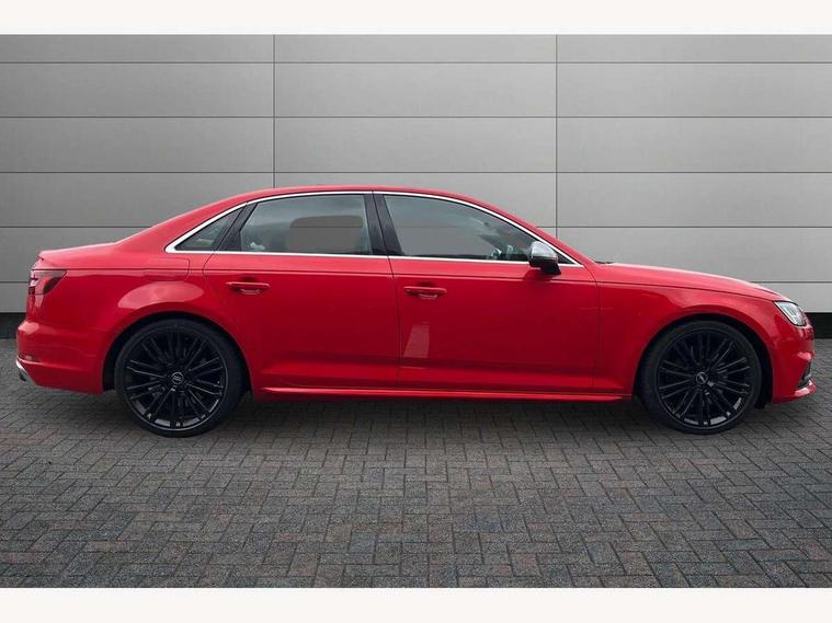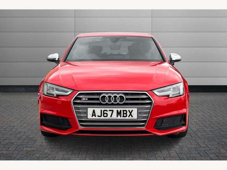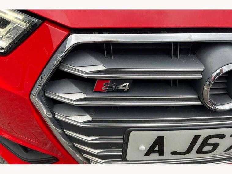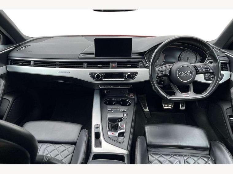 Audi drive select, Audi Pre sense collision avoidance, Audi smartphone interface, Auto boot lid opening, Electro-mechanical PAS, MMI navigation plus with HDD and jukebox storage + 2 SD card readers + single CD/DVD player, Mobile telephone preparation - bluetooth interface, Service interval indicator, Stop/start button, Voice control system, 2 USB ports, Aux input, DAB digital radio module, Acoustic windscreen, Air inlets in titan black with chrome inlays, Aluminium window trim, Auto dimming rear view mirror, Automatic headlights + automatic windscreen wipers, Body colour bumpers, Chrome door handles, Chrome rolled exhaust, Electric adjustable heated door mirrors, Electric front windows, Electric rear windows, Headlight range control, High beam assistant, High gloss black triangular aperture at rear door, Honeycomb radiator grille - black, LED daytime running lights, LED indicators in door mirrors, Rain and light sensors, Rear diffuser in Twilight grey matt, Twin oval exhaust tailpipes with chrome finish, 3 spoke flat bottom high multi-function leather steering wheel, 3 zone climate control, Black cloth headlining, Fine Nappa leather upholstery, Front centre armrest with 12v socket, Front headrests, Front/rear floor mats, Gearshift paddles, Illuminated door sill finishers, Isofix child seat preparation for front passenger/outer rear seats inc passenger airbag deactivation, Jack and tool kit, Luggage compartment carpet, Perforated leather gearknob, Reach + rake adjustable steering column, Rear headrests, S Super sports front seats, Split folding rear seats, Sunvisors with vanity mirrors, Top tether anchor plate for isofix child seat, Extended Interior Upholstery Pack - A4/S4, Non Smokers pack, 3 point seatbelts on all rear seats, ABS/EBD, Active bonnet, Adaptive driver and front passenger airbags, Electromechanical parking brake, ESP, First aid kit, Front head airbags, Front seatbelt pretensioners + load limiters, Front side airbags, Hill hold control, Multi-Collision braking, Seatbelt warning, Traction control, Tyre pressure monitoring system, Warning triangle, Anti theft alarm, Keyless Start, Locking wheel bolts, Remote central locking, Thatcham category 1 alarm + immobiliser, Space saver spare wheel,