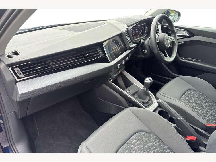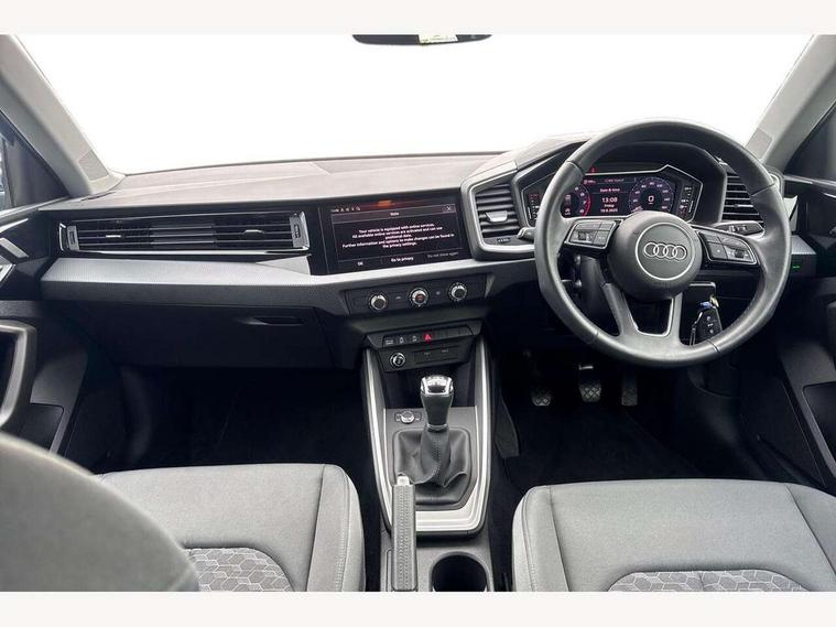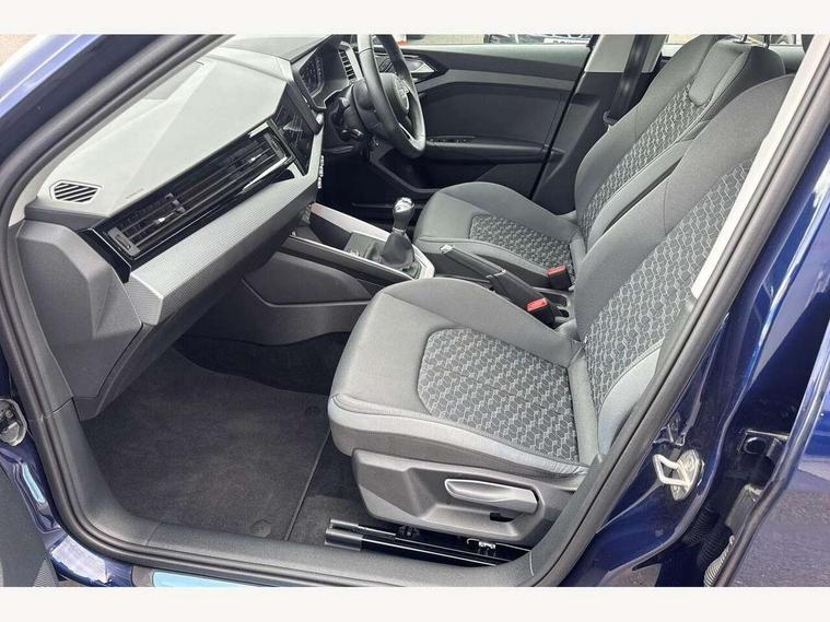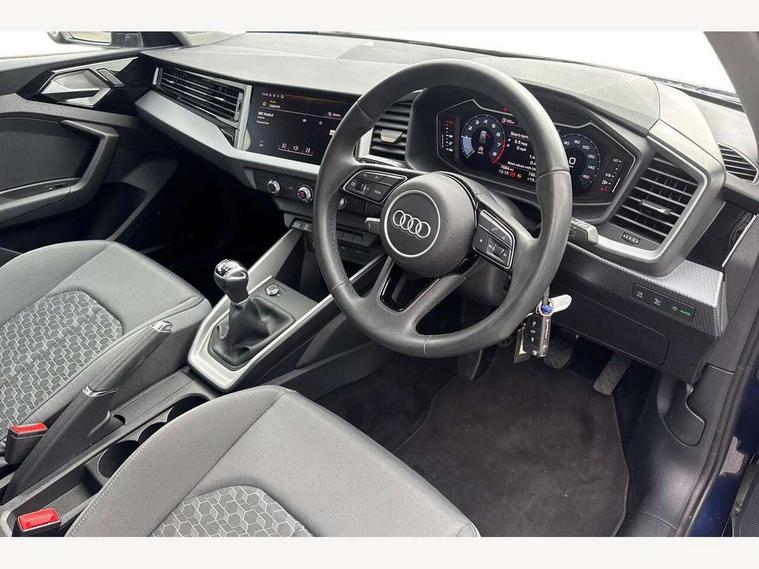 10.25" Digital instrument cluster display classis style instrument dials + speed, odometer, time, outside temperature, telephone menu + fuel level warning, Audi drive select - power steering assistance + engine, Audi smartphone interface with connect compatible smartphone via USB directly MMI display + Nav, music, third party apps controlled via MMI controller, Automatic start/stop system, Bluetooth interface, Cruise control, Driver's information system, Electromechanical power steering, Emergency e-call, Lane departure warning system, Rear parking sensor, Service interval indicator, Speed limiter, Voice control system, Washer fluid level indicator, Dynamic suspension, 2 x USB type C connection points, 6 passive loudspeakers, DAB Digital radio, MMI radio plus with 10.1" colour MMI display screen and MMI touch, Auto dimming rear view mirror, Body coloured bumpers, Body coloured door mirrors, Electric front and rear windows, Electrically adjustable, heated, folding door mirrors with integrated LED side indicator, Front side air inlets in grained matt black and C frame in anthracite black, Heat insulating glass windscreen and side windows, Heated rear windscreen, High level LED brake light, LED headlights with LED rear lights + dynamic rear indicators + headlight adjustment and high beam, turning light + LED daytime running lights, Radiator grille and rear diffuser in matt anthracite black, Radiator protective grille frame in matt aluminium silver, Rain and light sensors, Rear fog lights, Rear side wing doors, Rear wiper, Side front spoiler lips in grained matt black, 12V socket in centre console with two cup holders, 3 rear seats with headrests, 3 seat bench in 2nd row, 3 spoke leather multifunction plus steering wheel, 40:60 Split folding rear seat or folded fully, Black front and rear floor mats, Door sill trims with aluminium inlay, Driver and passenger seat with manual height adjust with forward and backwards adjustment, Front head restraints, Front passenger seat, Grey cloth headlining, Height and reach adjustable steering wheel, ISOFIX child seat mounting for front passenger and outer rear seats including top tether attachment point of outer rear seats, Leather gear knob with aluminium trim, Leatherette handbrake grip, Luggage compartment light with front and rear reading lights, Manual air conditioning, Manually adjustable lumbar support in front seats, Novum cloth upholstery with front sport seats, Luggage compartment pack - A1, 3x3 point rear seatbelts, Audi pre-sense front with pedestrain and cyclist recognition, Brake assist function, Driver and front passenger airbag with front side and head airbags, Electronic Stability Control including ABS, EBD, ASR and EDL, Front passenger airbag deactivation switch, Hill hold assist, Manual rear child locks, Seatbelt height adjustment for front seats, Seatbelt monitoring, Tyre pressure warning light, Warning triangle and first aid kit, Anti theft alarm, Anti theft wheel bolts and loose wheel warning, Immobiliser, Remote central locking with 2 foldaway keys, Aluminium trim for control switches, air vents and digital instrument cluster, Black dashboard, Silver grey accent areas including air vents, door handle recesses and centre console in diamond paint finish, Slate grey inlays polygon structure in fine paint finish,