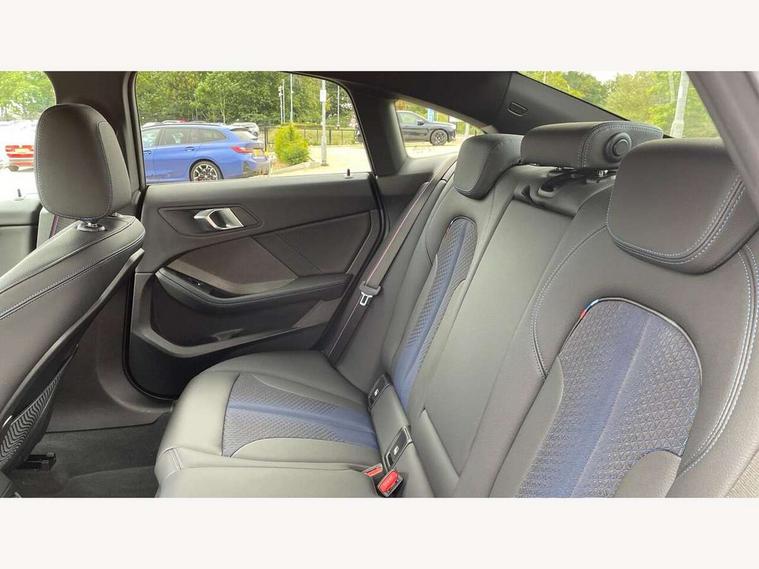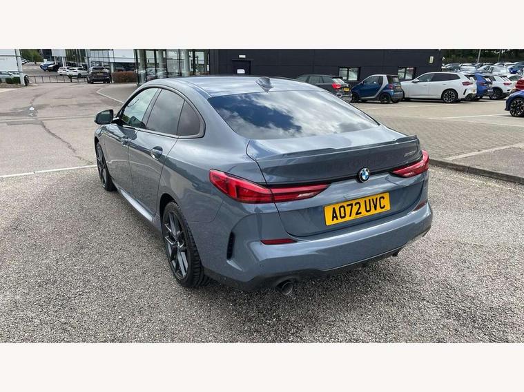 Active guard plus, Attentiveness assist, Auto start-stop, BMW Intelligent Personal Assistant, BMW Live Cockpit Professional with 10.25" high resolution instrument and control display, BMW Online services, BMW operating system with 7.0 mid interface, BMW Teleservices, Check Control warning system for monitoring of lights and door/luggage compartment open warning, Cruise control with braking function, iDrive controller with 7 short cut favourite buttons on centre console, Integrated navigation data with map data via USB +features such as 3D landmarks and micro city models, Integrated owners handbook, Intelligent voice assistant, Lane departure warning system, M Sports steering, On board computer - average speed+fuel consumption, service interval, clock/date, odometer/trip meter, outside temperature display and ice warning, Optimum shift indicator, Personal Profile, Pull away assistant, Speed limiting function, Aluminium lightweight construction, Balancer shaft, Double VANOS, Drive performance control with ECO PRO comfort + sport mode, Dual clutch automatic transmission, Electronic differential lock, High precision injection, M Sport suspension with stiffer spring/damper set-up and vehicle lowered by 10mm + twin tube gasfilled shock absorbers and Anti roll bars, Performance Control, Petrol Particulate Filter, VALVETRONIC engine management, 2x USB Type C ports (for charging and data transfer), 4G LTE Connectivity with hard wied 4G network sim card, DAB digital radio, MP3 players and RDS double tuner, Auto wipers, Automatic headlight beam throw control, Automatically dimming rear view mirror, Body colour door handles, Body colour mirror caps, Chrome 'M' logo side designation, Chrome exhaust single tailpipe, round, Direction indicator side lights integrated exterior mirrors, Electric windows - front and rear, with open/close fingertip control and trap release, Exterior mirrors - electrically folding with anti-dazzle, Fading support, Follow me home headlights, Front and rear bumper system with replaceable deformation elements, Front door sill finishers in black plastic with M designation in metallic look, Heated, electrically adjustable exterior mirror aspheric on driver side, convex on passenger side, High gloss black B pillar finish, High gloss shadow line exterior trim, High level third brake light, LED daytime running lights, LED front fog lights, LED Headlights, Lightweight engineering, Model designation on right side of tailgate, Preparation for high beam assistant, Rain sensor with automatic headlight activation, Rear boot, Rear fog lights, Rear side wing doors, Reversing light in rear light cluster, Welcome lighting, 12V power socket in centre console, 2 cupholders in front centre console, 3 rear seat head restraints, 3 rear seats, 3 spoke M sports design leather steering wheel finished in nappa leather with specific M badge, Anthracite finished floor mats with contrasting surround, Anthracite headlining, Automatic two zone climate control air conditioning, Child seat ISOFIX attachment for two outer rear seats and front passenger seat with anchorage points, Conditioned based service, Driver and front passenger seat heating, Front and rear door pockets including bottle trays, Front and rear side armrests integrated into door trim, Front armrest foldable with integrated storage compartment, Front centre interior light over interior mirror and rear centre automatic interior light when door is opened/ignition switched off or via remote key, Front head restraints, Front passenger seat, Front sports seats with electric side bolster adjustment, Glove compartment, Glovebox with light, Luggage compartment lighting, Manually adjustment steering wheel column, Multi-function controls for steering wheel, Sun visors with vanity mirrors and insert tab, Through loading system with 40/20/40 split folding rear seat, Two lashing eyes, Additional interior lighting pack - 2 Series Gran Coupe, Extended storage pack - 2 Series Gran Coupe, M Sport exterior styling aerodynamics pack - 2 Series Gran Coupe, 2 tone horn, Airbag - Front driver and passenger, front and rear head, front side, curtain head protection, manual deactivation of front passenger airbag possible, Anti lock braking system (ABS) with cornering brake control, BMW emergency call, Brake drying, Braking readiness, City braking function, Crash sensor activating of airbags, Unlocking doors, hazard warning lights, fuel cut off, interior lighting+activation of safety battery terminal clamp, Dynamic stability control + (DSC+), Dynamic Traction Control - DTC, Electrically operated hand brake, Rear brake discs, Rear child proof door locks, Seat belt security check for driver and front passenger, Seatbelt warning, Side impact protection, Three point seat belts on all seats including front belt stopper, pyrotechnic belt tensioners and belt force limiters, Trailer stability control, Tyre pressure monitoring system, Ventilated front disc brakes, Warning triangle and first aid kit, Central locking switch for all doors, fuel filler cap and luggage compartment, Deadlocking function system to all doors, Drive away locking system on all doors and luggage compartment, Locking wheel bolts, Start/Stop button (illuminated) in centre console with keyless engine start and Auto Start-Stop deactivation button, Thatcham Cat.1 alarm and immobiliser, Two remote control key with integrated key - open/close doors/fuel flap/tailgate +1 button for unlock compartment with M design high gloss black inlay, Contrast stitching on instrument panel, 18" Burnished M double spoke bi-colour alloy wheels finished in orbit grey - style 819M, Reduced rolling resistance tyres,