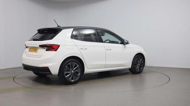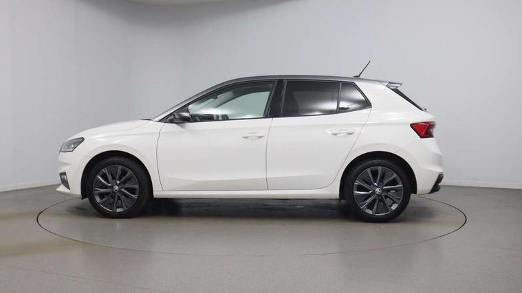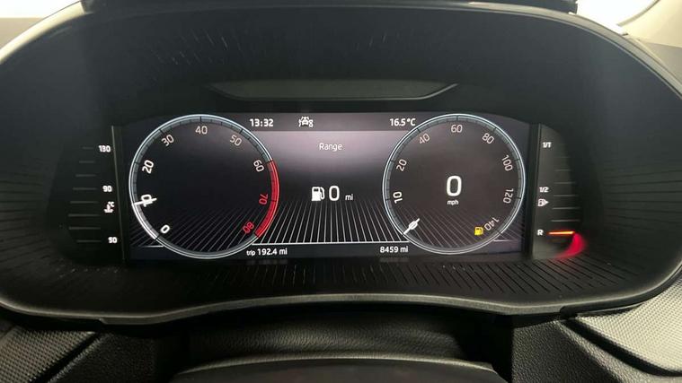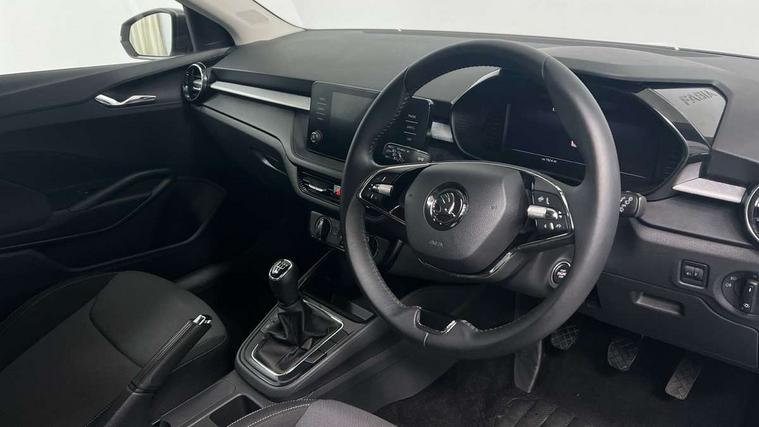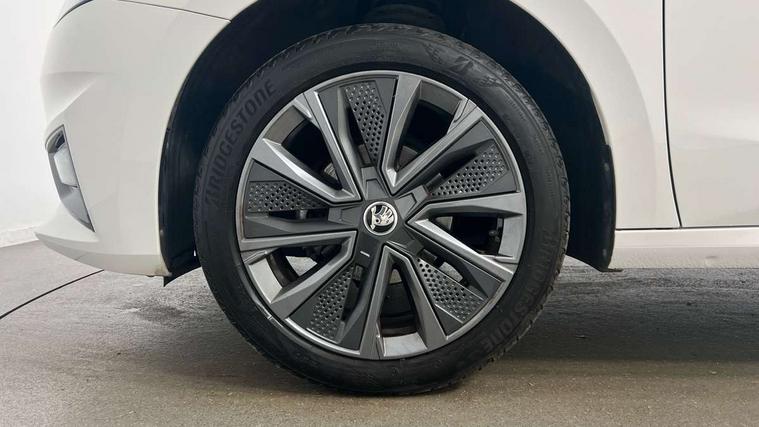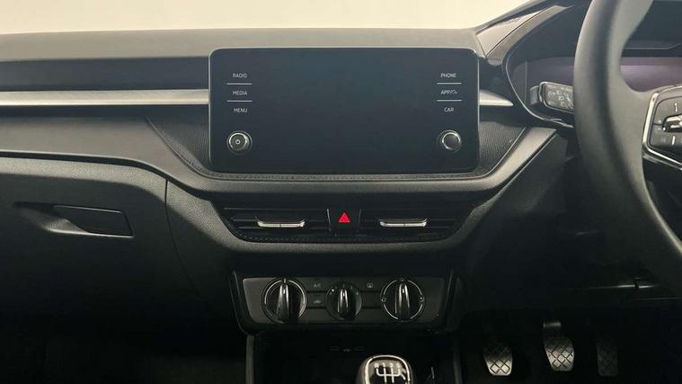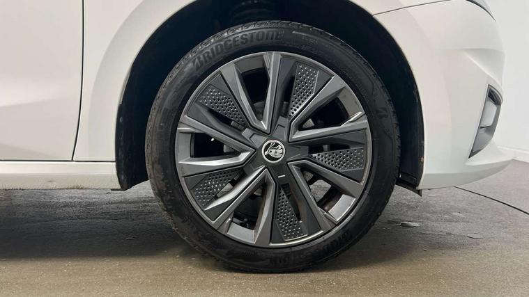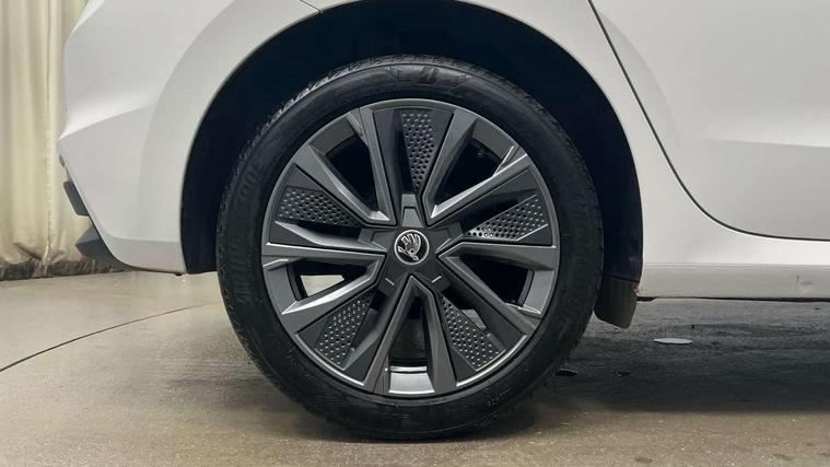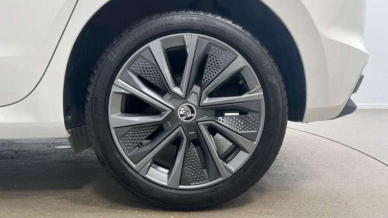 Bluetooth connection, Driver alert system - DAS, Electromechanical power steering, Exterior temperature gauge, Lane assist including road edge detection, Service interval indicator, Virtual cockpit with 10.25" colour display, 2x USB-C in the front (for data transmission and charging), 6 Speakers (4 in front and 2 in rear), Auxiliary socket for external MP3 player, Bolero radio with 8" colour display, DAB digital radio reception, Basic rear lights, Body coloured bumpers, Dimming rear view mirror with black frame, Door mirror integrated indicators, Electrically adjustable and heated door mirrors, Electrically adjustable front windows with function auto up/down, Front window wiper intermittent control, Headlight range control - Automatic, Ice scraper in fuel cap, LED daytime running lights with coming and leaving home feature, Mechanical adjustable rear windows, Privacy glass, Rear LED fog light, Rear side wing doors, Rear window wiper with washing nozzles, Roof colour door mirrors, Roof mounted spoiler, SKODA tailgate lettering in chrome, Third brake light, 3 rear headrests, Backrest split and folding, Central console with fixed cup holder and storage box, Chrome handbrake release button, Fabric upholstery, Gearshift knob/handle in leather, Grain satin black interior door handles, Hand brake lever handle in leather, Height adjustable front headrests, Height adjustable steering wheel, ISOFIX and TopTether anchorage points to the outer rear seats, ISOFIX and TopTether on the front passenger seat, Luggage compartment lighting, Pollen filter, Rear seat bench unsplit, Single front passenger seat, Storm grey headlining, Sun visors with mirror and airbag label on passenger side, Ticket holder, Umbrella in drivers door, 3-point height adjustable front seats belts with pretensioner and force limiter, Automatic warning lights in case of crash, Driver and passengers airbag with switch off function, e-Call+, ESC including ABS, MSR, ASR, EDS, HBA and XDS, Front and rear seat belt warning, FRONT ASSIST (AEB City and AEB Inter Urban), Front side airbags, Head airbags, One tone horn, Pedestrian protection, Three rear 3-points safety seat belts with pretensioner and force limiter including stop function for outer rear seat belts, Tyre pressure monitoring system, Anti-theft alarm system including immobiliser, interior monitoring, backup horn, and towing protection, Anodized cross line upper decorative trim, Colour Edition air vents, Grain satin black central console cover, Grain satin black lower decorative trim, Satin black door and side trim panel in front, Anti-theft wheel bolts protection, Super-low rolling resistance tyres,
