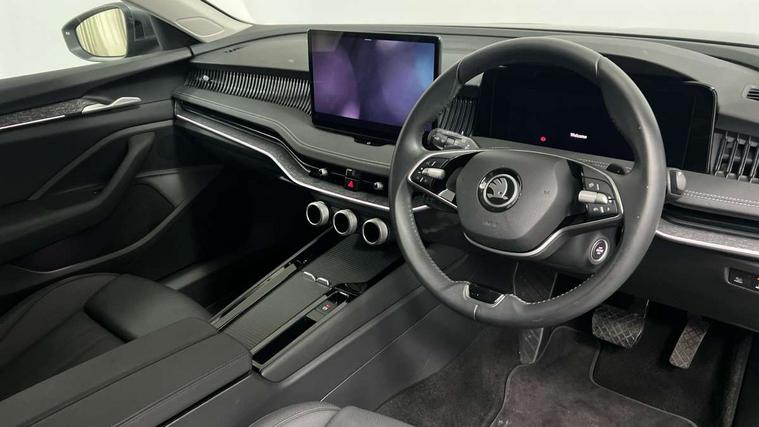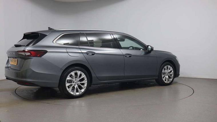 13" touchscreen display with satellite navigation, 4x USB-C ports (2x in front centre console and 2x in rear) (45W), Adaptive cruise control with speed assist, lane assist plus and traffic tram assist, Blind spot detection with door exit warning, Bluetooth system, CareConnect and Emergency Call, ChatGPT functionality, Drive mode selection, Driver fatigue sensor, Electrically operated boot with virtual pedal, Front assist with extended predictive pedestrian protection, Front cross traffic assist, PAS, Quick start all heating software functionality, Rear view camera with washer, Stop/start engine system, Traffic sign recognition, Turn assist with evasive assistance, Virtual Cockpit - 10.25" digital display, Voice control system, Wireless charging for one smartphone (15W) with cooling function, Wireless smartlink apple carplay, SmartLink+ android auto, DAB Digital radio, Display cleaner, FM radio connection, Web radio connection, Acoustic side windows and interior noise suppression, Backdrop lighting, Body colour door handles, Body coloured door mirrors, Chrome roof rails, Chrome window surround, Dynamic range control with poor weather light and integrated fog light, Electrically adjustable, heated, folding and driver side auto-dimming door mirrors with memory function, integrated indicators and logo projection, Frameless auto-dimming rear view mirror with USB-C, Front windscreen with heat-insulating glass, Ice scraper in fuel tank cap, LED 3rd brake light, Light assist with High beam control, Light assistant (coming/leaving home/tunnel light), Privacy glass, Rear fog lights (x2), Rear roof spoiler, Rear side wing doors, Rear windscreen wiper, Tow bar preparation, Unique dark chrome grille surround with dark chrome rib elements, Windscreen wipers with rain sensor, 12V socket 1x centre console 1x boot, 12V socket and 2x cargo elements in boot, 14-way electrically adjustable, memory, front seats with 4-way pneumatic lumbar support, and extendable thigh support with smart comfort entry aid, 2 spoke multifunction steering wheel with DSG paddles, 3 seat bench in 2nd row, 4x foldable bag hooks in boot, 60:40 Split folding rear seats, Advanced massage function for front seats, Bottle holders in the front doors 1.5 litre bottle and rear 1.5 litre bottle, Cup holder in front with easy open mat, Front and rear footwell illumination, Front armrest with storage box, Front sports comfort seats, Heated and ventilated front seats, Height adjustable front and rear head restraints, Height adjustable front passenger seat, Illuminated glovebox, Interior lights with control switches, Isofix child seat fittings in outer rear and front passenger seats, LED front and rear reading lights, Multi colour ambient lighting, Single front passenger seat, Storage pockets on back of front seats, Sun visors with illuminated vanity mirrors, Ticket holder on A Pillar, Tri zone climate control, Umbrella in driver's door, Light and view package - Superb, Transport package - Superb Estate, 3 rear seatbelts, 8 Airbags - Front driver and passenger, front side driver and passenger, centre, curtain front and rear, drivers knee, Crew protect assist, Driver and passenger seatbelts with warning light, Electronic parking brake, ESC including ABS, EBV, MSR, ASR, EDS, HBA, DSR, RBS, CBC, multi-collision brake (MKB) and Auto hold, Hill hold assist, Power operated child lock in rear doors, Alarm with interior monitoring tilt sensor and back up horn, Backrest remote release from trunk, Electronic engine immobiliser, Keyless start/stop, Remote central locking with SAFE system, Third key, Walk away locking, Decorative front door sills, Tyre repair kit,