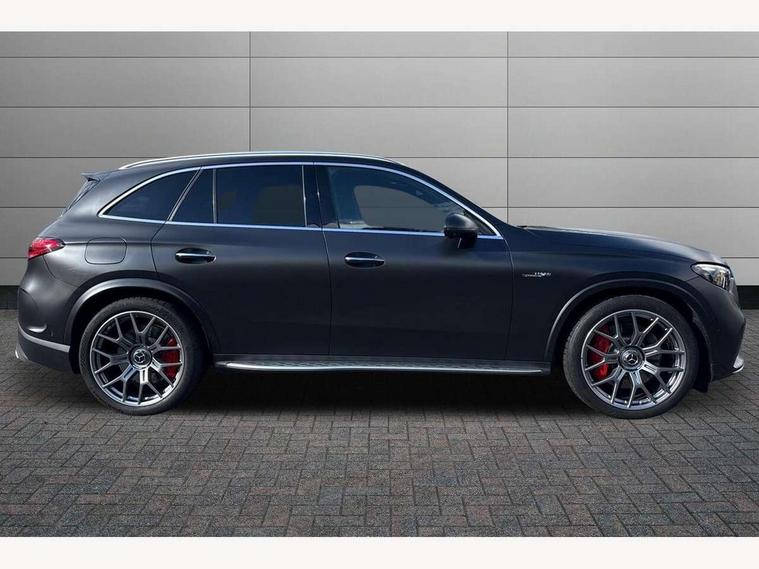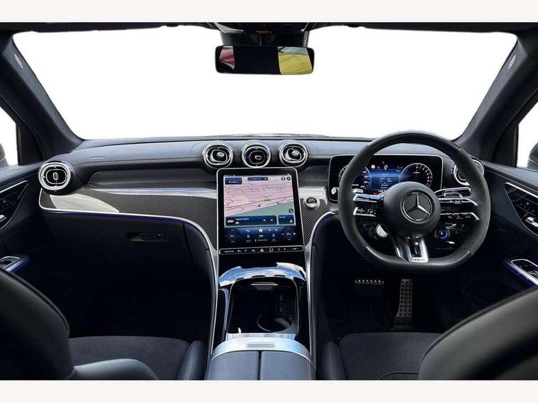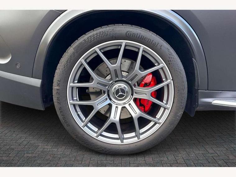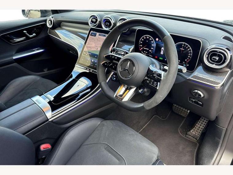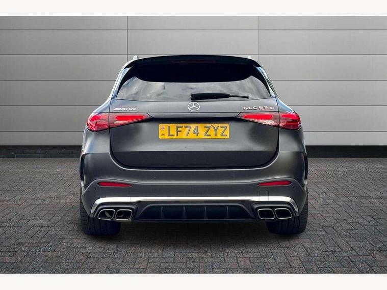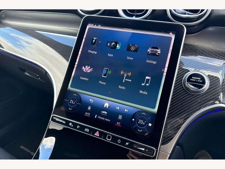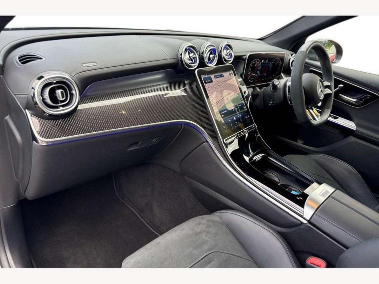 11.9" high resolution multimedia colour display, 12.3" Digital individually configurable instrument display, 360 degree camera, Acoustic ambient protection, Active parking assist with parktronic system, AMG DYNAMIC SELECT with a choice of eight driving modes(Electric, Comfort, Battery Hold, Sport, Sport+, Race, Slippery and Individual), AMG track pace, Attention assist, Bluetooth interface for hands free telephone, Dashcam - front camera for video recording, Easy pack automatic powered tailgate, eCall emergency call system, MBUX augmented reality for navigation, MBUX navigation premium, MBUX voice control activated by keywords "Hey Mercedes", Mercedes connect me with remote online services, Outside temperature display, Pre-installation for digital key transfer, Rear axle steering, Remote boot release, Road sign recognition system, Service indicator (ASSYST), Smartphone integration, Sports direct steer system with speed sensitive steering, Status display for rear seat belts in instrument cluster, Traffic sign assist, Trip computer, Wireless charging surface integrated into quick stowage tray in front of centre console, 4MATIC permanent four wheel drive, 5m charging cable for household socket (mode 2), 5m charging cable for wall box/public charging stations(mode 3), 65 litre fuel tank, 9G TRONIC plus automatic transmission, Agility control sports suspension with adaptive damping system, DAB digital radio tuner, MBUX extended functions, Mercedes benz sound system, Adaptive brake lights, AMG bodystyling front apron, rear apron and side skirts, AMG exhaust system with sporty engine sound, AMG radiator grille with vertical struts in high gloss chrome and AMG logo, AMG Real Performance Sound, AMG spoiler lip, Auto dimming rear view mirror, Auto headlights, Body colour door mirrors, Chrome roof rails, Digital light LED headlights, Electric windows with one touch opening/closing and obstruction sensors, Electrically adjustable and heated door mirrors, Headlight washers, Heat and noise insulating acoustic glass, Heated rear window, High level LED brake light, Illuminated front door sill panels, Integrated LED daytime running lights, LED indicator lights, LED rear fog lights, LED tail lamp, Mercedes AMG exterior, Rain sensor windscreen wipers, Range adjustable headlights, Rear side wing doors, Rear wiper, Tinted glass all round green, Variable front intermittent wipers, Welcome and follow-me home light functionality, 3 seat bench in 2nd row, 40:20:40 split folding rear seats, Ambient lighting, AMG Artico man-made leather/ Microcut microfibre upholstery, AMG performance steering wheel in nappa leather/dinamica microfibre, AMG steering wheel buttons, Artico leather dashboard with contrast stitching, Audio and onboard settings control on multifunction steering wheel, Automatic child seat recognition sensor, Black floor mats with AMG lettering, Double cup holder in centre console, Electrically height/reach adjustable steering column, Front centre armrest with stowage compartment, Front head restraints, Front seats with electric backrest, height adjust with 4 way electric lumbar support, Gearshift paddles on steering wheel, Heated front seats, Illuminated door sill panels with AMG lettering and with exchangable cover, Illuminated glove compartment, Load compartment cover, Mercedes AMG interior, Rear head restraints, Rear top tether child seat ISOFIX attachment, Single front passenger seat, Sports pedals with stainless steel surfaces and rubber studs, Sun visors with illuminated vanity mirrors, THERMATIC 2 zone automatic climate control, AMG Aerodynamics package - GLC AMG, AMG Driver's package - GLC AMG, Interior lighting pack - GLC AMG, Memory pack - GLC, Mirror pack - GLC AMG, Stowage pack - GLC AMG, USB Plus Pack - GLC, 3 rear 3 point seatbelts, Active bonnet, Adaptive brake system with HOLD function and brake drying in the wet, AMG high performance composite braking system with red painted brake calipers with AMG lettering, Anti-lock braking system (ABS), Black seat belts, Child proof door locks, Dual-stage airbags - driver and front passenger, sidebags in front seats, driver kneebag, pelvis bag and window bags for driver, Electronic key chrome surround, Electronic parking brake, Electronic Stability Programme (ESP), Front and rear seatbelt reminder, Front passenger seat occupancy sensor, Front seatbelt pretensioners, Hill start assist, Tyre pressure monitoring system, Warning triangle and first aid kit, Central locking with interior switch, automatic locking and crash sensor with emergency opening function, Guard 360 degree vehicle protection, Immobiliser, Keyless Go comfort access, Centre console in high gloss black, High gloss black with carbon fibre trim, 21" AMG cross spoke forged alloy wheels painted in tantalum grey with high sheen rim finish, TIREFIT with tyre inflation compressor,