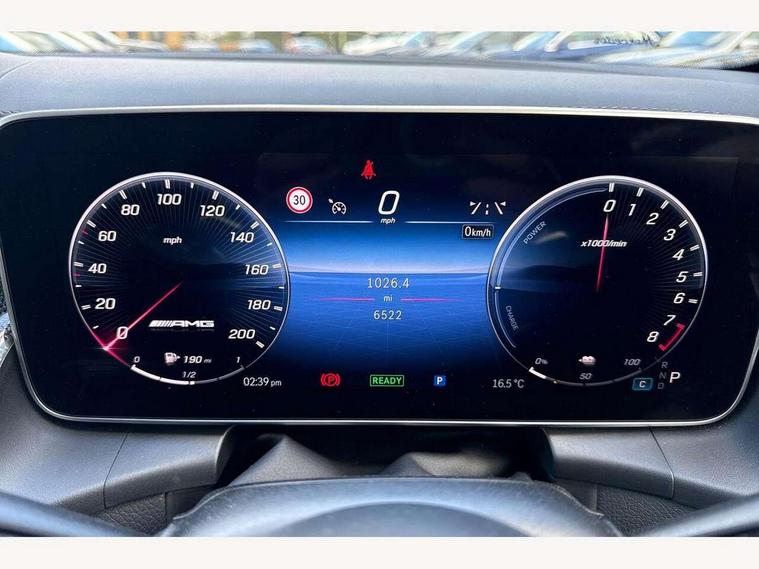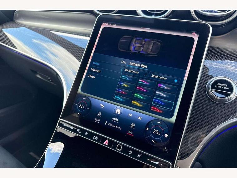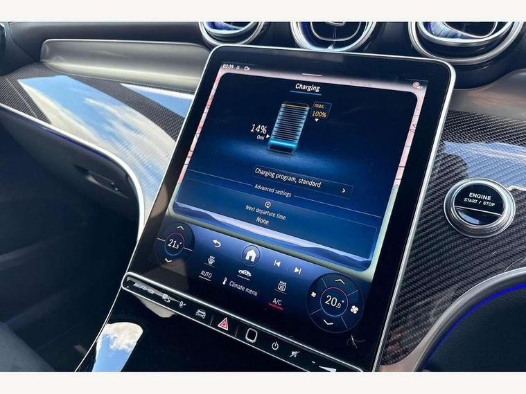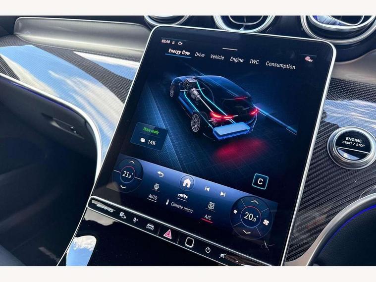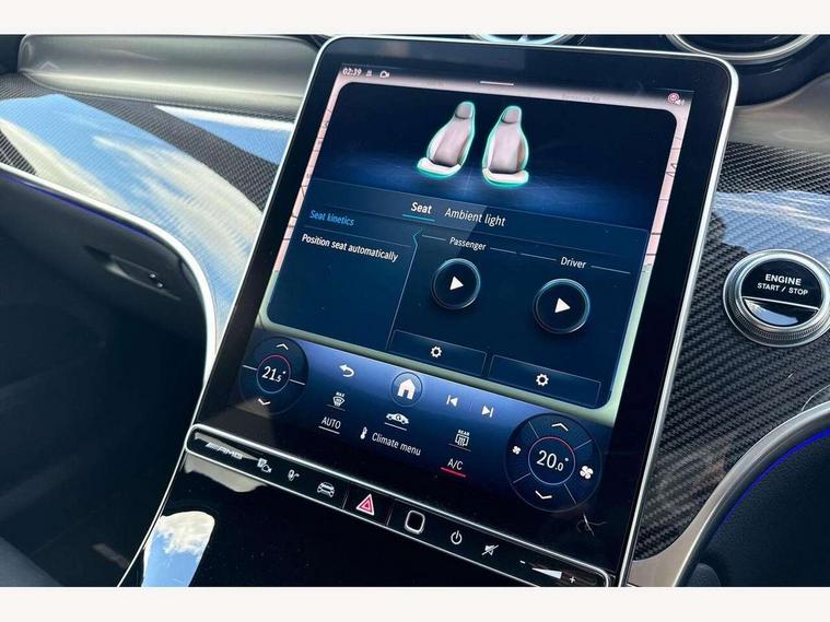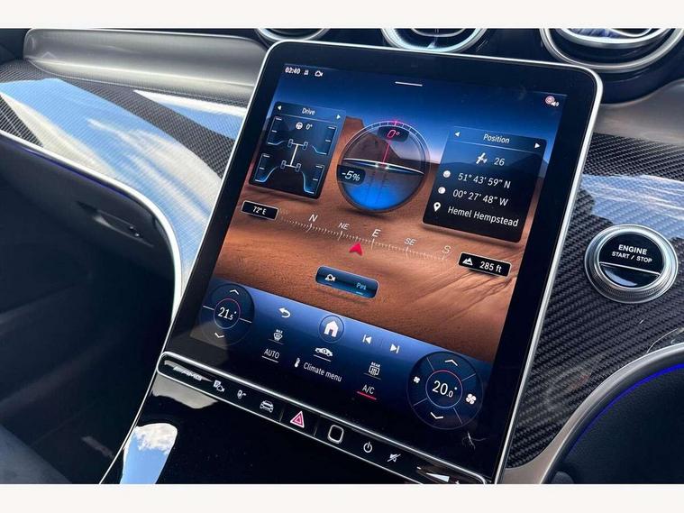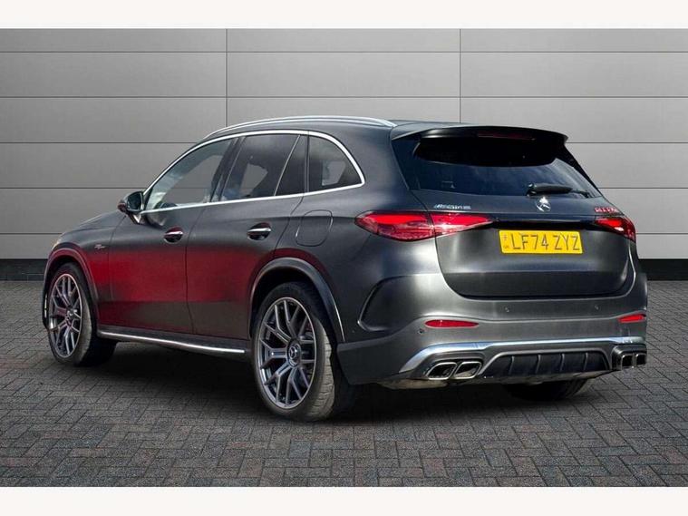 11.9" high resolution multimedia colour display, 12.3" Digital individually configurable instrument display, 360 degree camera, Acoustic ambient protection, Active parking assist with parktronic system, AMG DYNAMIC SELECT with a choice of eight driving modes(Electric, Comfort, Battery Hold, Sport, Sport+, Race, Slippery and Individual), AMG track pace, Attention assist, Bluetooth interface for hands free telephone, Dashcam - front camera for video recording, Easy pack automatic powered tailgate, eCall emergency call system, MBUX augmented reality for navigation, MBUX navigation premium, MBUX voice control activated by keywords "Hey Mercedes", Mercedes connect me with remote online services, Outside temperature display, Pre-installation for digital key transfer, Rear axle steering, Remote boot release, Road sign recognition system, Service indicator (ASSYST), Smartphone integration, Sports direct steer system with speed sensitive steering, Status display for rear seat belts in instrument cluster, Traffic sign assist, Trip computer, Wireless charging surface integrated into quick stowage tray in front of centre console, 4MATIC permanent four wheel drive, 5m charging cable for household socket (mode 2), 5m charging cable for wall box/public charging stations(mode 3), 65 litre fuel tank, 9G TRONIC plus automatic transmission, Agility control sports suspension with adaptive damping system, DAB digital radio tuner, MBUX extended functions, Mercedes benz sound system, Adaptive brake lights, AMG bodystyling front apron, rear apron and side skirts, AMG exhaust system with sporty engine sound, AMG radiator grille with vertical struts in high gloss chrome and AMG logo, AMG Real Performance Sound, AMG spoiler lip, Auto dimming rear view mirror, Auto headlights, Body colour door mirrors, Chrome roof rails, Digital light LED headlights, Electric windows with one touch opening/closing and obstruction sensors, Electrically adjustable and heated door mirrors, Headlight washers, Heat and noise insulating acoustic glass, Heated rear window, High level LED brake light, Illuminated front door sill panels, Integrated LED daytime running lights, LED indicator lights, LED rear fog lights, LED tail lamp, Mercedes AMG exterior, Rain sensor windscreen wipers, Range adjustable headlights, Rear side wing doors, Rear wiper, Tinted glass all round green, Variable front intermittent wipers, Welcome and follow-me home light functionality, 3 seat bench in 2nd row, 40:20:40 split folding rear seats, Ambient lighting, AMG Artico man-made leather/ Microcut microfibre upholstery, AMG performance steering wheel in nappa leather/dinamica microfibre, AMG steering wheel buttons, Artico leather dashboard with contrast stitching, Audio and onboard settings control on multifunction steering wheel, Automatic child seat recognition sensor, Black floor mats with AMG lettering, Double cup holder in centre console, Electrically height/reach adjustable steering column, Front centre armrest with stowage compartment, Front head restraints, Front seats with electric backrest, height adjust with 4 way electric lumbar support, Gearshift paddles on steering wheel, Heated front seats, Illuminated door sill panels with AMG lettering and with exchangable cover, Illuminated glove compartment, Load compartment cover, Mercedes AMG interior, Rear head restraints, Rear top tether child seat ISOFIX attachment, Single front passenger seat, Sports pedals with stainless steel surfaces and rubber studs, Sun visors with illuminated vanity mirrors, THERMATIC 2 zone automatic climate control, AMG Aerodynamics package - GLC AMG, AMG Driver's package - GLC AMG, Interior lighting pack - GLC AMG, Memory pack - GLC, Mirror pack - GLC AMG, Stowage pack - GLC AMG, USB Plus Pack - GLC, 3 rear 3 point seatbelts, Active bonnet, Adaptive brake system with HOLD function and brake drying in the wet, AMG high performance composite braking system with red painted brake calipers with AMG lettering, Anti-lock braking system (ABS), Black seat belts, Child proof door locks, Dual-stage airbags - driver and front passenger, sidebags in front seats, driver kneebag, pelvis bag and window bags for driver, Electronic key chrome surround, Electronic parking brake, Electronic Stability Programme (ESP), Front and rear seatbelt reminder, Front passenger seat occupancy sensor, Front seatbelt pretensioners, Hill start assist, Tyre pressure monitoring system, Warning triangle and first aid kit, Central locking with interior switch, automatic locking and crash sensor with emergency opening function, Guard 360 degree vehicle protection, Immobiliser, Keyless Go comfort access, Centre console in high gloss black, High gloss black with carbon fibre trim, 21" AMG cross spoke forged alloy wheels painted in tantalum grey with high sheen rim finish, TIREFIT with tyre inflation compressor,