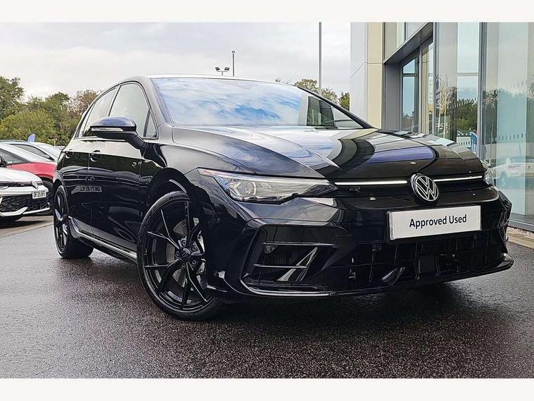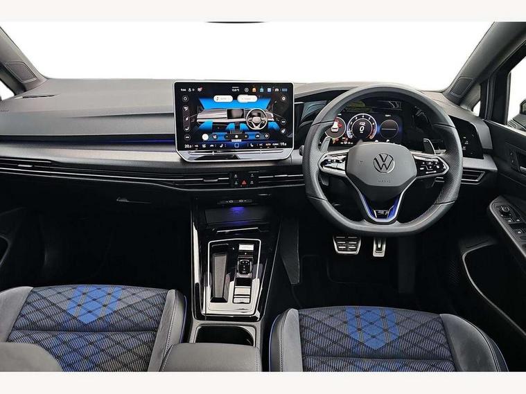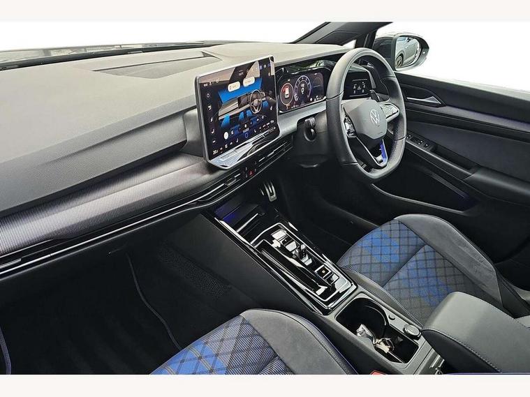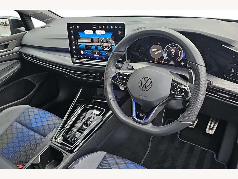 Activated carbon canister, Adaptive cruise control (ACC), Advanced driver attention and drowsiness monitor, Dynamic road sign display, E-Sim card for online connectivity, eCall emergency call system, Electronic maximum speed limit increased to 270 km/h, includes driving Modes 'drift' and 'special', larger roof spolier and GPS laptimer + G-Meter, Multi-color Digital cockpit pro, selection of different info profile possible, Multifunction front facing camera for distance control, Navigation system, Oncoming vehicle braking when turning including swerve support, Preparation for light assist system, Progressive steering, Side assist blind spot lane change system, rear traffic alert and exit warning system, Speed limiter, Speedo, rev counter, electronic odometer, trip, service interval display, exterior temperature and fuel gauge, Traffic jam assist, Voice enhancer and voice control, Warning signal and warning light for front and rear seatbelts not fastened, We connect plus preparation, We connect preparation, Wireless app connect, All wheel drive - 4Motion, Petrol Particulate Filter, Sports suspension, Start-stop system with battery regeneration (recuperation - energy recovery during braking), XDS electronic differential lock for improved traction and handling, 2 USB C ports in front, 2 USB charging sockets on the centre console in the rear charging capacity upto 45W, Comfort telephony + wireless charging, without wireless aerial connection, Digital radio reception (DAB), Diversity antenna for FM reception, Gaming platform via car app, Infotainment system with 12.9" display, Mobile phone interface with inductive charging feature, 3rd brake light, Auto dimming rear view mirror, Auto headlights, Automatic headlamp activation with Coming home and Leaving home feature, Black badge on B-pillar, Black mirror caps, Black strips on radiator grille and headlights, Body colour door handles, Darkened headlights, Darkened R Logos and VW logos in front, rear and on fender, Exhaust system with black tailpipe, Exterior ambient lighting with illuminated lighting animation and wake up/goodbye scenario, Exterior mirrors convex on the left and aspherical on the right, Front and rear electric windows, Front fog lamps and cornering light, Heat insulating windshield made of laminated glass, LED daytime running lights, LED matrix headlights with ambient light V2, advanced high beam, dynamic range contol with cornering, LED rear lamp with indicator, poor weather, R name plate, Rain sensor, Rear fog light on one side and reversing lights on both sides, Rear side wing doors, Rear tinted glass 65% light absorbing from B pillar backwards, Rear windscreen washer and wiper with interval delay, Remote electrically foldable door mirrors, puddle lights and reverse activated passenger's door mirror, Welcome light with surround lighting, 12V socket in front centre console, 12V socket in luggage compartment, 3 rear head restraints, 3 seat bench in 2nd row, 30 colour ambient lighting, illuminated center console storage compartment in front, Air care climatronic 3 Zone automatic climate control with rear air conditioning control panel, Aluminium gearshift handle, Brushed stainless steel pedals, Carpet mats, front and rear, Front centre armrest, Integrated front head restraints, ISOFIX anchors for child seats on outer rear bench seats and on front passanger seat compatible for i-Size, Luggage compartment lighting, Rear cupholder and loadthough, Single front passenger seat, Soul black instrument panel, Split folding backrest with centre armrest and unsplit rear seat bench, Storm grey roof lining, Sun visors with illuminated vanity mirrors, Driver assistance pack - Golf DSG Estate/Hatchback, R styling pack - Golf, Technology park and comfort pro package - Golf Hatchback, 3 point height adj front seatbelts + pretensioners, 3 rear three point seatbelts, ABS, Autonomous emergency braking front assist with pedestrian and cyclist monitoring, Child locks on rear doors, Disc brakes in rear incl. brake calipers in black with darkened R-logo, Driver and front passenger airbag with front passenger airbag deactivation, Electronic parking brake with auto hold, ESC (Electronic Stability Control), Extended pedestrian protection measures, Hill start assist, Two tone horn, Tyre pressure loss indicator, Volkswagen roadside assistance, Anti theft wheel bolts, Preparation for alcohol interlock, Wheel hub cover with darkened R-logo,