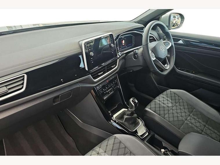 10.25" Digital cockpit pro, Advanced driver attention and drowsiness monitor, Emergency call service, Lane keeping system Lane Assist, Mobile phone interface, Modified key software - reduce switch off time for key status change to Long no motion, Online services, Park assist including front and rear parking sensors, Service interval indicator, Tailgate/trunk lid release from outside, Think blue trainer driver tips and journey analysis, Warning sound and light for front seatbelts unfastened, Wireless app connect, Battery regeneration during braking, Start/stop function with battery regeneration, DAB Digital radio, Diversity antenna for FM reception, Front and rear 6 speakers, Music playback - MP3, WMA and AAC files, Premium USB cable in choice of either Apple or Android smartphone compatibility, SD card slot, Simultaneous pairing of 2 compatible mobile devices, Title and cover art display, We Connect and We Connect Plus functionality, Auto dimming interior rear view mirror, Automatic hazard lights activation under emergency braking, Automatic headlight control with LED separate daytime running lights with coming/leaving home function, Body coloured exterior mirror housings and door handles, Electrically adjustable and heated door mirrors, Extended roof spoiler, Exterior mirrors aspherical on driver side, convex on front passenger side, External USB type C socket and charging sockets, Front windscreen wiper with intermittent wipe and 4 position delay, Heated rear window, LED 3rd brake light, LED rear combination lamps, LED rear number plate lights, Power windows with comfort operation and circuit breaker, Privacy glass for rear side windows and rear window, R-Line design body coloured bumpers, Rain sensor, Rear exhaust tailpipe, Rear fog light on one side and reversing lights on both sides, Rear side wing doors, Rear wash/wipe with intermittent wipe setting, Remote electrically foldable door mirrors, puddle lights and reverse activated passenger's door mirror, 12V power socket in centre console, 3 rear head restraints, 3 seat bench in 2nd row, 4 load lashing points in luggage compartment, Air care climatronic air conditoning system with active combination filter and 2-zone temperature control, Black roof lining, Chrome plated decorative trims, Chrome plated radiator grille inserts, air vent surrounds and light switch surrounds, Door and side trim panel with leatherette insert, Front + rear carpet mats, Front centre armrest, Front cupholders x 2, Front footwell illumination, Front reading light, Front scuff plates with R Line logo, Front seat back storage pockets, Glove compartment door with light, Instrument lighting, white adjustable panel illumination, Interior ambient lighting and surround lighting, Interior light delay, Isofix child seat preparation, Leather gearshift handle, Load-through provision with cup holder when folded down ('Unsplit rear seat bench, split folding backrest, with centre armrest), Luggage compartment lighting, Single front passenger seat, Stainless steel pedals, Storage compartment in left and right luggage area, Storage compartment in rear doors, Storage compartments in driver and front passenger doors, Sunvisors with illuminated vanity mirrors, Variable boot floor, height adjustable and removable, Driver assistance pack without proactive passenger protection - T-Roc, 3 point height adj front seatbelts + pretensioners, 3 point seatbelts in outer rear with ECE label, ABS, Child locks on rear doors, City emergency braking and pedestrian monitoring, Driver and front passenger airbag with front passenger airbag deactivation, Driver and front passenger safety-optimised head restraints, Drivers seatbelt reminder, Electronic parking brake, Electronic Stability Control (ESC) inc EDL (Electronic Differential Lock) and ASR (Traction Control), Front and rear passengers curtain airbag system including front side airbags, Hill start assist, Predictive pedestrian protection, Rear disc brakes, Two tone horn, Tyre pressure loss indicator, Volkswagen roadside assistance, Piano black decorative inserts in dashboard and front door trim panels, Trims for alloy wheels,