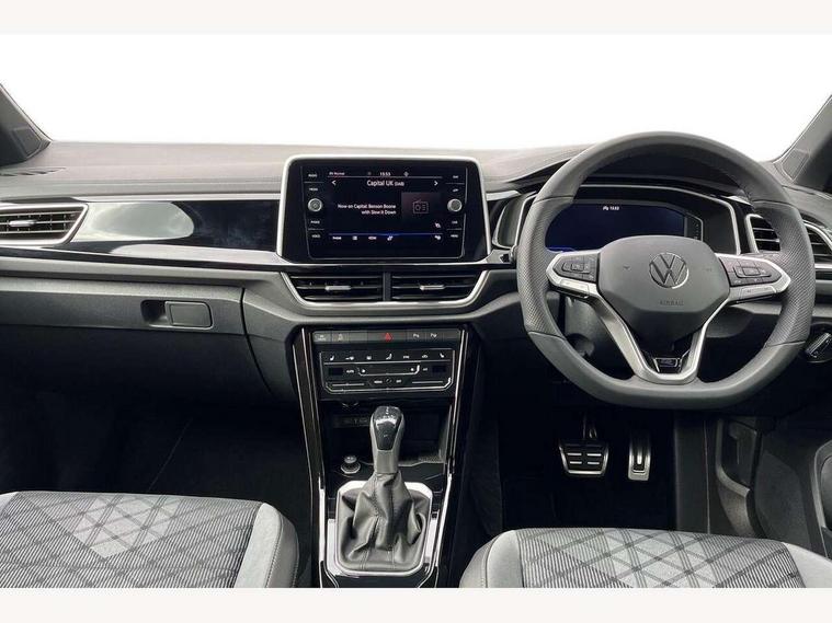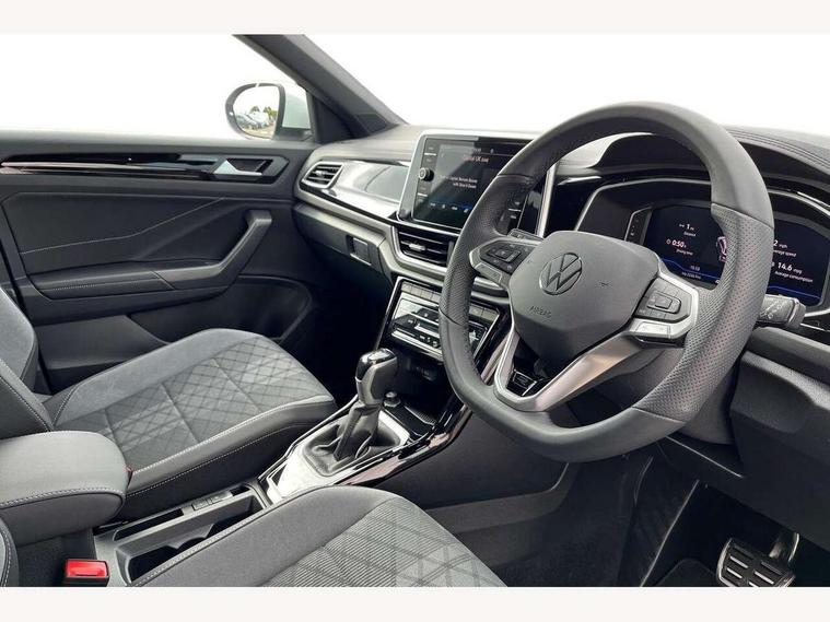 10.25" Digital cockpit pro, Advanced driver attention and drowsiness monitor, Emergency call service, Lane keeping system Lane Assist, Mobile phone interface, Modified key software - reduce switch off time for key status change to Long no motion, Online services, Park assist including front and rear parking sensors, Service interval indicator, Tailgate/trunk lid release from outside, Think blue trainer driver tips and journey analysis, Warning sound and light for front seatbelts unfastened, Wireless app connect, Battery regeneration during braking, Start/stop function with battery regeneration, DAB Digital radio, Diversity antenna for FM reception, Front and rear 6 speakers, Music playback - MP3, WMA and AAC files, Premium USB cable in choice of either Apple or Android smartphone compatibility, SD card slot, Simultaneous pairing of 2 compatible mobile devices, Title and cover art display, We Connect and We Connect Plus functionality, Auto dimming interior rear view mirror, Automatic hazard lights activation under emergency braking, Automatic headlight control with LED separate daytime running lights with coming/leaving home function, Body coloured exterior mirror housings and door handles, Electrically adjustable and heated door mirrors, Extended roof spoiler, Exterior mirrors aspherical on driver side, convex on front passenger side, External USB type C socket and charging sockets, Front windscreen wiper with intermittent wipe and 4 position delay, Heated rear window, LED 3rd brake light, LED rear combination lamps, LED rear number plate lights, Power windows with comfort operation and circuit breaker, Privacy glass for rear side windows and rear window, R-Line design body coloured bumpers, Rain sensor, Rear exhaust tailpipe, Rear fog light on one side and reversing lights on both sides, Rear side wing doors, Rear wash/wipe with intermittent wipe setting, Remote electrically foldable door mirrors, puddle lights and reverse activated passenger's door mirror, 12V power socket in centre console, 3 rear head restraints, 3 seat bench in 2nd row, 4 load lashing points in luggage compartment, Air care climatronic air conditoning system with active combination filter and 2-zone temperature control, Black roof lining, Chrome plated decorative trims, Chrome plated radiator grille inserts, air vent surrounds and light switch surrounds, Door and side trim panel with leatherette insert, Front + rear carpet mats, Front centre armrest, Front cupholders x 2, Front footwell illumination, Front reading light, Front scuff plates with R Line logo, Front seat back storage pockets, Glove compartment door with light, Instrument lighting, white adjustable panel illumination, Interior ambient lighting and surround lighting, Interior light delay, Isofix child seat preparation, Leather gearshift handle, Load-through provision with cup holder when folded down ('Unsplit rear seat bench, split folding backrest, with centre armrest), Luggage compartment lighting, Single front passenger seat, Stainless steel pedals, Storage compartment in left and right luggage area, Storage compartment in rear doors, Storage compartments in driver and front passenger doors, Sunvisors with illuminated vanity mirrors, Variable boot floor, height adjustable and removable, Driver assistance pack without proactive passenger protection - T-Roc, 3 point height adj front seatbelts + pretensioners, 3 point seatbelts in outer rear with ECE label, ABS, Child locks on rear doors, City emergency braking and pedestrian monitoring, Driver and front passenger airbag with front passenger airbag deactivation, Driver and front passenger safety-optimised head restraints, Drivers seatbelt reminder, Electronic parking brake, Electronic Stability Control (ESC) inc EDL (Electronic Differential Lock) and ASR (Traction Control), Front and rear passengers curtain airbag system including front side airbags, Hill start assist, Predictive pedestrian protection, Rear disc brakes, Two tone horn, Tyre pressure loss indicator, Volkswagen roadside assistance, Piano black decorative inserts in dashboard and front door trim panels, Trims for alloy wheels,