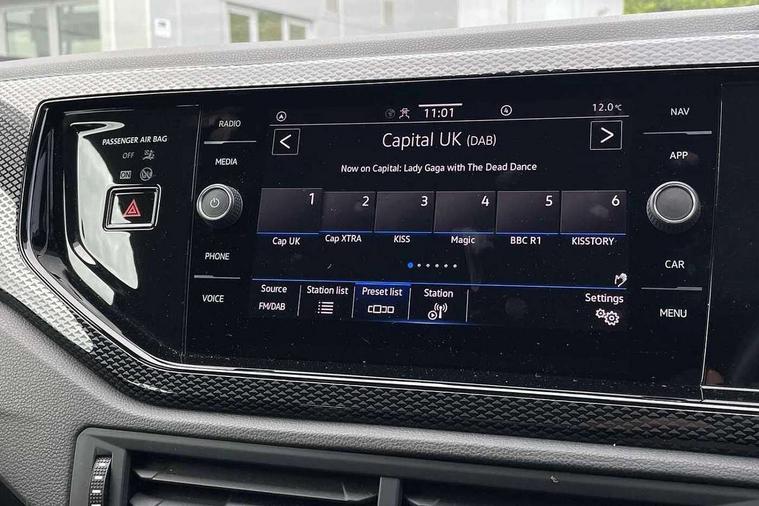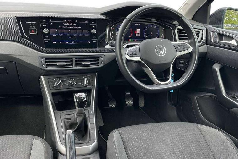 Adaptive cruise control without follow-to-stop and speed limiter, Bluetooth mobile phone interface, Driver alert system, Emergency call service, Front assist system, Power assisted speed sensitive steering, Preparation for We connect and We connect plus, Speedo and rev counter, electronic odometer, trip, service interval display and fuel gauge, Standard rear axle, Travel Assist - Lane keeping system and traffic jam assist, Travel assist including emergency assist, Trip computer, Warning signal and warning light for front and rear seatbelts not fastened, Washer fluid level indicator, Wireless app connect, Front wheel drive, Rear shock absorpion, Start-stop system with battery regeneration (recuperation - energy recovery during braking), DAB Digital radio, Diversity antenna for FM reception, Front and rear 6 speakers, Automatic dimming interior rear view mirror, Body colour bumpers, Body colour door handles, Body colour door mirrors, Electric front windows, Heat insulating darkened glass in side and rear windows, Heat insulating glass windscreen, Power folding adjustable/heated exterior mirrors and front passenger exterior mirror lowering function, Rain sensor, Rear electric windows, Rear fog light, Rear side wing doors, Rear windscreen washer and wiper with interval delay, Third brake light, 12V power socket in centre console, 2 front and 2 rear reading lights, 2 USB-C ports in the front, 2 USB-C charging sockets on the center console in the rear, 3 rear head restraints, 60/40 split folding rear seat and rear seat bench not split, Ceramique headliner, Chrome plated radiator grille inserts, air vent surrounds and light switch surrounds, Door and side trim panel, Driver and front passenger seat height adjustment, Driver/passenger sunvisors with illuminated vanity mirrors, Front centre armrest, Front seat backrest storage pockets, Front standard seats, Handbrake lever handle in leather, Hartley/Thomas cloth upholstery, Isofix child seat preparation easy-fit (for two outer rear seats, and front passenger seat) compatible with I-size, Leather trimmed gear knob, Luggage compartment cover, Luggage compartment floor, Luggage compartment lighting, Multifunction steering wheel, Single front passenger seat, Standard pedal cluster, Light and vision pack - Polo, 3 point height adj front seatbelts + pretensioners, 3x3 point rear seatbelts, ABS, Driver and front passenger airbag with front passenger airbag deactivation, Drivers and front passengers safety optimised head restraints, ESC (Electronic stability control) + EDL (Electronic Differntial lock) and ASR (Traction control), Extended and predictive pedestrian/ cyclist protection, Front curtain and side airbags with center airbag, Front disc brakes, Hill hold control, Manual child lock in rear doors, Rear drum brakes, Single tone horn, Tyre pressure loss indicator, Alarm with interior protection, Anti-theft alarm system with interior monitoring, backup horn, and towing protection, Anti-theft wheel bolts, Electronic engine immobiliser, Lava stone black gloss/matt decorative inserts in dash and front door panels, Low rolling resistance tyres,