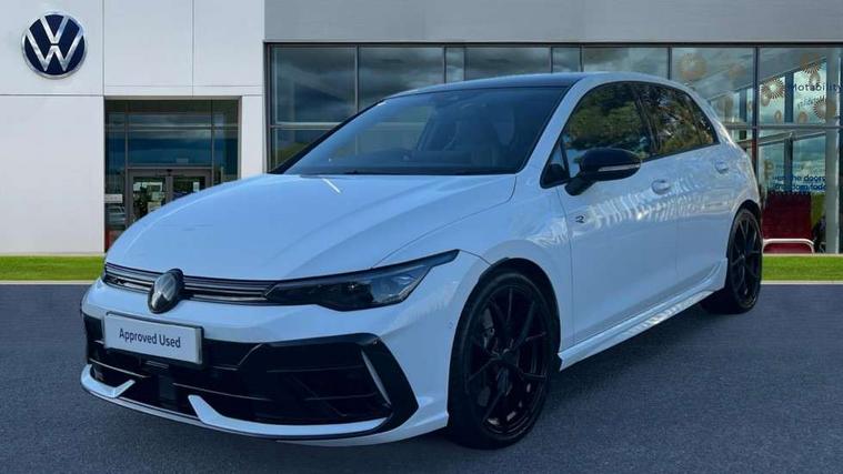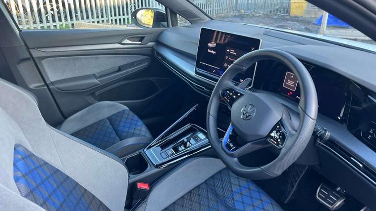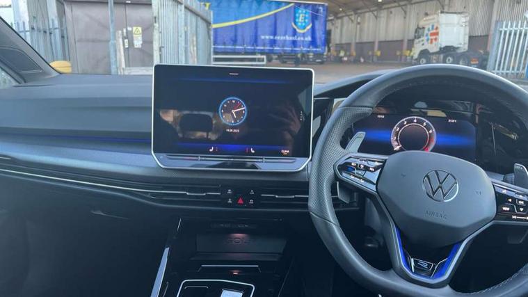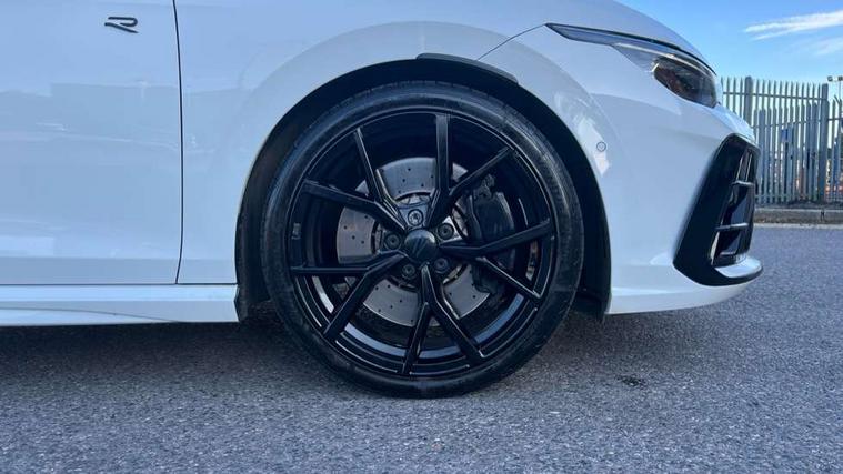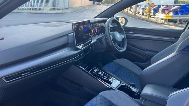 Activated carbon canister, Adaptive cruise control (ACC), Advanced driver attention and drowsiness monitor, Dynamic road sign display, E-Sim card for online connectivity, eCall emergency call system, Electronic maximum speed limit increased to 270 km/h, includes driving Modes 'drift' and 'special', larger roof spolier and GPS laptimer + G-Meter, Multi-color Digital cockpit pro, selection of different info profile possible, Multifunction front facing camera for distance control, Navigation system, Oncoming vehicle braking when turning including swerve support, Preparation for light assist system, Progressive steering, Side assist blind spot lane change system, rear traffic alert and exit warning system, Speed limiter, Speedo, rev counter, electronic odometer, trip, service interval display, exterior temperature and fuel gauge, Traffic jam assist, Voice enhancer and voice control, Warning signal and warning light for front and rear seatbelts not fastened, We connect plus preparation, We connect preparation, Wireless app connect, All wheel drive - 4Motion, Petrol Particulate Filter, Sports suspension, Start-stop system with battery regeneration (recuperation - energy recovery during braking), XDS electronic differential lock for improved traction and handling, 2 USB C ports in front, 2 USB charging sockets on the centre console in the rear charging capacity upto 45W, Comfort telephony + wireless charging, without wireless aerial connection, Digital radio reception (DAB), Diversity antenna for FM reception, Gaming platform via car app, Infotainment system with 12.9" display, Mobile phone interface with inductive charging feature, 3rd brake light, Auto dimming rear view mirror, Auto headlights, Automatic headlamp activation with Coming home and Leaving home feature, Black badge on B-pillar, Black mirror caps, Black strips on radiator grille and headlights, Body colour door handles, Darkened headlights, Darkened R Logos and VW logos in front, rear and on fender, Exhaust system with black tailpipe, Exterior ambient lighting with illuminated lighting animation and wake up/goodbye scenario, Exterior mirrors convex on the left and aspherical on the right, Front and rear electric windows, Front fog lamps and cornering light, Heat insulating windshield made of laminated glass, LED daytime running lights, LED matrix headlights with ambient light V2, advanced high beam, dynamic range contol with cornering, LED rear lamp with indicator, poor weather, R name plate, Rain sensor, Rear fog light on one side and reversing lights on both sides, Rear side wing doors, Rear tinted glass 65% light absorbing from B pillar backwards, Rear windscreen washer and wiper with interval delay, Remote electrically foldable door mirrors, puddle lights and reverse activated passenger's door mirror, Welcome light with surround lighting, 12V socket in front centre console, 12V socket in luggage compartment, 3 rear head restraints, 3 seat bench in 2nd row, 30 colour ambient lighting, illuminated center console storage compartment in front, Air care climatronic 3 Zone automatic climate control with rear air conditioning control panel, Aluminium gearshift handle, Brushed stainless steel pedals, Carpet mats, front and rear, Front centre armrest, Integrated front head restraints, ISOFIX anchors for child seats on outer rear bench seats and on front passanger seat compatible for i-Size, Luggage compartment lighting, Rear cupholder and loadthough, Single front passenger seat, Soul black instrument panel, Split folding backrest with centre armrest and unsplit rear seat bench, Storm grey roof lining, Sun visors with illuminated vanity mirrors, Driver assistance pack - Golf DSG Estate/Hatchback, R styling pack - Golf, Technology park and comfort pro package - Golf Hatchback, 3 point height adj front seatbelts + pretensioners, 3 rear three point seatbelts, ABS, Autonomous emergency braking front assist with pedestrian and cyclist monitoring, Child locks on rear doors, Disc brakes in rear incl. brake calipers in black with darkened R-logo, Driver and front passenger airbag with front passenger airbag deactivation, Electronic parking brake with auto hold, ESC (Electronic Stability Control), Extended pedestrian protection measures, Hill start assist, Two tone horn, Tyre pressure loss indicator, Volkswagen roadside assistance, Anti theft wheel bolts, Preparation for alcohol interlock, Wheel hub cover with darkened R-logo,