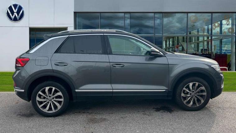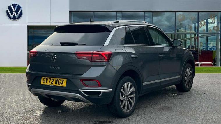 10.25" Digital cockpit pro, Bluetooth mobile phone interface, Driver alert system with fatigue detection, Driver tips and journey analysis, Emergency call service, Lane keeping system Lane Assist, Modified key software - reduce switch off time for key status change to Long no motion, Online services, Park assist including front and rear parking sensors, Service interval indicator, Tailgate/trunk lid release from outside, Think blue trainer driver tips and journey analysis, Warning sound and light for front seatbelts unfastened, Wireless app connect, Battery regeneration during braking, Start/stop function with battery regeneration, Diversity antenna for FM reception, Front and rear 6 speakers, Music playback - MP3, WMA and AAC files, Premium USB cable in choice of either Apple or Android smartphone compatibility, SD card slot, Simultaneous pairing of 2 compatible mobile devices, Title and cover art display, We Connect and We Connect Plus functionality, 3rd brake light, Auto dimming interior rear view mirror, Automatic hazard lights activation under emergency braking, Automatic headlight control with LED separate daytime running lights with coming/leaving home function, Body colour sports bumpers with silver metallic underbody fascia, Dynamic headlight range control with self adjusting whilst driving, Extended roof spoiler, Exterior mirrors aspherical on driver side, convex on front passenger side, External USB type C socket and charging sockets, Front windscreen wiper with intermittent wipe and 4 position delay, Heated rear window, LED Plus headlamps, LED rear combination lamps, LED rear number plate lights, LED tail lamp rear comination lamps, Light mode for poor weather, rain, fog or snow, Power windows with comfort operation and circuit breaker, Rain sensor, Rear exhaust tailpipe, Rear fog light on one side and reversing lights on both sides, Rear side wing doors, Rear wash/wipe with intermittent wipe setting, Remote electrically foldable door mirrors, puddle lights and reverse activated passenger's door mirror, 12V power socket in centre console, 3 rear head restraints, 3 seat bench in 2nd row, 4 load lashing points in luggage compartment, Air care climatronic air conditoning system with active combination filter and 2-zone temperature control, Chrome plated radiator grille inserts, air vent surrounds and light switch surrounds, Door and side trim panel with leatherette insert, Drawer under drivers seat, Front + rear carpet mats, Front centre armrest, Front comfort sports seats, Front cupholders x 2, Front footwell illumination, Instrument lighting, white adjustable panel illumination, Interior ambient lighting and surround lighting, Interior light delay, Isofix child seat preparation, Leather gearshift handle, LED interior light with switch off delay/dimmer and 2 front/rear LED reading lights, Load-through provision with cup holder when folded down ('Unsplit rear seat bench, split folding backrest, with centre armrest), Luggage compartment lighting, Non-folding front passenger seat backrest, Single front passenger seat, Storage compartment in left and right luggage area, Storage compartment in rear doors, Storage compartments in driver and front passenger doors, Sunvisors with illuminated vanity mirrors, Variable boot floor, height adjustable and removable, Driver assistance pack without proactive passenger protection - T-Roc, 3 point height adj front seatbelts + pretensioners, 3 point seatbelts in outer rear with ECE label, ABS, Child locks on rear doors, Driver and front passenger airbag with front passenger airbag deactivation, Driver and front passenger safety-optimised head restraints, Drivers seatbelt reminder, Electronic parking brake, Electronic Stability Control (ESC) inc EDL (Electronic Differential Lock) and ASR (Traction Control), Front and rear passengers curtain airbag system including front side airbags, Front assist with city emergency braking and pedestrian monitoring, Front seat side impact airbags, Predictive pedestrian protection, Rear disc brakes, Single tone horn, Tyre pressure loss indicator, Volkswagen roadside assistance, Alarm with interior protection, Anti-theft alarm system with interior monitoring, backup horn, and towing protection, Remote central locking with SAFELOCK, radio remote control with 2 remote control folding keys, Trims for alloy wheels,