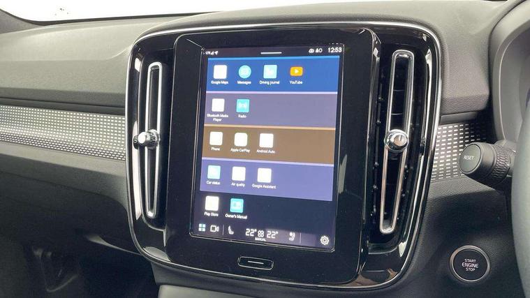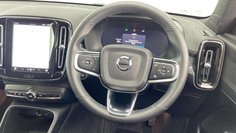 12.3" Progressive Driver Display, 9" centre console portrait touch screen, Adjustable steering wheel force, Android auto (Wired), Apple carplay (wired), Bluetooth handsfree system, Cruise control, Driver alert control, E-call, Front park assist, Google automotive services - Enabled entertainment apps, navigation with google maps, voice recognition with google assistant, Hands free power tailgate, Intelligent speed assistance, Lane keeping aid, Oncoming Lane Mitigation, Rear park assist, Speed sensitive steering, Volvo cars services with app - Driving journal, emergency and breakdown call, engine remote start, remote door locking/unlocking and vehicle dashboard, Wireless/Inductive Mobile Phone Charging, Automatic transmission with start/stop and manual change functions, Dynamic chassis, DAB Digital radio, Steering wheel mounted remote controls, Adaptive brake lights with high level LED brake lights, Auto dimming interior mirror, Automatic headlamp levelling, Automatic LED Headlights + Active high beam incorporating daytime running lights, Front aluminium tread plates, Front and rear electric windows, High gloss black front and rear skid plate, High gloss black front bumper deco, High gloss black mesh front grille with high gloss black surround, High gloss black window trim, Home safe and approach lighting, Integrated roof rails in high gloss black, LED front fog lights, Puddle lights, Rain sensor with automatic windscreen wiper activation, Rear side wing doors, Rear wiper, Roof antenna, Roof spoiler, Visible VIN plate, 12V socket in front tunnel console and luggage compartment, 2-Zone electronic climate control with CleanZone air quality system and pollen filter, 3 seat bench in 2nd row, 3 Spoke tailored steering wheel with chrome trim, 60/40 versatile split folding rear seat, Centre console cupholders and storage, Flexible load floor and grocery bag holder, Floor mats, Front cabin courtesy lights, Front door pocket, front cupholder, ambient front door, rear reading, rear courtesy, instrument panel and tailgate lighting, Front footwell illumination, Front headrests, Front reading lights, Front seat cushion extensions, Front side step illumination (under door), Glovebox bag hook, Heated front seats, Height adjustable passenger seat, Height/reach adjustable steering column, High gloss centre tunnel deco, Illuminated glovebox, Illuminated luggage compartment, Illuminated vanity mirrors + ticket holder, Integrated waste bin, Isofix attachments on outer rear seats, Load cover, Load protection net, Multi directional lumbar support for driver and passenger seat, Power driver seat with memory + exterior mirrors memory, Rear armrest with cupholders, Rear headrests, Single front passenger seat, Underfloor cargo storage, Climate pack without heated front seats - XC40, 3x3 point rear seatbelts, City safety with steering support with Pedestrian + cyclist + front collision warning with full auto brake and rear auto brake, Driver and passenger airbags, Drivers knee airbag, Electronic parking brake with auto hold, First aid kit, Front and outer rear seatbelt reminder and pretensioners, Front seats SIPS airbags, Hill descent control, Hill start assist, Inflatable curtain, Passenger airbag cut-off device, Power child locks on rear doors, Road sign information display, Run off Road Protection, SIPS (Side Impact Protection System), Slippery road and hazard light alert, Stability and Traction Control with Spin control, Engine Drag Control and Corner Traction Control, Tyre pressure monitoring system, Vehicle deceleration control with Anti-lock Brake System, Electronic Brake Distribution and Emergency Brake Assist, Warning triangle, WHIPS whiplash protection system - front, 2 x Key integrated remote control central locking including with deadlocking system and auto open/close windows, Anti-theft alarm including immobiliser/volume sensor + level sensor, Keyless drive includes keyless entry and keyless start, Locking wheel nuts,