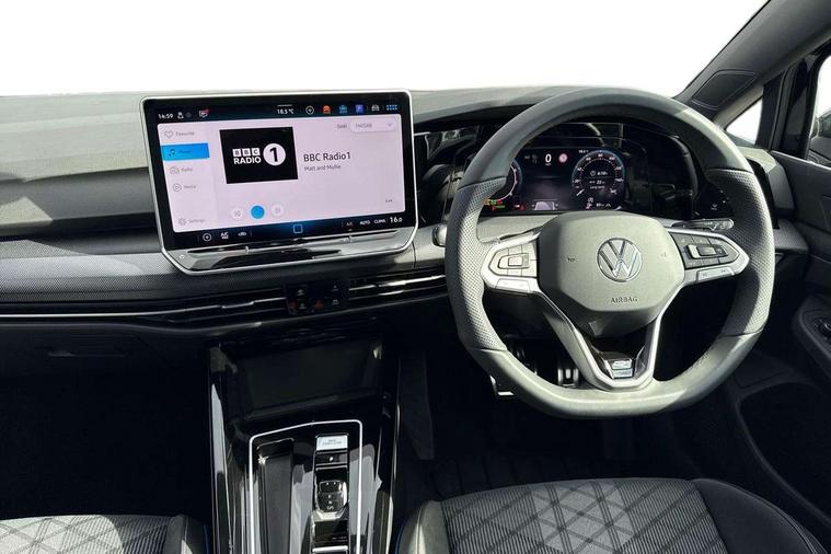 Activated carbon canister, Adaptive cruise control (ACC), Advanced driver attention and drowsiness monitor, Dynamic road sign display, Dynamic steering, E-Sim card for online connectivity, eCall emergency call system, Multi-color Digital cockpit pro, selection of different info profile possible, Multifunction front facing camera for distance control, Navigation system, Oncoming vehicle braking when turning including swerve support, Speed limiter, Speedo, rev counter, electronic odometer, trip, service interval display, exterior temperature and fuel gauge, Traffic jam assist, Voice enhancer and voice control, Warning signal and warning light for front and rear seatbelts not fastened, We connect plus preparation, We connect preparation, Wireless app connect, Hybrid propulsion system, Petrol Particulate Filter, Start-stop system with battery regeneration (recuperation - energy recovery during braking), XDS electronic differential lock for improved traction and handling, 2 USB C ports in front, 2 USB charging sockets on the centre console in the rear charging capacity upto 45W, Digital radio reception (DAB), Diversity antenna for FM reception, Gaming platform via car app, Infotainment system with 12.9" display, Mobile phone interface with inductive charging feature, 3rd brake light, Automatic headlamp activation with Coming home and Leaving home feature, Body colored bumpers in R-Line style, Body colour door handles, Exterior mirrors convex on the left and aspherical on the right, Front and rear electric windows, Heat insulating windshield made of laminated glass, LED separate daytime running light, Rear exhaust tailpipe, Rear fog light on one side and reversing lights on both sides, Rear side wing doors, Rear windscreen washer and wiper with interval delay, Remote electrically foldable door mirrors, puddle lights and reverse activated passenger's door mirror, Welcome light with surround lighting, 12V socket in front centre console, 12V socket in luggage compartment, 3 rear head restraints, 3 seat bench in 2nd row, Ambient lighting with 30 colour including LED light unit in front footwell with selectable light colour, Black roof lining, Brushed stainless steel pedals, Chrome plated radiator grille inserts, air vent surrounds and light switch surrounds, Door insert, side trim panel and arm support in leatherette, Front + rear black carpet mats, Front centre armrest, Front seat lumbar support adjuster, Integrated front head restraints, ISOFIX anchors for child seats on outer rear bench seats and on front passanger seat compatible for i-Size, Luggage compartment lighting, Manual height adjustable front passenger seat, Manually height adjustable driver seat, Plastic gear knob, Premium sports seats in front, Rear cupholder and loadthough, Sardegna cloth upholstery with front and outer rear seats Art Velour inner sides of bolsters, Single front passenger seat, Split folding backrest with centre armrest and unsplit rear seat bench, Sun visors with illuminated vanity mirrors, Titanium black instrument panel, 3 point height adj front seatbelts + pretensioners, 3 rear three point seatbelts, ABS, Autonomous emergency braking front assist with pedestrian and cyclist monitoring, Child locks on rear doors, Driver and front passenger airbag with front passenger airbag deactivation, Electronic parking brake with auto hold, ESC (Electronic Stability Control), Extended pedestrian protection measures, Hill start assist, Rear disc brakes, Two tone horn, Tyre pressure loss indicator, Volkswagen roadside assistance, Anti theft wheel bolts, Preparation for alcohol interlock, Decorative inserts carbon grey for dashboard and front door trim panels, Tool kit for tyre mobility set, Tyre mobility kit Includes 12V compressor and tyre sealant,
