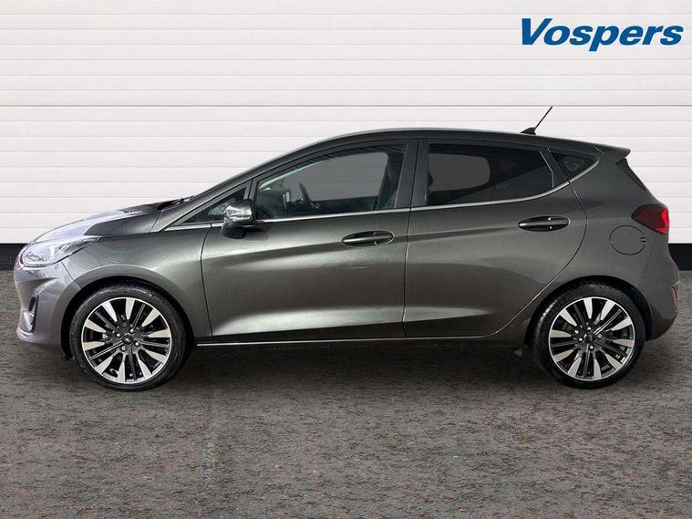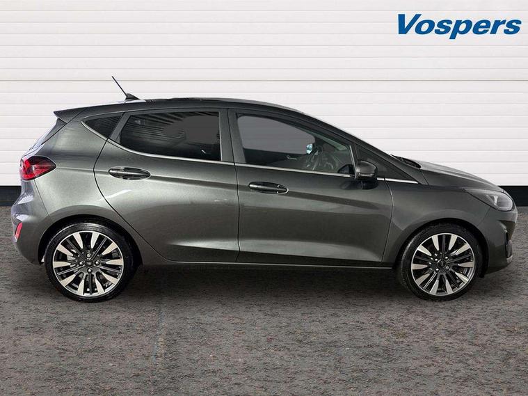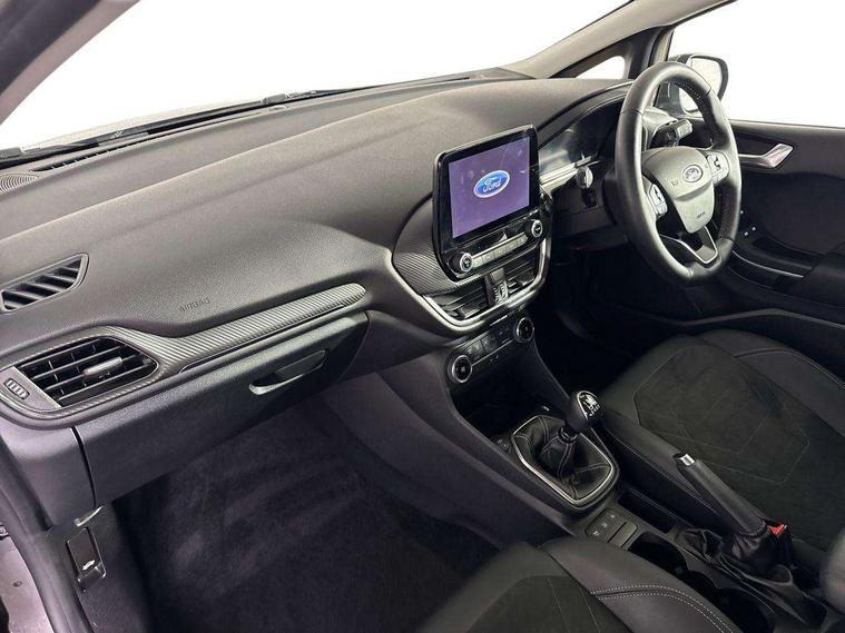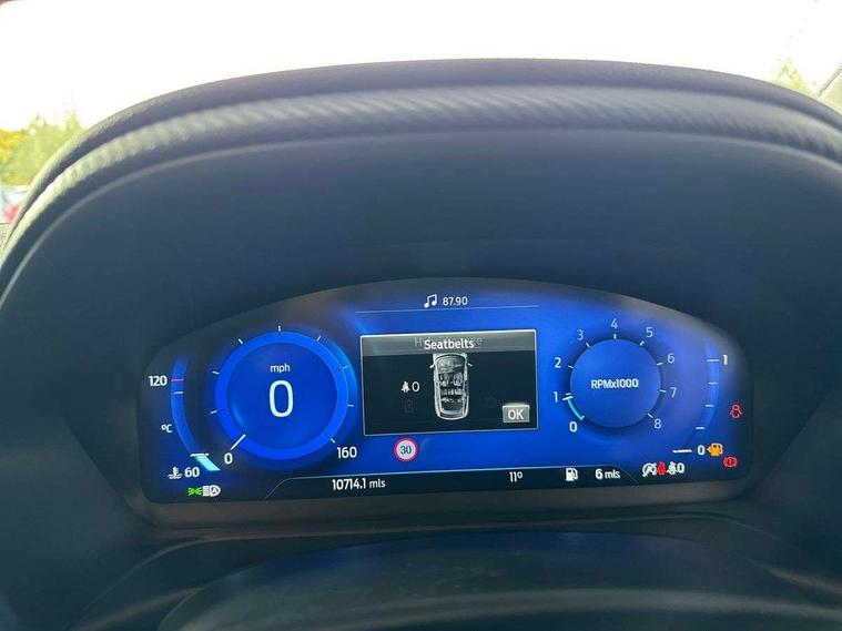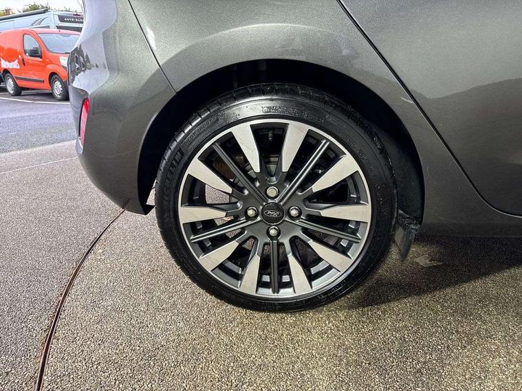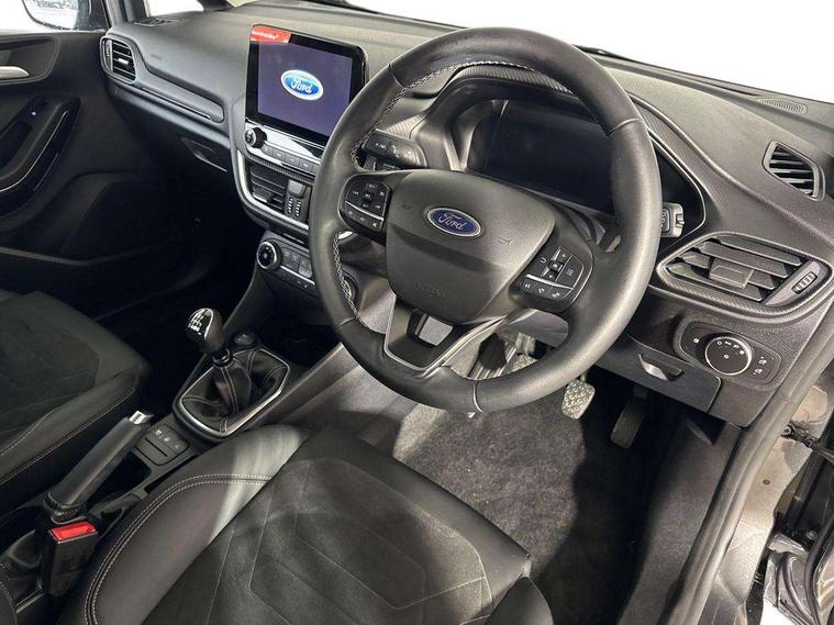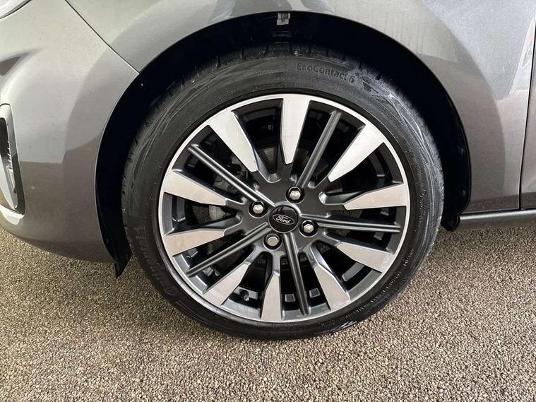 12.3" Full digital cluster, Driver alert system, Electric power steering, Ford easy fuel, Ford SYNC 3 Nav with DAB radio, 8" touch screen, voice control, emergency assist, Apple CarPlay/Android auto, 2x USB, 6 speaker, Ford pass connect, Rear parking distance sensors, Rear view camera, Selectable drive modes (Normal, Sport, Track), Speed sign recognition, Trip computer, Wrong way alert, Standard suspension, Auto high beam, Body colour bumpers, Body coloured electrically operated with side indicators, Electric front windows/one touch facility, Front titanium scuff plates, High gloss chrome surround with satin grille insert, LED Night signature to rear lights, LED third brake light, Quickclear heated windscreen, Rain sensing wipers and auto dimming rear view mirror, Rear privacy glass, Rear side wing doors, Rear wiper, 3 seat bench in 2nd row, 4 way manually adjustable passenger seat, Adjustable head restraints, Centre console with opening armrest, 2x cupholders, 12v and USB, Drivers and Passenger lumbar support, EATC - Electronic Auto Temperature control, Front floor mats in velour, Leather gaiter, LED ambient lighting (Ice blue), Manual 4-way driver seat adjust, Sensico partial premium leather upholstery with metal grey stitching, Sensico wrapped steering wheel, Single front passenger seat, NCAP Pack - Fiesta, Winter pack [GTBAB]- Fiesta, 3 point seatbelts on all rear seats, Electronic stability control with hill start assist, Manual child lock in rear doors, Tyre pressure monitoring system, Ford keyfree system with Keyless entry and keyless start, MyKey system, Remote central locking, Thatcham alarm with power door dead locks, 17" 10 spoke alloys with pearl grey machined finish,