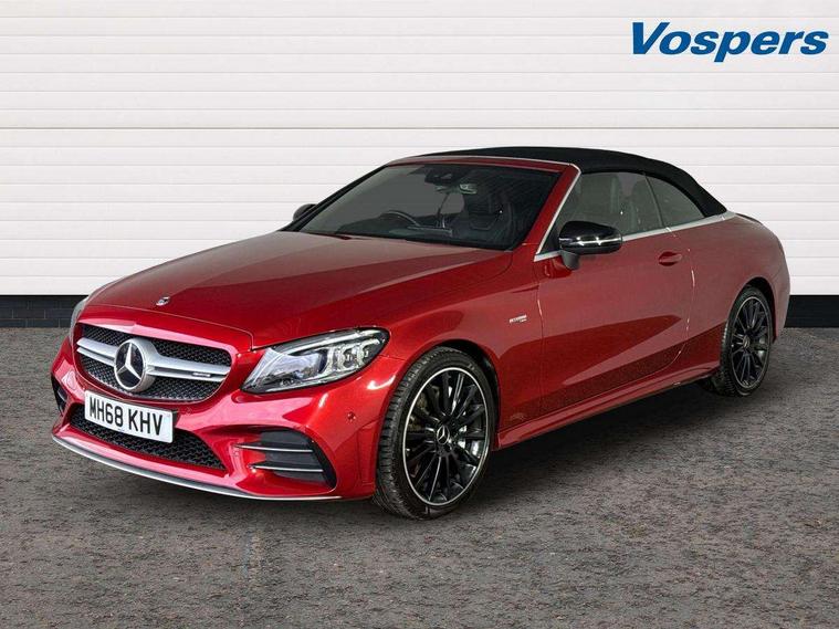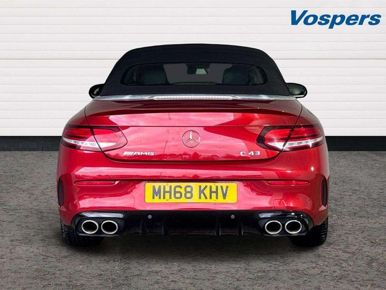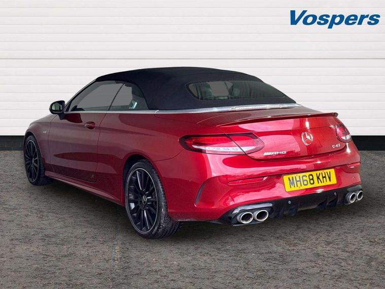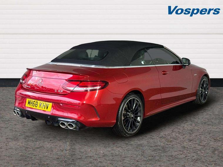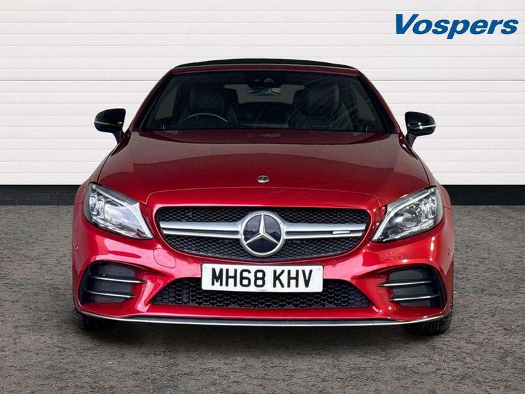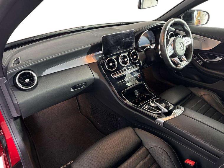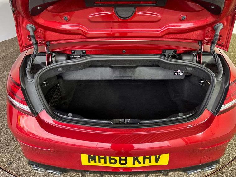 2 stage speed sensitive sport steering, Active park assist with parktronic system, Attention assist, Automatic boot separator, Bluetooth interface for hands free telephone, Collision prevention assist plus, Comand Online HDD Nav with media interface, radio/CD/DVD/MP3, 10.25 screen, linguatronic voice control, Cruise control with speedtronic variable speed limiter, DYNAMIC SELECT with a choice of driving modes (ECO, Comfort, Sport, Sport+ and Individual), Mercedes connect me with remote online, Multi function trip computer, Outside temperature gauge, Remote boot release, Reversing camera, Service indicator (ASSYST), Smartphone integration with Apple CarPlay and Android auto, Stop/start system, Wireless charging, AMG Ride Control sports suspension, Petrol Particulate Filter, 2 USB ports, Burmester surround sound system, DAB digital radio module, Mercedes Audio 20 radio/single CD, SD card slot, Steering wheel audio controls, Acoustic soft-top with enhanced climate and noise comfort, Adaptive brake lights, AMG front, rear apron and side skirts, AMG performance exhaust system, Auto dimming driver's door mirror, Auto dimming rear view mirror, Body coloured bumpers, Door sill panels with AMG lettering, Electric adjustable/heated/folding door mirrors, Electric windows one touch open/close, Green tinted glass, LED daytime running lights, LED Indicators, LED tail lights, LED third brake light, Multi beam LED headlights, Radiator grille with integral star and 2 louvres in matt iridium silver, Radio aerial in side window, Rain sensor windscreen wipers, Side windows surround in polished aluminium, V8 Bi-Turbo 4Matic badge on front wings, Wind deflector, 2 cupholders in front centre console, 2 rear head restraints, 3 spoke flat bottom multi-function sports leather steering wheel in black with topstitching in red, 40:20:40 split folding rear seats, Airscarf - neck level heating, Ambient lighting, AMG floormats, Artico man-made leather dashboard and beltline with red contrast stitching, Artico man-made leather upper dashboard and beltlines with contrast stitching, Auto dual-zone climate control system, Auto Mercedes-Benz child seat recognition sensor, Door courtesy lamps, Electrically adjustable front seats, Front centre armrest with storage compartment, Front footwell illumination, Heated front seats, Height adjustable front seats, Illuminated front/rear door handle recesses, Illuminated glovebox, Isofix rear child seat fastenings, LED reading lights, LED rear reading lights, Sports pedals with stainless steel surfaces and rubber studs, Steering wheel gearshift paddles, Sunvisors with illuminated vanity mirrors, Seat comfort pack - C Class, Stowage space pack - C Class, 2 rear seatbelts, 3 point automatic seatbelts, ABS, Active bonnet, Adaptive brake system, Brake calipers with AMG lettering + perforated brake discs, Crash sensor, Drivers knee airbag, Drivers pelvis airbag, Dual stage driver/passenger airbags, Electronic parking brake, Electronic stability control, Front and rear window airbags, Front seatbelt pretensioners, Front side airbags, Hill hold control, Hill start assist, Red seat belts, Sports braking system, Tyre pressure monitoring system, Warning triangle and first aid kit, Alarm system/interior protection/immobiliser, Automatic door locking, Chrome surround electric key, Remote central locking, Tow away protection, Artico man-made leather dashboard with contrast stitching,