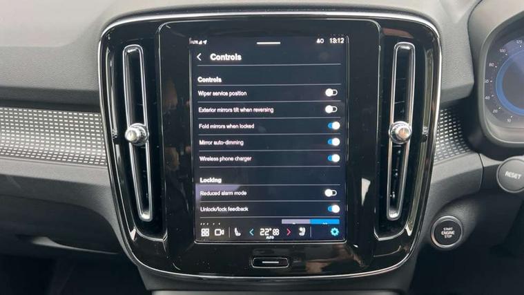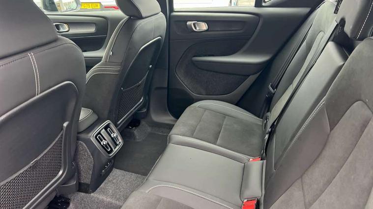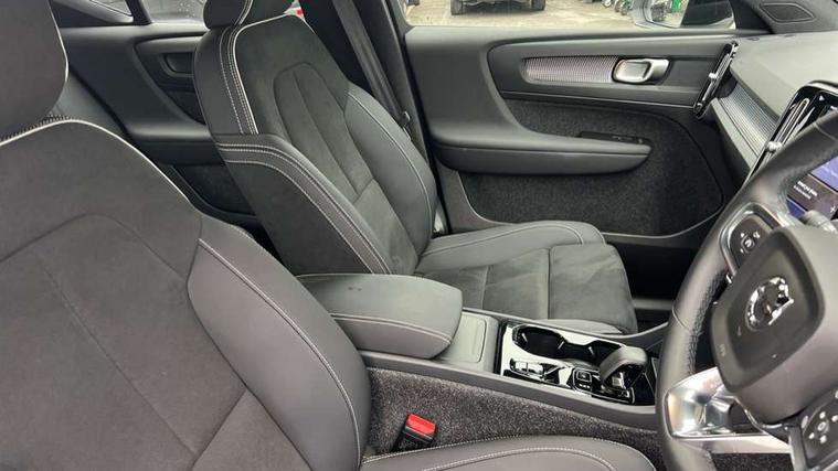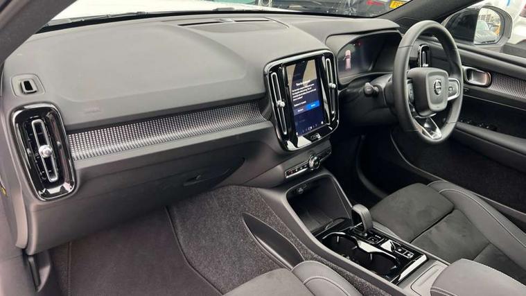 12.3" Progressive Driver Display, 9" centre console portrait touch screen, Adjustable steering wheel force, Android auto (Wired), Apple carplay (wired), Bluetooth handsfree system, Driver alert control, Driver assistance (pilot assist and adaptive cruise control), Driver awareness - Blind spot information system with steer assist, cross traffic alert with autobrake and rear collision warning and mitigation, E-call, Front park assist, Google automotive services - Enabled entertainment apps, navigation with google maps, voice recognition with google assistant, Hands free power tailgate, Intelligent speed assistance, Lane keeping aid, Oncoming Lane Mitigation, Rear park assist, Speed sensitive steering, Volvo cars services with app - Driving journal, emergency and breakdown call, engine remote start, remote door locking/unlocking and vehicle dashboard, Wireless/Inductive Mobile Phone Charging, Automatic transmission with start/stop and manual change functions, Dynamic chassis, DAB Digital radio, Steering wheel mounted remote controls, Adaptive brake lights with high level LED brake lights, Auto dimming feature for exterior door mirrors, Auto dimming interior mirror, Automatic headlamp levelling, Automatic LED Headlights + Active high beam incorporating daytime running lights, Front aluminium tread plates, Front and rear electric windows, High gloss black front and rear skid plate, High gloss black front bumper deco, High gloss black mesh front grille with high gloss black surround, High gloss black window trim, Home safe and approach lighting, Integrated roof rails in high gloss black, LED front fog lights, Puddle lights, Rain sensor with automatic windscreen wiper activation, Rear side wing doors, Rear wiper, Roof antenna, Roof spoiler, Visible VIN plate, 12V socket in front tunnel console and luggage compartment, 2-Zone electronic climate control with CleanZone air quality system and pollen filter, 3 seat bench in 2nd row, 3 Spoke tailored steering wheel with chrome trim, 60/40 versatile split folding rear seat, Centre console cupholders and storage, Charcoal headlining, Connect textile/microtech upholstery, Flexible load floor and grocery bag holder, Floor mats, Front cabin courtesy lights, Front door pocket, front cupholder, ambient front door, rear reading, rear courtesy, instrument panel and tailgate lighting, Front footwell illumination, Front headrests, Front reading lights, Front seat cushion extensions, Front side step illumination (under door), Glovebox bag hook, Heated front seats, Height adjustable passenger seat, Height/reach adjustable steering column, High gloss centre tunnel deco, Illuminated glovebox, Illuminated luggage compartment, Illuminated vanity mirrors + ticket holder, Integrated waste bin, Isofix attachments on outer rear seats, Load cover, Load protection net, Multi directional lumbar support for driver and passenger seat, Power driver seat with memory + exterior mirrors memory, Rear armrest with cupholders, Rear headrests, Single front passenger seat, Underfloor cargo storage, Climate pack without heated front seats - XC40, 3x3 point rear seatbelts, City safety with steering support with Pedestrian + cyclist + front collision warning with full auto brake and rear auto brake, Driver and passenger airbags, Drivers knee airbag, Electronic parking brake with auto hold, First aid kit, Front and outer rear seatbelt reminder and pretensioners, Front seats SIPS airbags, Hill descent control, Hill start assist, Inflatable curtain, Passenger airbag cut-off device, Power child locks on rear doors, Road sign information display, Run off Road Protection, SIPS (Side Impact Protection System), Slippery road and hazard light alert, Stability and Traction Control with Spin control, Engine Drag Control and Corner Traction Control, Tyre pressure monitoring system, Vehicle deceleration control with Anti-lock Brake System, Electronic Brake Distribution and Emergency Brake Assist, Warning triangle, WHIPS whiplash protection system - front, 2 x Key integrated remote control central locking including with deadlocking system and auto open/close windows, Anti-theft alarm including immobiliser/volume sensor + level sensor, Keyless drive includes keyless entry and keyless start, Locking wheel nuts,