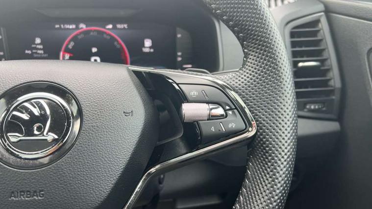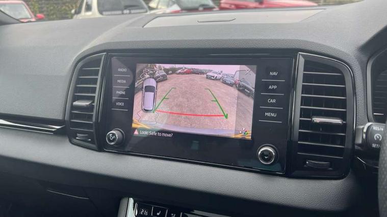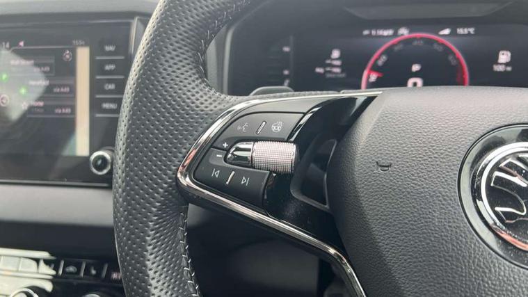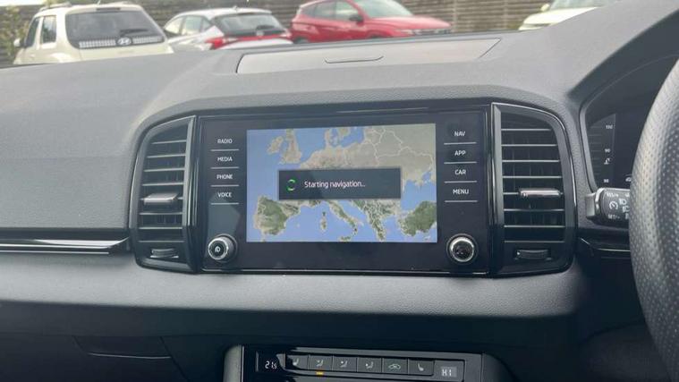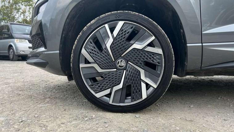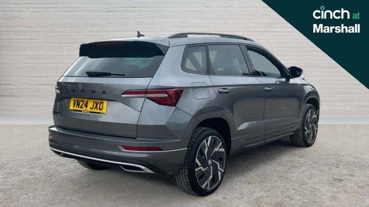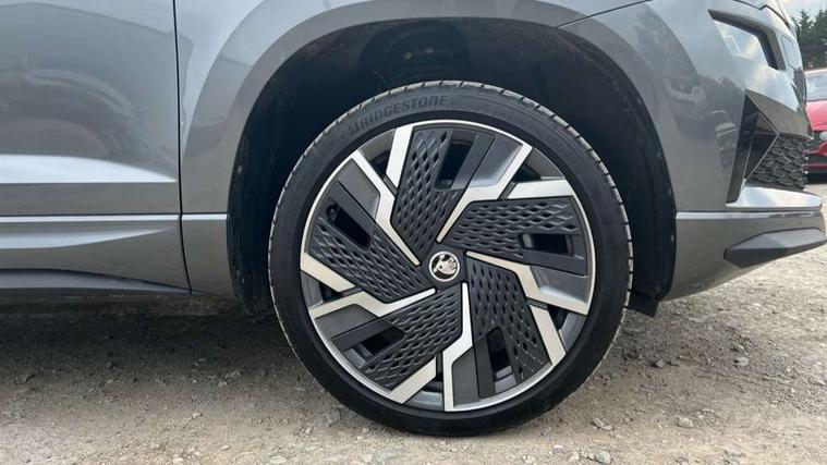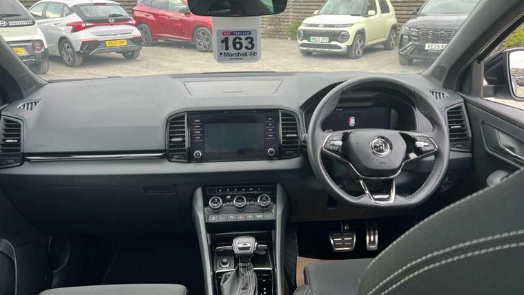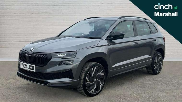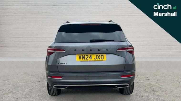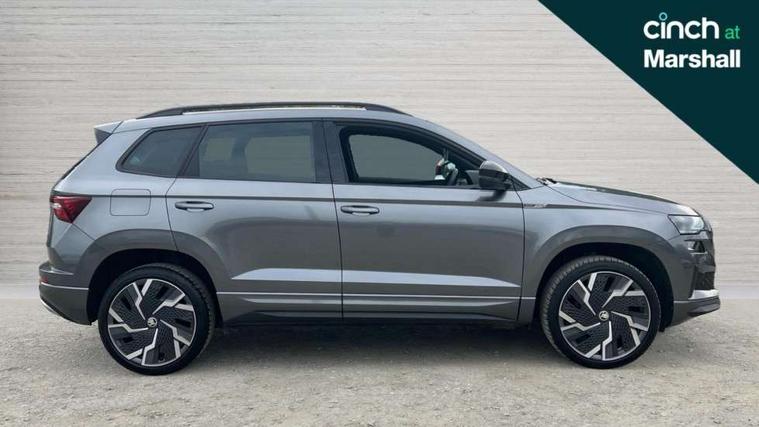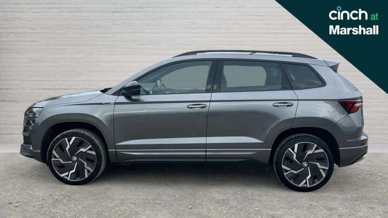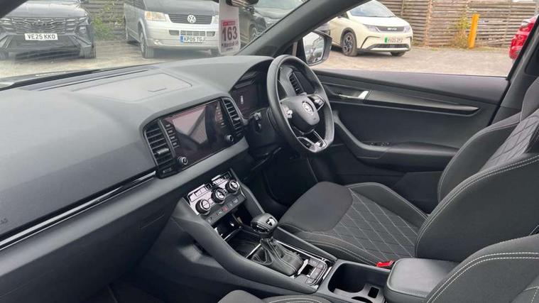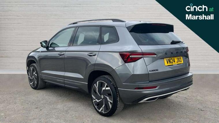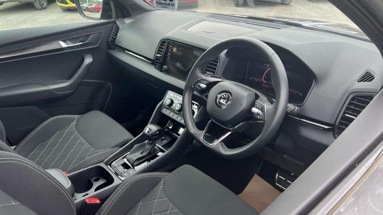 8" Digital display, Advanced driver attention and drowsiness monitor, Emergency services call system, Outside temperature gauge, Sensor for driver assistance systems, Service interval indicator, SmartLink wireless for Apple and wired for Android, Start/stop system with regenerative braking, USB C Port x 2 in front centre console, Virtual Cockpit - 10.25" digital display, Virtual pedal with electrically operated boot door, Wireless smartphone charging, Canton sound system, DAB radio with Bluetooth, USB connection, Acoustic glass, Aero front windscreen wipers with intermittent function, Auto dimming rear view mirror with light and rain sensors, Black door mirrors, Black electric window control buttons, Black radiator grille, Black roof rails, Body colour door handles, Electric front and rear windows with child proof lock, Front door steps with SportLine logo, Heated rear windscreen, LED 3rd brake light, LED daytime running lights, LED rear lights with high functionality welcome effect and dynamic indicators, Light assistant (coming/leaving home/tunnel light), Panoramic sliding sunroof, Plastic scuff plates in door apertures, Privacy glass, Protective door side sills in body colour, Rear diffuser, Rear side wing doors, Rear spoiler, Rear window wiper with washer system and intermittent control, Safety reflectors on front doors, Skoda lettering on tailgate in black, Sportline badge on front fender, Sportline decorative inserts with badging, Sports front and rear bumpers, 1.5 litre bottle holders in driver and front passenger door panels, 12V socket in boot, 12v socket in front centre armrest with storage compartment and rear air vents, 2 x Tablet holder, 3 rear height adjustable headrests, 3 seat bench in 2nd row, 3 spoke leather sports multifunction steering wheel and silver stitching with gear shift paddles, 4 foldable roof handles with rear coat hooks, Black floor carpet, Chrome inner door handles, Double sided boot floor, Foldable hooks in the boot, Front head restraints, Height adjustable front three point seats belts with tensioners, Height/reach adjust steering wheel, Ice scraper, Illuminated glovebox, Illuminated luggage compartment, Isofix child seat preparation for front passenger seat, Isofix child seat preparation outer rear, Manual lumbar support for front seats, Pen holder, Pollen filter, Rear boot cover, Rear reading lights, Rear seats fixed folding and divided 60:40, Rubbish bin door, Safety vest holder, Single front passenger seat, Storage box in upper central dashboard closed, Sunvisors with illuminated vanity mirrors, Textile floor mats, Ticket holder, Titan black interior ceiling, Umbrella under passenger seat, Under passenger seat storage compartment, Welcome animation with sportline logo, Light Pack - Karoq, Non Smokers pack, Automatic door unlocking in case of crash, Automatic fuel cut off in case of crash, Driver airbag, Electronic parking brake with auto hold function, Emergency rear braking signal, ESC including ABS, MSR, ASR, EDS, HBA, DSR, RBS, MKB and traction control, Front side airbags, Head airbags, Hill hold control, Knee airbags, Passenger airbag with switch-off function, Pedestrian monitor, Seatbelt reminder signalisation and pretensioner for all seats, Three point seatbelts rear, Two tone horn, Tyre pressure monitor, Alarm with interior monitoring, back up horn and tilt sensor with safe function, Electronic engine immobiliser, Keyless entry and start/stop, Remote central locking with 2 remote folding keys, Black air vent surround, Black centre console, carbon door decor, Satin black dashboard, Satin black door trim, 19" Sagittarius anthracite alloy wheels, Anti-theft wheel bolts protection, Breakdown and tool kit,