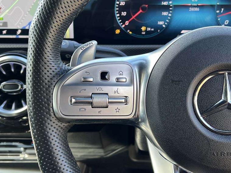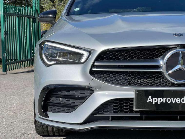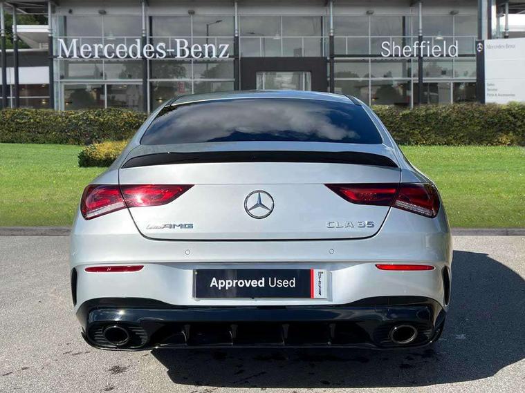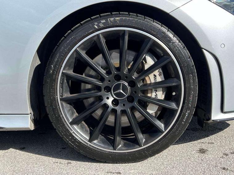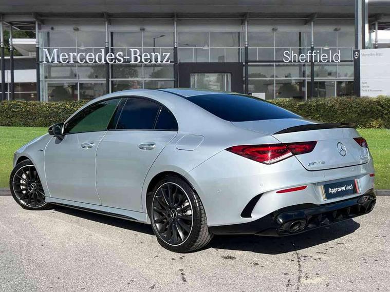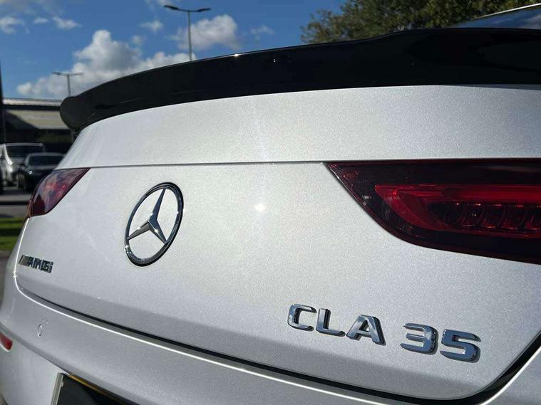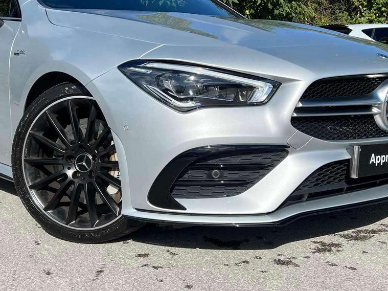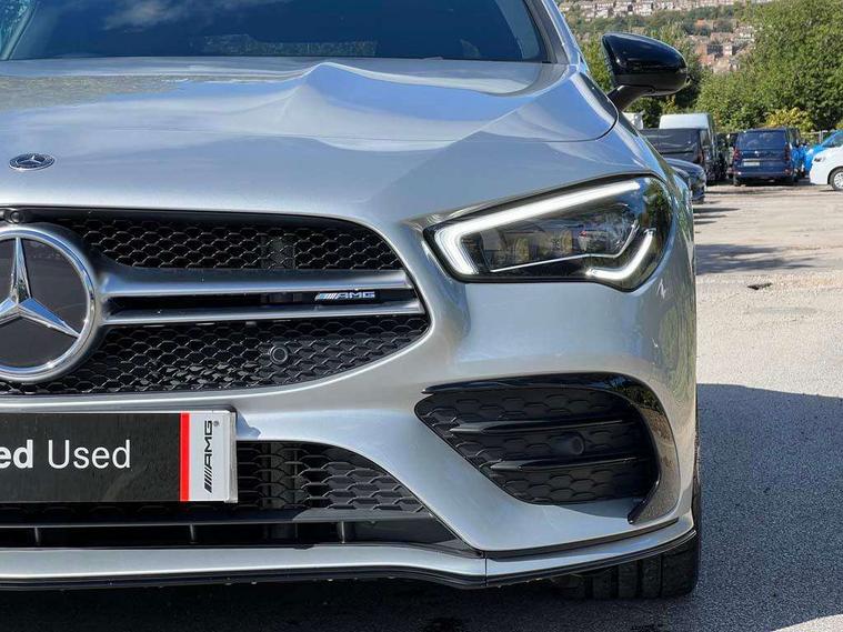 10.25 inch Instrument display with digital cockpit, 10.25 inch touchscreen central media display, Attention assist - Monitors steering behaviour and long journey fatigue, Bluetooth connection, Car wash mode, Digital instrument cluster with three AMG display styles and AMG menu, DYNAMIC SELECT with driving programs (Slippery, Comfort, Sport, Sport+ and Individual), ECO start/stop function, Fluid level warning indicator for fuel, oil, coolant and washer fluid, Hard-disk navigation, Hey Mercedes Voice activation, Lamp failure indicator, Mercedes me connect including emergency call system, accident recovery, breakdown and maintenance management, Mercedes me remote services, Outside temperature gauge, Owners manual and service booklet in English, Pre-installation of private car share, Preinstallation for Mercedes Benz link, Radio aerial integrated into front and rear windshields, Service indicator (ASSYST), Smartphone integration with Apple CarPlay and Android auto, Traffic sign assist, Trip computer in multifunction display with current consumption indicator, 7G-DCT 7 speed automatic transmission, Rear axle multi-link, Suspension with adaptive damping system, DAB digital radio tuner, MBUX multimedia system with DAB digital radio and touchpad including satellite navigation, Mercedes Benz sound system (100 W) with 6 speakers, USB (type C) ports (2) in stowage compartment and 1 in front of centre console, Adaptive brake lights, AMG body styling with AMG front apron and rear apron and visible exhaust tailpipe in chrome trim elements, AMG bodystyling side skirts, AMG Front apron with flics as air deflector elements on the outer air intakes, AMG radiator grille with twin blade lamella and AMG Lettering, AMG Rear apron with specific diffuser look with four vertical fins and two round chrome plated tailpipe trim elements with a diameter of 90 mm, AMG Sports exhaust system with two round tailpipes measuring 90 mm in diameter attached in rear apron, AMG lettering plus ribbing on the inside of the, Automatically controlled exhaust flap, Beltline strips in High gloss Black, Body colour bumpers, Body colour door handles, Chrome weather strip, Electric windows, Electrically adjustable and heated door mirrors with integrated LED indicators, Front splitter and trim elements on the louvres in the outer air inlets in silver chrome, Front wings with TURBO 4MATIC lettering, Headlamp assist automatic headlamp activation, Heated glass rear windscreen + timer control, High level LED third brake light, Integrated LED daytime running lights, Interior mirror with black reading lamps and frameless, LED tail lamp, Multibeam LED headlamps with adaptive highbeam assist plus, Privacy glass with dark tinting on rear side windows and rear window, Rain sensing windscreen wipers with two sensitivity settings, Rear fog lamp, Window line trim strip in high gloss black, 40:20:40 split folding rear seat backrests, Air conditioning - Two zone thermotronic luxury automatic climate control with display, Air vents with surround in silver chrome, AMG Performance steering wheel in nappa leather, Automatic child seat recognition sensor, Black roof lining, Brushed stainless steel sports pedals with rubber studs, Electrically adjustable front memory seats including lumbar support, Floor mats with stitched AMG lettering, Front centre armrest with stowage, Heated front seats, Illuminated front door sills with changeable cover, Illuminated glove compartment stowage, Interior lighting - 64 colour Ambient lighting, Luggage net on driver/front passenger seat backrest, Manually height and reach adjustable steering column, Rear armrest with two integral cup holders for drinks, Rear head restraints, Silver coloured aluminium gear shift paddles on steering wheel, Sport seats with fixed head restraints, Stowage compartment in centre console with retractable cover, Sunvisors with illuminated vanity mirrors, Touchpad on center console, Twin front cupholders, Two outer rear seat isofix and top tether child seat fixing points, Aerodynamics pack - CLA, AMG Night package - CLA 35/45, Light and sight pack - CLA, Mirror pack - CLA, Parking package - CLA, Seat comfort pack - CLA, Active bonnet pedestrain safety measure which detects an impact and raises bonnet by 65mm, Adaptive brake assist with hold function and hill start assist, Anti-lock braking system (ABS), Black seat belts, Bonnet with power domes, Brake pad wear warning indicator, Childproof locks manually operated for rear doors and electrically operated for rear power windows, Crash responsive emergency lighting, Driver and front passenger head and sidebags, Driver and front passenger windowbags, Drivers knee airbag, Dual stage driver and front passenger airbags, Electric parking brake, Electronic stability programme with acceleration skid control, ESP curve dynamic assist, Front and rear seatbelt reminder, Front brake calipers with AMG lettering, Front passenger seat occupancy sensor, Perforated front brake discs, Three point rear seat belts, Tyre pressure monitoring system, Warning triangle and first aid kit, Remote central locking and crash sensor with emergency opening function, Urban guard vehicle protection system with immobiliser and interior protection, Light aluminium with longitudinal grain interior trim, 19" AMG multi-spoke matt black painted light alloy wheels with high sheen finish, Summer tyres, Tirefit tyre sealant kit, Wheel arches wider for AMG wheels,
