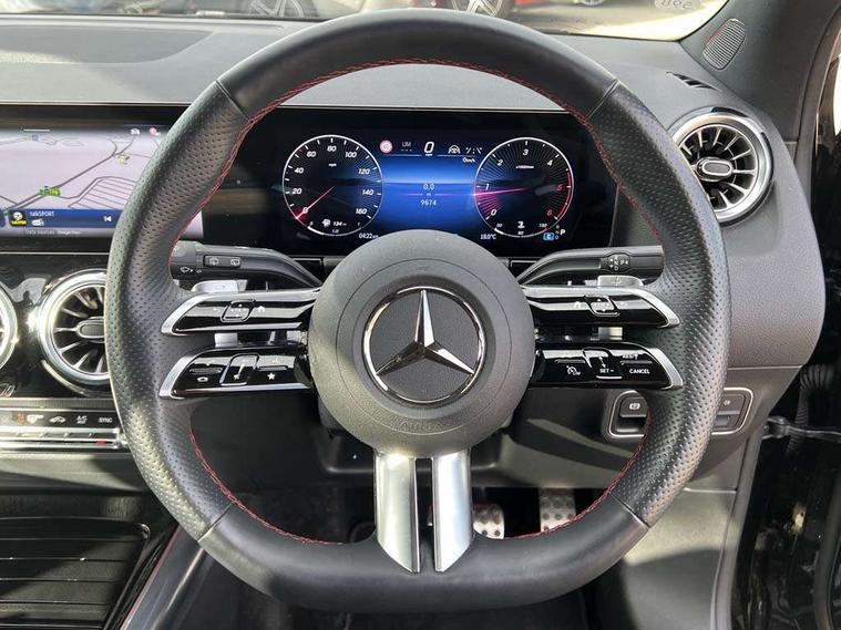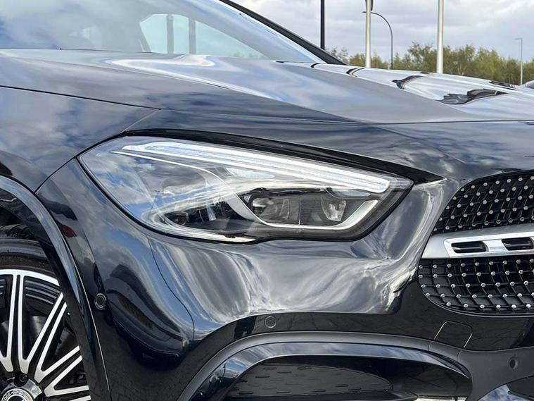 10.25 inch touchscreen central media display, 10.25" Digital instrument cluster display screen, Attention assist, Direct steering, DYNAMIC SELECT with a choice of driving modes (ECO, Comfort, Sport and Individual), Easy-pack tailgate, ECO start/stop function, Fingerprint scanner, Fluid level warning indicator for fuel, oil, coolant and washer fluid, Full color head up display, Hard-disk navigation, Hey Mercedes Voice activation, Lamp failure indicator, Lane keeping assist (LKA), Mercedes me connect including emergency call system, accident recovery, breakdown and maintenance management, Mercedes me remote services, Multi function trip computer, Outside temperature gauge, Owners manual and service booklet in English, Pre-installation of private car share, Radio aerial integrated into front and rear windshields, Service indicator (ASSYST), Smartphone integration with Apple CarPlay and Android auto, Traffic sign assist, Wireless charging, Lowered comfort suspension, Rear axle multi-link, Suspension with adaptive damping system, Bluetooth connectivity including audio streaming, DAB Digital radio, MBUX multimedia system, Mercedes-Benz (225w) sound system with 10 speakers, Adaptive brake lights, Adaptive full LED rear lights with automatic adjustment of light intensity to the surroundings, Aluminium roof rails, AMG front apron with front splitter in the colour of the vehicle with chrome trim element, AMG rear apron with visible tailpipe trim and chrome trim element, AMG specific/dual flow exhaust pipes in chrome (non-functional), Automatic headlamp activation, Beltline trim and window line trim strip in high gloss black, Black grained side sill trim with chrome inlay, Body coloured door handles with chrome insert for keyless entry, Car wash function, Cornering light function with activated high beam, Dark privacy glass from B-pillar backwards, Electric front windows, Electric rear windows, Electrically adjustable and heated door mirrors with integrated LED indicators, Exhaust system with 2 Visible tailpipe trim elements and rear apron with trim in chrome, Heat insulating dark tinted glass, Heated glass rear windscreen + timer control, Illuminated door sill panels with Mercedes-Benz lettering, Interior mirror with black reading lamps and frameless, LED daytime running lights, LED third brake light, Multibeam LED headlamps with adaptive highbeam assist plus, Panoramic sunroof, Rain sensor windscreen wipers, Rear fog lights, Rear side wing doors, Rear wiper, Wheel arch liners in the colour of the vehicle, 3 seat bench in 2nd row, 3 spoke flat bottom multifunction nappa leather steering wheel, 40:20:40 split folding rear seat backrests, Adjustable head restraints, Air conditioning - air vents with silver chrome surround, Air conditioning - Two zone thermotronic luxury automatic climate control with display, AMG floor mats, Auto Mercedes-Benz child seat recognition sensor, Black roof lining, Courtesy light in boot, Electrically adjustable front memory seats with four way lumbar support, Fluorescent jacket, Front centre armrest with stowage, Galvanished gear shift paddles on steering wheel in silver chrome, Heated front seats, Illuminated glovebox, Interior lighting - 64 colour Ambient lighting, Luggage net on driver/front passenger seat backrest, Manually height and reach adjustable steering column, Single front passenger seat, Sports pedals in brushed stainless steel with black rubber studs, Sports seats, Sports steering wheel, Stowage compartment in centre console, Stowage compartment with retractable cover, Sunvisors with illuminated vanity mirrors, Twin front cup holders, Two outer rear seat isofix and top tether child seat fixing points, Comfort seat pack - GLA Class, Driving assistance package - GLA, Interior lighting with light and sight pack - GLA, Keyless go comfort package - GLA, Mirror pack - GLA Class, Night package - GLA, Off road engineering pack - GLA, Parking package with 360-degree camera - GLA, USB package plus - GLA, 3 rear 3 point seatbelts, ABS with Brake Assist, Active bonnet pedestrain safety measure which detects an impact and raises bonnet by 65mm, Active brake assist includes forward collision warning system with autonomous braking, Adaptive brake assist with hold function and hill start assist, Black seatbelts, Bonnet with power domes, Brake pad wear warning indicator, Braking system with larger brake discs on the front axle, Childproof locks manually operated for rear doors and electrically operated for rear power windows, Crash responsive emergency lighting, Driver and passenger head and side airbags, Drivers knee airbag, Dual stage driver/passenger airbags, Electronic parking brake, ESP curve dynamic assist, ESP with ASR, Exit warning, Front and rear seatbelt reminder, Front brake callipers with Mercedes Benz logo lettering on front, Front brake discs internally ventilated and perforated, Front passenger seat occupancy sensor, Sports braking system, Tyre pressure monitoring system, Warning triangle and first aid kit, Window airbags, Alarm system with immobiliser and interior protection -Thatcham category 1, Guard 360 degree vehicle protection, Keyless Go starting function, Remote central locking and crash sensor with emergency opening function, Light longitudinal grain aluminium trim, 20" AMG multi spoke light alloy wheels aerodynamically optimised and painted in black with a high-sheen rim flangle RVT, Summer tyres, Tirefit tyre sealant kit,