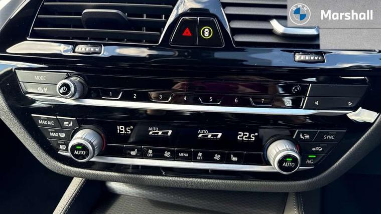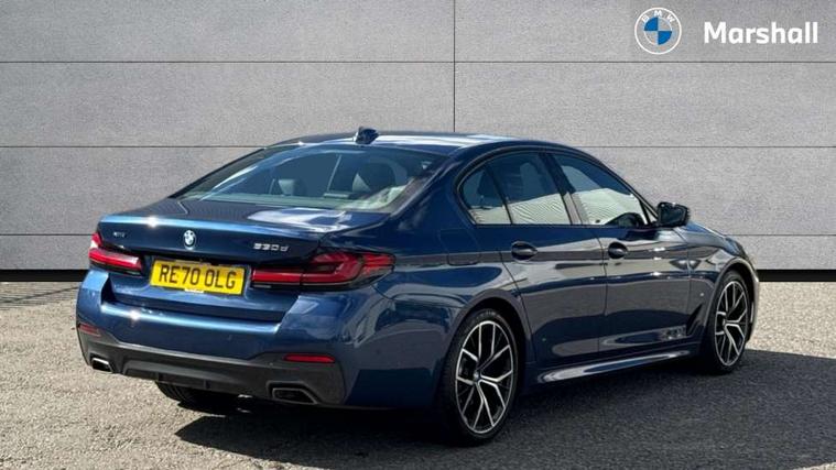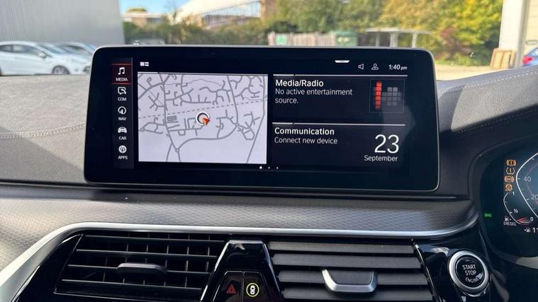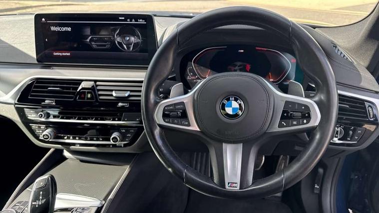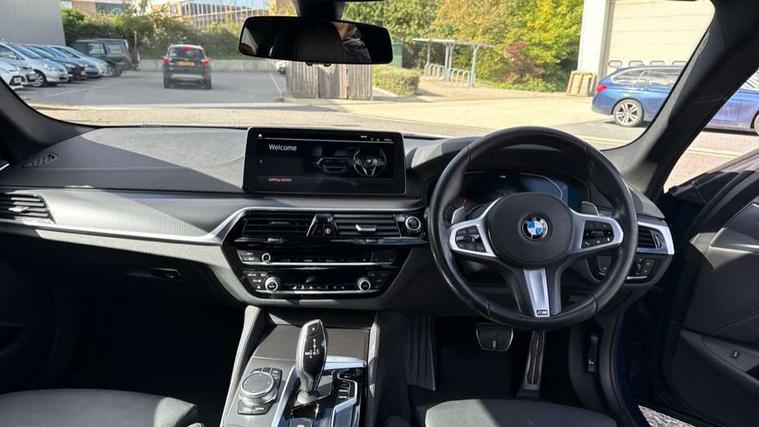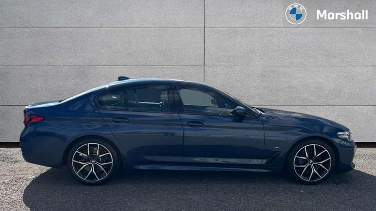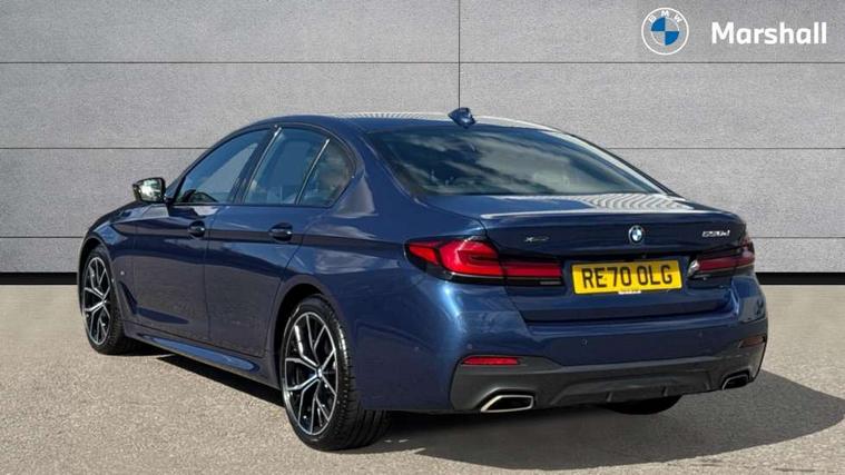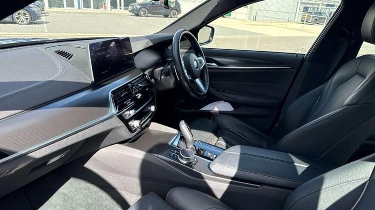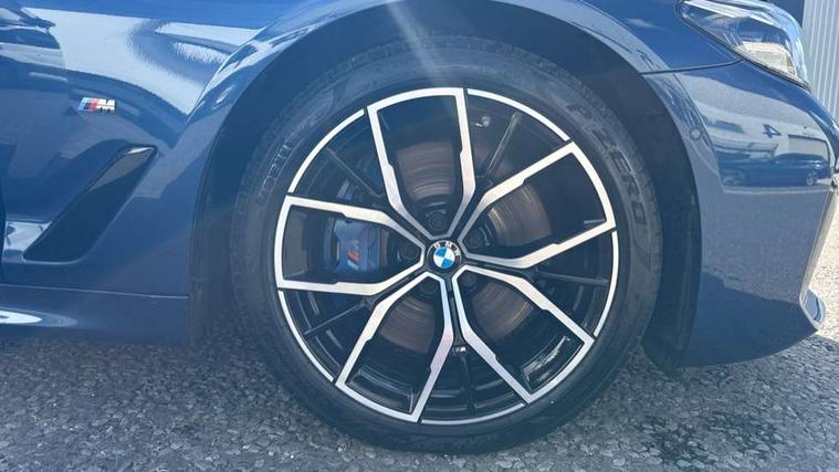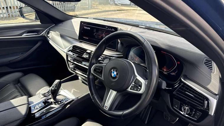 32GB hard disc drive (HDD) memory, Active Guard, BMW ConnectedDrive online services, BMW Live Cockpit Professional sat nav system with 12.3" instrument display and high resolution control display, BMW Teleservices, Brake pad wear indicator, Cruise control with brake assist, Driving experience switch, Electric Power Steering (EPS) with Servotronic, iDrive touch controller with shortcut buttons, Intelligent emergency call, Multifunctional instrument panel, Oil sensor for level and grade, On board computer inc. average speed, fuel consumption, liquid crystal Info display, journey computer, outside temperature display, personal profile, On-board diagnosis - OBD, Powered by Operating System 7.0, Service interval indicator, Speed limiting function, Stop/start button, 48V Mild hybrid technology, Diesel particulate filter, Drive performance control with ECO PRO comfort + sport mode, Engine cover with twin turbo designation, M sport suspension, Steptronic sport transmission with gearshift paddle switches on steering wheel, DAB Digital radio, Favourite buttons, Acoustic glazing, All round anti-corrosion system, Automatically dimming rear view mirror, BMW Individual high gloss shadow line includes exterior mirror frame, window frame surround, B pillar finish, air breather in high gloss black, Body colour door handles, Body coloured bumpers, Door handle illumination, Dynamic brake lights with LED technology, Electric front and rear windows with fingertip open/close + anti-trap facility and comfort closing function, Electrically adjustable and heated exterior mirrors includes integrated direction indicators and automatic parking function, Follow me home headlight function, Heated windscreen washer jets, High gloss black active air stream kidney grille, Interior rear view electrochromatic mirror with automatic anti dazzle function, LED daytime running lights, LED third brake light, M designation on front side panels, left and right in chrome, Rain sensor with automatic headlight activation, Trapezoidal visible exhaust tailpipes, xDrive designation on tailgate, 12V power socket in front and rear, Armrest - front and rear integrated door trim, centre console includes storage compartment, rear centre includes 2 cupholders, Child seat ISOFIX attachment with rear outer seats includes top tether, Cup holders (2 front and 2 rear), Front and rear footwell lights, Front reading lights, Height and length adjustable steering column and activation via lateral lever on the steering column, Illuminated M door sill finishers, Lockable glove compartment with light, M specific pedals, M specific velour floor mats, Multifunction controls for leather steering wheel, Rear headrests, Three spoke sport M leather steering wheel, Ambient lighting pack - 5 Series, Connected package professional - 5 Series, Expanded exterior mirror pack - 5 Series, M Aerodynamic pack - 5 Series, 3x3 point rear seatbelts, Airbags - driver/front passenger, rear and side, first and second row seats head airbags, front passenger seat airbag deactivation + knee airbag, Anti-lock braking system (ABS), Automatic Stability Control (ASC), Brake assist function, Brake energy regeneration, Cornering brake control (CBC), Crash sensor activating central locking release, hazard warning lights, fuel cut off and interior lighting, Deformation zones - front and rear with door reinforcements and bumpers up to 2.5 mph, DSC - Dynamic Stability Control, Dynamic brake control, Dynamic Traction Control - DTC, Electromechanical parking brake with automatic drive away release and auto hold function, Electronic brake force distribution, Engine drag torque control, Front and rear brake discs with interior ventilation, Front head restraints with anti-whiplash, Hill start assist, M Sport brakes in high gloss blue painted brake callipers with M designation, Mechanical child proof lock on rear doors, Passive protection for pedestrians, Side impact protection, Three point seat belts for all four seats, Two tone horn, Tyre pressure indicator, Warning triangle and first aid kit, Alarm system (Thatcham 1) with remote control and electronic engine immobiliser, Locking wheel bolts,