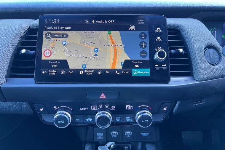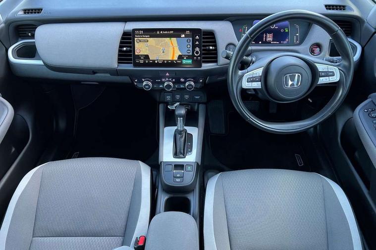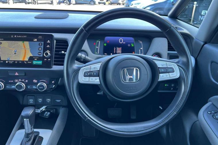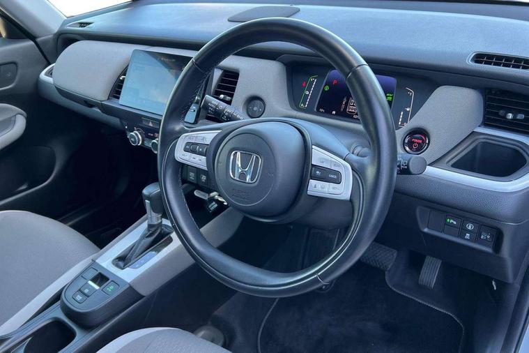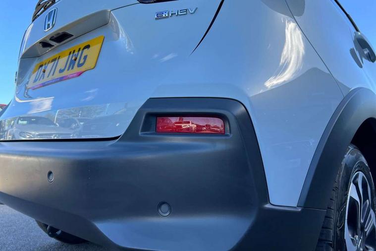 Adaptive cruise control, Adjustable speed limiter, Agile handling assist, Bluetooth hands free telephone connection, Econ mode, Electric power steering wheel with variable gear ratio steering, Emergency stop signalling system, Forward collision warning, Front and rear parking sensors, Honda CONNECT with HERE Navigation + 9" touchscreen, AM/FM/DAB/Apple Carplay and android auto, Idle stop, Intelligent speed limiter, Lane departure warning system, Lane keep assist system, Low speed following, Multi-information display, Rear view camera, Road departure mitigation, Traffic sign recognition, Vehicle stability assist, 'Shark fin' mobile antenna, 2 USB sockets in rear, 2x USB Front socket (1 data & 1 charge), Premium audio with 8 speakers, front tweeter, centre speaker, Remote audio controls on steering wheel, Subwoofer, Aspheric door mirrors, Auto wipers, Automatic headlights with on/off timer, Coming/leaving home function, Body colour door handles, eHEV emblem, Electric adjustable door mirrors, Electrically folding door mirrors, Exclusive styling includes Front and rear bumper, Front fog garnish, Black fender, side sill garnish, Front and rear electric windows, Heated door mirrors, High beam assist, LED daytime running lights, LED front fog lights, LED Headlights, LED rear lights, Privacy glass, Roof rails, Silver door mirrors, Single exhaust tailpipe, 60/40 split rear bench seat, Cargo net hooks, Climate control air conditioning, Driver and front passenger seat armrests, Driver and passenger front seat pockets, Driver's seat height adjustment, Fabric/Water repellent upholstery, Front accessory power socket, Front head restraints, Front map lights, Front/rear courtesy lights, Heated front seats, Isofix child seat restraint mechanism, Isofix points, Leather gearshift knob, Leather steering wheel, Magic seat flexibility system, Paddle shift controls, Plating interior door handles, Rear head restraints, Rear parcel shelf, Sunvisors with vanity mirrors, Tilt/telescopic adjustable steering wheel, Tonneau cover, Trunk light, 3x3 point rear seatbelts, Anti-lock braking system (ABS), Brake assist function, Brake hold function, Collision mitigation braking system, Deflation warning system, Driver knee airbag, Driver SRS airbag (single stage inflation), Driver/Front Passenger airbags, Electric parking brake, Front and rear side curtain airbag, Front side airbags, Hill start assist, Passenger SRS airbag cut-off device, Rear side airbags, Whiplash lessening front headrests, Front seat belt with emergency locking retractor, Honda super locks, Immobiliser, Mirrors and windows key fob operation, Remote central locking with 2 remote folding keys, Security alarm, Smart entry + Smart start, Soft pad mesh interior panels, 16" AL Crosstar alloy wheels in mat berlina black, Tyre repair kit,