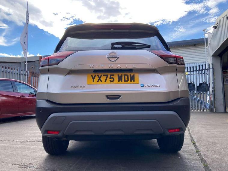 Android auto/Apple CarPlay (Wired), Blind spot warning, Drive assist custom mode, Drive modes (sport, normal, eco, snow, off-road), Driver drowsiness and attention warning, e-Pedal step, Electric speed sensitive power steering, Emergency and breakdown call, Event data recorder, Front and rear parking sensors, Full Digital 12.3" TFT Digital Combimeter, Idle stop/start system, Intelligent driver alert system, Intelligent forward collision warning, Intelligent lane departure warning, Intelligent lane intervention, Intelligent lane keep assist, Maximum speed limiter, Moving object detection, Nissan connect 8" touchscreen infotainment system, Push button starter, Rear cross traffic alert, Rear view camera, Reversing detection, Traffic sign recognition with legal speed adjustment, Trip computer, Wireless charging pad, 6 speakers, AM/FM audio system with DAB, Bluetooth audio streaming, Front USB connections (Type-A and Type-C), Rear USB charging only ports 2 Type-C, Auto dimming rear view mirror, Auto rear wiper when reversing, Body colour mirror caps, Body coloured door handles, Bodyside mouldings, Chrome side window finisher, e-4ORCE badging, e-POWER badging, Electric auto folding door mirrors, Electrically adjustable and heated door mirrors, Follow me home headlights, High beam assist, Intelligent auto headlights, LED 3rd brake light, LED daytime running lights, LED Headlights, LED rear lights, One touch front and rear electric windows with remote opening and closing, Partially body coloured bumpers, Rain sensing wipers, Rear reversing light (bulb lighting), Rear roof spoiler, Rear side wing doors, Rear styling plate, Shark fin antenna, Splash free wipers, Three blink turn signal, 12v power socket in dashboard and luggage, 3 bench rear seats in 2nd row, 3 rear headrests, 60/40 split folding rear seat bench, Butteryfly console, Chrome interior door handles, Cloth monoform upholstery, Driver and front passenger sunvisors with illuminated vanity mirrors, Driver seat back pocket, Dual zone automatic climate control with pollen filter, Front centre console and armrest, Front cupholders, Front door with bottle holders, Height adjustable driver's seat, Height adjustable front headrests, Height adjustable passenger seat, Leather shift knob, Leather steering wheel, Luggage space lighting, Multifunction steering wheel, Passenger seat back pocket, Rear armrest with 2 cupholders, Rear door bottle holders, Single front passenger seat, Tilt/telescopic adjustable steering wheel, Two rear isofix child seat anchorage points with top tether, 3x3 point rear seatbelt pretensioners + load limiters, ABS with EBD and brake assist, Active brake limited slip, Auto hold function, Child locks on rear doors, Curtain and front side, far side airbags, Driver and passenger airbags, Driver, passenger and 2nd row rear seat belt reminder, Electronic parking brake, Front seatbelt pretensioners + load limiters, Height adjustable front seatbelts, Hill start assist, Intelligent blind spot intervention, Intelligent front emergency braking with pedestrian, cyclist recognition and junction assist, Intelligent rear automatic braking, Tyre pressure monitoring system, Vehicle dynamic control, Approach unlock and walk away lock, Engine immobiliser, Remote central door locking with deadlocking, Thatcham Cat.1 alarm, 18" Diamond cut alloy wheels, Tyre puncture repair kit,