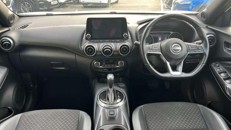 7" full colour TFT screen combimeter, Apple CarPlay and Google Android auto, Drive modes select (Eco, normal and sport), Emergency and breakdown call, Front parking sensor, Idle start/stop system, Intelligent lane intervention, Lane departure warning system, Nissan connect 8" touch screen entertainment system, Nissan connect nav with TomTom traffic, Nissan connect services and Wifi connection, Outside temperature sensor, Power Steering, Rear parking sensor, Traffic sign recognition, Trip computer, Voice recognition, Gasoline particulate filter, 6 speakers, Bluetooth system, USB, Aux-in and 12V socket, DAB Digital radio, Rear console USB port, Auto dimming interior rear view mirror, Auto headlights, Automatic hazard signal with emergency stop signal, Body colour bumpers, Body colour door handles, Electrically adjustable door mirrors with integrated indicators, Follow me home headlights, Front and rear electric window with one touch driver window, Heated and auto folding door mirrors, High beam assist, LED daytime running lights, LED headlamps, LED rear fog lamp, LED rear lamps, Rain sensor windscreen wipers, Rear privacy glass, Rear side wing doors, Rear wiper, Shark fin roof antenna in Pearl Black, Three blink turn signal, 3 height adjustable rear headrests, 3 seat bench in 2nd row, 60/40 split folding rear seat, Automatic climate control, Card holder on driver sunvisor, Cloth upholstery with black and metallic grey syntech leather inserts, Driver and passenger sliding and reclining seats, Driver side rear coat hanger, Driver/passenger sunvisors and vanity mirrors, Front and rear cabin lights, Front armrest, Front door pockets with bottle holders, Front head restraints, Front/rear passenger grab handles, Grey synthetic leather kneepad, Height adjustable driver's seat, Internal chrome door handles, Leather gearshift knob, Leather steering wheel, Luggage board, Luggage space lighting, Monoform sporty seats, Multifunction steering wheel, Rear door bottle holders, Single front passenger seat, Steering wheel mounted gearshift paddles, Telescopic steering wheel adjustment, Two cupholders in front centre console, Two rear isofix child seat anchorage points with top tether, Welcome light and console tray ambient lighting, ABS with EBD and brake assist, Active ride control, Active Trace Control, Driver and passenger airbags, Driver and passenger side airbags, Electric handbrake with auto hold function, Electronic Stability Programme (ESP), Front and rear curtain airbags, Height adjustable seatbelts, Hill start assist, Intelligent emergency braking with pedestrian and cyclist recognition, Rear door child safety locks, Seatbelt reminder for driver/front passenger and rear seats, Single tone horn, Three 3 point rear seatbelts, Traction control, Tyre pressure monitoring system, VDC Dynamic Vehicle Control, Ventilated rear brake discs, Alarm, Immobiliser, Intelligent key and start push button with walk away lock and approach unlock functions, Remote central locking,