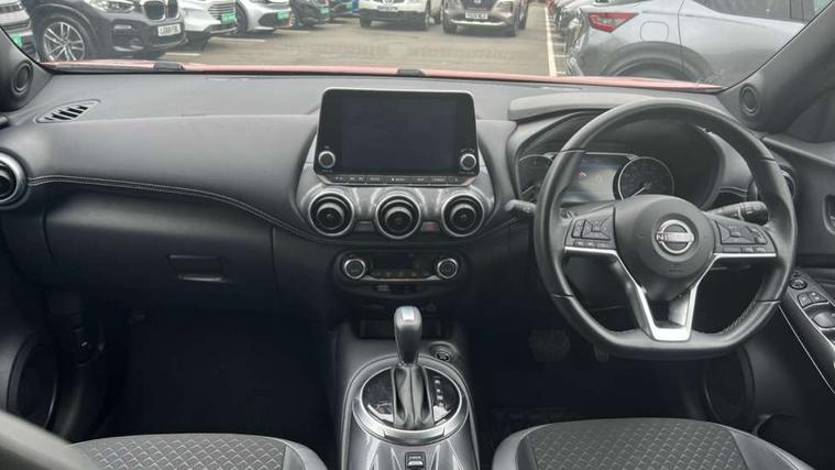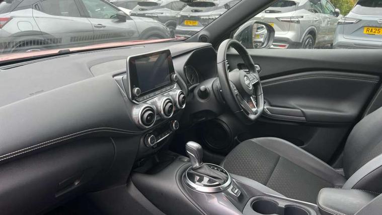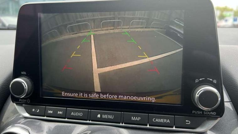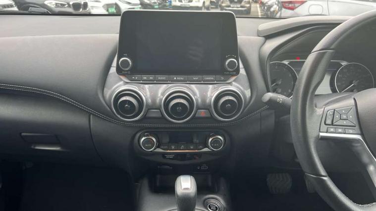 7" full colour TFT screen combimeter, Apple CarPlay and Google Android auto, Drive modes select (Eco, normal and sport), Emergency and breakdown call, Front parking sensor, Idle start/stop system, Intelligent lane intervention, Lane departure warning system, Nissan connect 8" touch screen entertainment system, Nissan connect nav with TomTom traffic, Nissan connect services and Wifi connection, Outside temperature sensor, Power Steering, Rear parking sensor, Traffic sign recognition, Trip computer, Voice recognition, Gasoline particulate filter, 6 speakers, Bluetooth system, USB, Aux-in and 12V socket, DAB Digital radio, Rear console USB port, Auto dimming interior rear view mirror, Auto headlights, Automatic hazard signal with emergency stop signal, Body colour bumpers, Body colour door handles, Electrically adjustable door mirrors with integrated indicators, Follow me home headlights, Front and rear electric window with one touch driver window, Heated and auto folding door mirrors, High beam assist, LED daytime running lights, LED headlamps, LED rear fog lamp, LED rear lamps, Rain sensor windscreen wipers, Rear privacy glass, Rear side wing doors, Rear wiper, Three blink turn signal, 3 height adjustable rear headrests, 3 seat bench in 2nd row, 60/40 split folding rear seat, Automatic climate control, Card holder on driver sunvisor, Cloth upholstery with black and metallic grey syntech leather inserts, Driver and passenger sliding and reclining seats, Driver side rear coat hanger, Driver/passenger sunvisors and vanity mirrors, Front and rear cabin lights, Front armrest, Front door pockets with bottle holders, Front head restraints, Front/rear passenger grab handles, Grey synthetic leather kneepad, Height adjustable driver's seat, Internal chrome door handles, Leather gearshift knob, Leather steering wheel, Luggage board, Luggage space lighting, Monoform sporty seats, Multifunction steering wheel, Rear door bottle holders, Single front passenger seat, Steering wheel mounted gearshift paddles, Telescopic steering wheel adjustment, Two cupholders in front centre console, Two rear isofix child seat anchorage points with top tether, Welcome light and console tray ambient lighting, ABS with EBD and brake assist, Active ride control, Active Trace Control, Driver and passenger airbags, Driver and passenger side airbags, Electric handbrake with auto hold function, Electronic Stability Programme (ESP), Front and rear curtain airbags, Height adjustable seatbelts, Hill start assist, Intelligent emergency braking with pedestrian and cyclist recognition, Rear door child safety locks, Seatbelt reminder for driver/front passenger and rear seats, Single tone horn, Three 3 point rear seatbelts, Traction control, Tyre pressure monitoring system, VDC Dynamic Vehicle Control, Ventilated rear brake discs, Alarm, Immobiliser, Intelligent key and start push button with walk away lock and approach unlock functions, Remote central locking,
