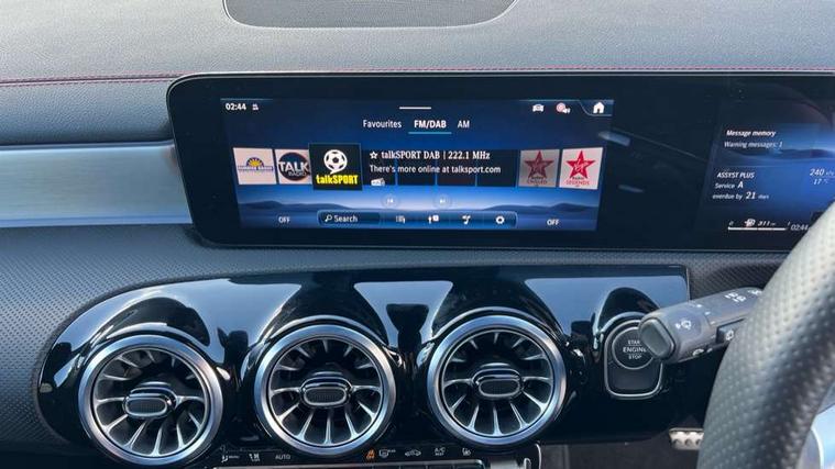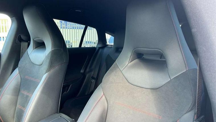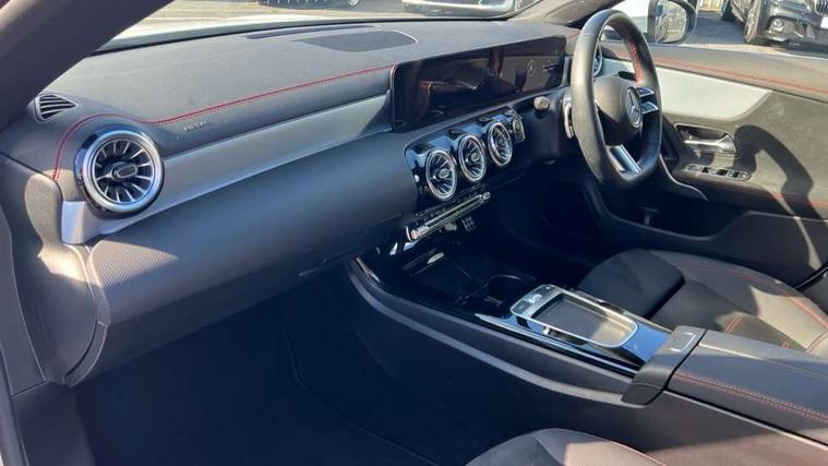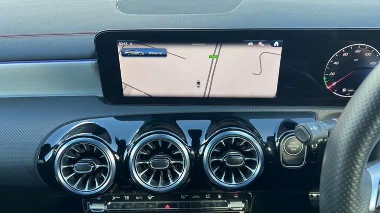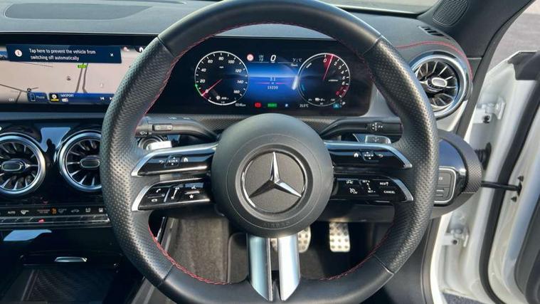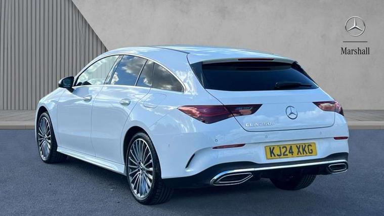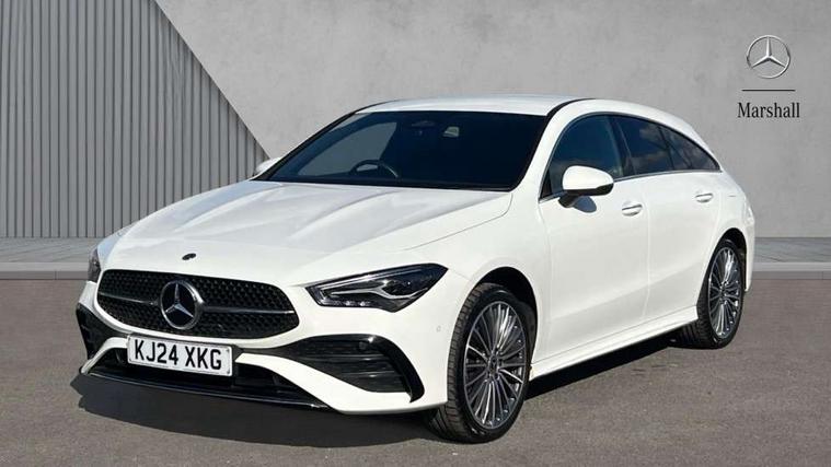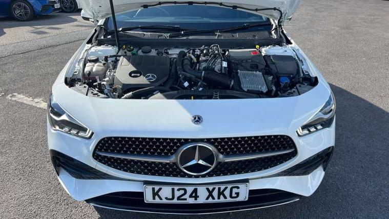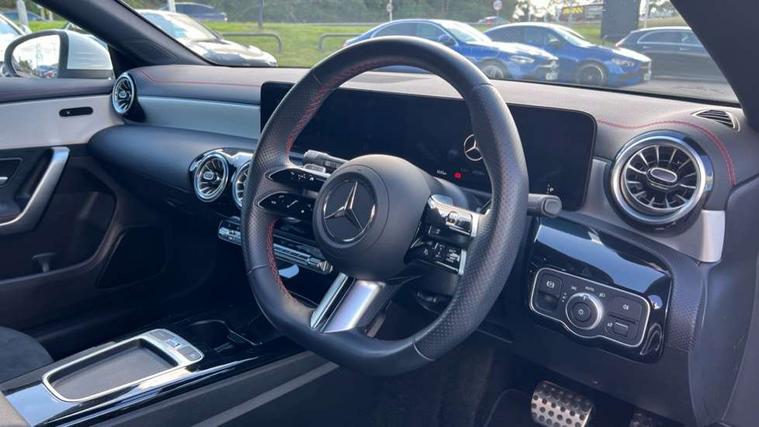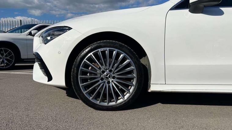 10.25 inch Instrument display with digital cockpit, 10.25 inch touchscreen central media display, Acoustic ambient protection, Active lane keeping assist, Attention assist - Monitors steering behaviour and long journey fatigue, Blind spot assist, Bluetooth connection, Car wash mode, Cruise control with limiter, Direct steer system, DYNAMIC SELECT with a choice of driving modes (ECO, Comfort, Sport and Individual), ECO start/stop function, Fingerprint sensor, Fluid level warning indicator for fuel, oil, coolant and washer fluid, Hard-disk navigation, Hey Mercedes Voice activation, Lamp failure indicator, MBUX augmented reality for navigation, Mercedes me connect including emergency call system, accident recovery, breakdown and maintenance management, Mercedes me remote and charging services plus, Outside temperature gauge, Owners manual in English, Pre-installation of private car share, Radio aerial integrated into front and rear windshields, Service indicator (ASSYST), Smartphone integration with Apple CarPlay and Android auto, Speed limit assist, Tailgate, Trip computer in multifunction display with current consumption indicator, Wireless charging in the front centre console, Charging system - AC charging system rated at 11kW, Charging system - DC charging system rated at 22kW, Comfort suspension, Mode 3 charging cable for wallbox and public charging stations with 5m upto 11kW, Rear axle torsion beam, DAB digital radio tuner, MBUX multimedia system, Mercedes Benz advanced sound system (225 W) with 10 speakers, 1 central speaker, speakers on doors, a tweeter on door, one sub woofer + boost amplifier, Pre installation for Mercedes Benz Link, Adaptive brake lights, AMG body styling with AMG front apron and rear apron and visible exhaust tailpipe in chrome trim elements, Body colour door handles, Electric windows, Electrically adjustable and heated door mirrors with integrated LED indicators, Exhaust system with 2 Visible tailpipe trim elements and rear apron with trim in chrome, Hand free access, Headlamp assist automatic headlamp activation, Heated glass rear windscreen + timer control, High gloss aluminium beltline strips, High level LED third brake light, Interior mirror with black reading lamps and frameless, LED high performance headlamps with integrated LED daytime running lights and adaptive highbeam assist, LED tail lamp, Privacy glass with dark tinting on rear side windows and rear window, Radiator grille with Mercedes-Benz pattern in chrome with central Mercedes star and single louvre with chrome inserts, Rain sensing windscreen wipers with two sensitivity settings, Rear fog lamp, Rear side wing doors, Rear wiper, Variable front intermittent wipers, Window line trim strip in high gloss aluminium, 3 seat bench in 2nd row, 3 twin spoke flattened multifunction steering wheel in nappa leather - horizontal twin spoke in high gloss black, vertical twin spoke in silver chrome, 40:20:40 split folding rear seat backrests, Air conditioning - Two zone thermotronic luxury automatic climate control with display, Air vents with surround in silver chrome, Automatic child seat recognition sensor, Black roof lining, Brushed stainless steel sports pedals with rubber studs, Charging socket, Electrically adjustable front memory seats including 4 way lumbar support, Floor mats with stitched AMG lettering, Fluorescent jacket, Front centre armrest with stowage, Galvanished gear shift paddles in silver chrome, Heated front seats, Illuminated front door sills with Mercedes Benz lettering and changeable cover, Interior lighting - 64 colour Ambient lighting, Luggage net on driver/front passenger seat backrest, Manually height and reach adjustable steering column, Pre-entry climate control, Rear armrest with two integral cup holders for drinks, Rear head restraints, Single front passenger seat, Sport seats with fixed head restraints, Stowage compartment in centre console with retractable cover, Sunvisors with illuminated vanity mirrors, Twin front cupholders, Two outer rear seat isofix and top tether child seat fixing points, Keyless go comfort pack - CLA with easy pack tailgate, Light and sight pack - CLA, Mirror pack - CLA, Parking pack with reversing camera - CLA, Seat comfort pack - CLA, USB package plus - CLA, Active bonnet pedestrain safety measure which detects an impact and raises bonnet by 65mm, Active brake assist includes forward collision warning system with autonomous braking, Adaptive brake assist with hold function and hill start assist, Anti lock braking system (ABS) with brake assist, Black seat belts, Bonnet with power domes, Brake calipers with Mercedes-Benz lettering, Brake pad wear warning indicator, Childproof locks manually operated for rear doors and electrically operated for rear power windows, Crash responsive emergency lighting, Driver and front passenger head and sidebags, Driver and front passenger windowbags, Drivers knee airbag, Dual stage driver and front passenger airbags, Electric parking brake, Electronic stability programme with acceleration skid control, ESP curve dynamic assist, Exit warning, Front and rear seatbelt reminder, Front passenger seat occupancy sensor, Perforated front brake discs, Radar-based recuperation, Sports braking system, Three point rear seat belts, Tyre pressure monitoring system, Warning triangle and first aid kit, Alarm system with immobiliser and interior protection -Thatcham category 1, Guard 360 deg vehicle protection - tow away protection with visual, acoustic warning, interior monitoring, preinstallation for parking damage, Remote central locking and crash sensor with emergency opening function, Light aluminium with longitudinal grain interior trim, 19" AMG multi spoke light alloy wheels painted in titanium grey with high sheen finish, Summer tyres, Tirefit tyre sealant kit,