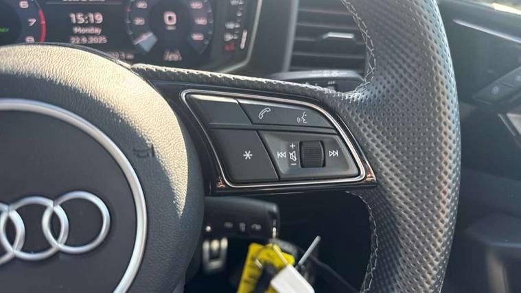 10.25" Digital instrument cluster display classis style instrument dials + speed, odometer, time, outside temperature, telephone menu + fuel level warning, Audi drive select - power steering assistance + engine + gear shift 3 preset modes (auto, dynamic, efficiency and an Individual mode), Audi smartphone interface with connect compatible smartphone via USB directly MMI display + Nav, music, third party apps controlled via MMI controller, Automatic start/stop system, Bluetooth interface, Cruise control, Driver's information system, Electromechanical power steering, Emergency e-call, Lane departure warning system, Rear parking sensor, Service interval indicator, Speed limiter, Voice control system, Washer fluid level indicator, Sports suspension, 2 x USB type C connection points, 6 passive loudspeakers, DAB Digital radio, MMI radio plus with 10.1" colour MMI display screen and MMI touch, Auto dimming rear view mirror, Body coloured door mirrors, Door sills with aluminium inlays and S Line logo, Electric front and rear windows, Electrically adjustable, heated, folding door mirrors with integrated LED side indicator, Front side air inlets in grained matt black and C frame in anthracite black, Heat insulating glass windscreen and side windows, Heated rear windscreen, High level LED brake light, LED headlights with LED rear lights + dynamic rear indicators + headlight adjustment and high beam, turning light + LED daytime running lights, Privacy glass, Radiator grille and rear diffuser in matt anthracite black, Radiator protective grille frame in matt aluminium silver, Rain and light sensors, Rear fog lights, Rear side wing doors, Rear wiper, S line badges on front wings, Side front spoiler lips in grained matt black, 12V socket in centre console with two cup holders, 3 rear seats with headrests, 3 seat bench in 2nd row, 3 spoke leather multi-function plus steering wheel features S badging and grips in perforated leather with contrast stitching, 40:60 Split folding rear seat or folded fully, Black cloth headlining, Driver and passenger seat with manual height adjust with forward and backwards adjustment, Front and rear black floor mats with contrast stitching in fine silver, Front head restraints, Front passenger seat, Height and reach adjustable steering wheel, ISOFIX child seat mounting for front passenger and outer rear seats including top tether attachment point of outer rear seats, Leather gear knob with aluminium trim, Leather handbrake grip, Luggage compartment light with front and rear reading lights, Manual air conditioning, Manually adjustable lumbar support in front seats, Stainless steel pedals, LED interior lighting pack - A1, Luggage compartment pack - A1, S line exterior styling pack - A1 Sportback, 3x3 point rear seatbelts, Audi pre-sense front with pedestrain and cyclist recognition, Brake assist function, Driver and front passenger airbag with front side and head airbags, Electronic Stability Control including ABS, EBD, ASR and EDL, Front passenger airbag deactivation switch, Hill hold assist, Manual rear child locks, Seatbelt height adjustment for front seats, Seatbelt monitoring, Tyre pressure warning light, Warning triangle and first aid kit, Anti theft alarm, Anti theft wheel bolts and loose wheel warning, Immobiliser, Remote central locking with 2 foldaway keys, Aluminium trim for control switches, air vents and digital instrument cluster, Black dashboard, Silver grey inlays polygon structure in diamond paint finish, Structured grey accent areas including air vents, door handle recesses and centre console in quartz paint finish,