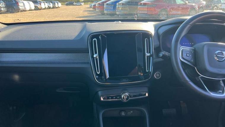 12.3" Progressive Driver Display, 360 degree surround view parking camera with side proximity sensors, 9" centre console portrait touch screen, Adjustable steering wheel force, Apple carplay (wired), Bluetooth handsfree system, Driver alert control, Driver assistance (pilot assist and adaptive cruise control), Driver awareness - Blind spot information system with steer assist, cross traffic alert with autobrake and rear collision warning and mitigation, E-call, Google automotive services - Enabled entertainment apps, navigation with google maps, voice recognition with google assistant, Hands free power tailgate, Intelligent speed assistance, Lane keeping aid, Oncoming Lane Mitigation, Speed sensitive steering, Volvo cars services with app - Driving journal, emergency and breakdown call, engine remote start, remote door locking/unlocking and vehicle dashboard, Wireless/Inductive Mobile Phone Charging, Automatic transmission with start/stop and manual change functions, Dynamic chassis, DAB Digital radio, Premium Sound by Harman Kardon, Dolby Pro Logic II Surround Sound, Dirac Unison, 12 speakers/600W and subwoofer, Steering wheel mounted remote controls, Active bending pixel LED headlights with adaptive shadow technology, Active high beam incorporating daytime running lights, Adaptive brake lights with high level LED brake lights, Auto dimming feature for exterior door mirrors, Auto dimming interior mirror, Automatic headlamp levelling, Colour coordinated auto folding and heated power door mirrors, Dark tinted windows - rear side windows and rear screen, Front aluminium tread plates, Front and rear electric windows, Headlight cleaning system, High gloss black front and rear skid plate, High gloss black front bumper deco, High gloss black front grille strikethrough and ironmark, High gloss black rear model, engine and volvo logo badges, High gloss black window trim, Home safe and approach lighting, Integrated roof rails in high gloss black, LED front fog lights with cornering function, Power glass tilt and slide panoramic sunroof with sun curtain, Puddle lights, Rain sensor with automatic windscreen wiper activation, Rear side wing doors, Rear wiper, Roof antenna, Roof spoiler, Special metallic paint, Visible VIN plate, 12V socket in front tunnel console and luggage compartment, 2-Zone electronic climate control with CleanZone air quality system and pollen filter, 3 seat bench in 2nd row, 3 Spoke tailored steering wheel with chrome trim, 60/40 versatile split folding rear seat, Centre console cupholders and storage, Charcoal headlining, Connect textile/microtech upholstery, Flexible load floor and grocery bag holder, Floor mats, Front cabin courtesy lights, Front door pocket, front cupholder, ambient front door, rear reading, rear courtesy, instrument panel and tailgate lighting, Front footwell illumination, Front headrests, Front reading lights, Front seat cushion extensions, Front side step illumination (under door), Glovebox bag hook, Heated front seats, Height/reach adjustable steering column, High gloss centre tunnel deco, Illuminated glovebox, Illuminated luggage compartment, Illuminated vanity mirrors + ticket holder, Integrated waste bin, Isofix attachments on outer rear seats, Load cover, Load protection net, Multi directional lumbar support for driver and passenger seat, Power driver seat with memory + exterior mirrors memory, Power folding rear headrests, Power passenger seat, Rear armrest with cupholders, Single front passenger seat, Underfloor cargo storage, Climate pack without heated front seats - XC40, 3x3 point rear seatbelts, City safety with steering support with Pedestrian + cyclist + front collision warning with full auto brake and rear auto brake, Driver and passenger airbags, Drivers knee airbag, Electronic parking brake with auto hold, First aid kit, Front and outer rear seatbelt reminder and pretensioners, Front seats SIPS airbags, Hill descent control, Hill start assist, Inflatable curtain, Passenger airbag cut-off device, Power child locks on rear doors, Road sign information display, Run off Road Protection, SIPS (Side Impact Protection System), Slippery road and hazard light alert, Stability and Traction Control with Spin control, Engine Drag Control and Corner Traction Control, Tyre pressure monitoring system, Vehicle deceleration control with Anti-lock Brake System, Electronic Brake Distribution and Emergency Brake Assist, Warning triangle, WHIPS whiplash protection system - front, 2 x Key integrated remote control central locking including with deadlocking system and auto open/close windows and sunroof, Anti-theft alarm including immobiliser/volume sensor + level sensor, Keyless drive includes keyless entry and keyless start, Locking wheel nuts, 20" 5 spoke high gloss black alloy wheels,