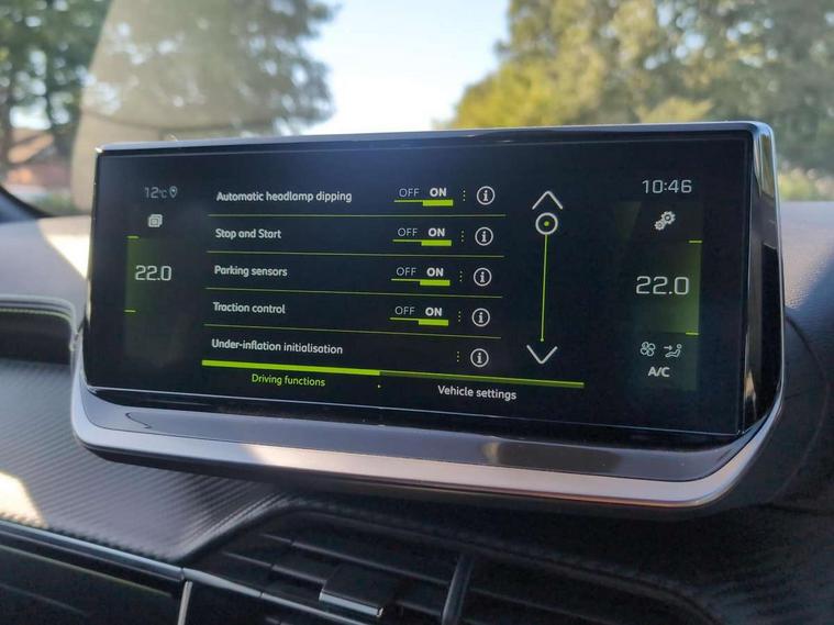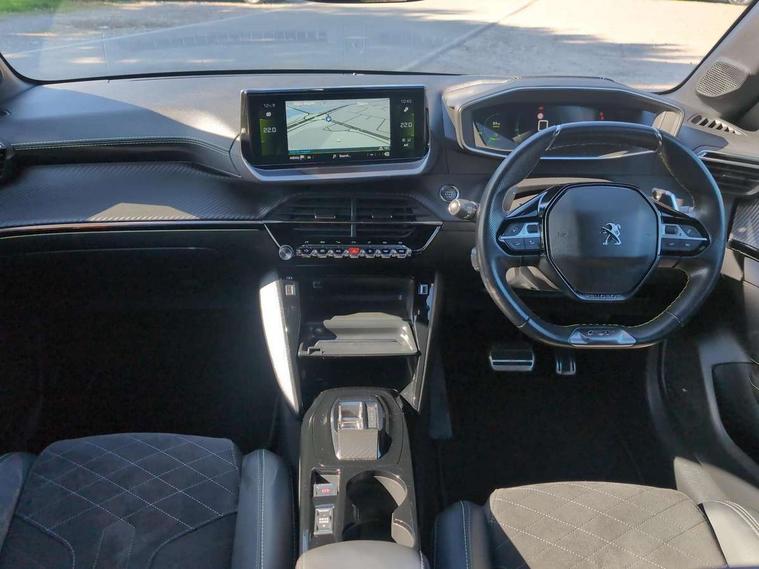 10" Capacitive colour touchscreen with connected 3D navigation, Blind spot monitoring, Bluetooth telephone facility, Driver attention warning, e-Toggle driving selector, Exterior temperature indicator with ice warning, Mirror screen with mirror link, apple carplay and android auto, Multi function trip computer, PEUGEOT i-Cockpit with compact steering wheel, PEUGEOT i-Cockpit with configurable 3D headup instrument panel, PEUGEOT SOS and assistance, Push button start, Smart phone docking station, Speed limit recognition and recommendation, Start/stop system, Visio park assist 180 with colour reversing camera + front and rear parking sensor, 2 front USB socket with USB-C, 2x USB sockets in rear, 6 speakers radio with mp3 compatible, DAB Digital radio, Voice recognition for radio, navigation and telephony features, 2 X Rear number plate lights, Automatic hazard light activation upon heavy brake application, Automatic lights, Automatic windscreen wipers, Body coloured exterior door handles, Dark tinted rear side and tailgate windows, Diamond Black roof, Electric front windows + one touch + anti-pinch, Electric rear windows with one touch/anti-pinch, Electrically adjustable, heated and power folding door mirrors, Extended diamond black rear spoiler, Follow me home headlights, Frameless electrochrome interior rear view mirror, Full LED headlights with smartbeam assist, Gloss black finish on B pillar, Gloss black rear cluster connecting strip, Gloss black wheel arch extensions, Gloss black window surround, GT model designation badging on C pillar, GT model designation badging on tailgate, Headlights left on audible warning, LED daytime running lights with 3 claw headlight with distinctive tooth design, LED side indicator lights integrated into door mirrors, LED third brake light, Model designation badges front and rear, Nera black door mirror shells, Peugeot scuff plates, Radiator grille - Dark chrome chequered and gloss black edge trim, Rear bumper with gloss black finish, Rear full LED 3D peugeot signature claw effect lights with daylight function, Rear lower bumper diffuser effect trim in gloss black, Rear reversing lights, Rear side wing doors, Rear windscreen wiper triggered automatically in reverse gear, Roof mounted aerial with fin design, Roof spoiler, Tailgate with heated rear windscreen and wiper blade, Variable front intermittent wipers, 1/3 to 2/3 split folding rear seats, 12V socket, 3 seat bench in 2nd row, 8 Colour personalisable ambient lighting, Aluminium pedals and foot rest, Automatic air conditioning, Automatic gear lever in full grain leather and satin chrome, Driver and front passenger seat manual adjustment in longitudinal and back rest angle, Driver and front passenger seat mechanical height adjustment, Driver and front passenger sport seats, Electric power steering with reach and rake adjustable steering column, Front and rear carpet mats in black with lime green stitch detail, Front centre armrest with storage compartment, Front LED interior light with 2 reading spotlights and rear interior light with timer, High centre console with 2 cup holders, ISOFIX child seat mounting points on passenger seat, Lime green contrast stitching to armrest, front centre console, door panels and dashboard facia, Map pockets on the backs of the front seats, Mistral full grain perforated leather steering wheel with aikinite stitch detail and satin chrome 'GT' emblem, Paddle shifts, Piano keys gloss black plated toggle switches to access main functions of the vehicle, Piano keys gloss black plated toggle switches to access touchscreen functions, Push button finished in black with chrome circle, Rear centre headrest, Roof lining - Mistral black, Seatbelt unfastened on the move audible and visual alert for front and rear seats, Single front passenger seat, Drive assist pack plus - 208, 3 rear 3 point seatbelts, ABS (Anti-lock Braking System) with EBD (Electronic Brakeforce Distribution) and EBA (Emergency Braking Assistance), Active safety brake with night function/cyclists/pedestrians, Adaptive driver and front passenger airbags with passenger airbag deactivation function, Child locking functionality on rear doors, Driver/front passenger side airbags, Electric parking brake, ESP with Hill Assist, Front and rear curtain airbags, Front and rear disc brakes, Front optimised safety headrests and 3 x rear retractable headrests with height adjustable, Front three point retractable seatbelts with force limiters, Tyre pressure sensor, Acoustic vehicle alert system (AVAS), Automatic door locking when moving off, Deadlock, Electronic code immobiliser, Peugeot Open and Go System, Remote central locking, Thatcham cat. 1 alarm with anti lift sensor, Carbon effect Dashboard, front and rear door panel finish, 17" Bronx two-tone alloy wheels, Space saver spare wheel,