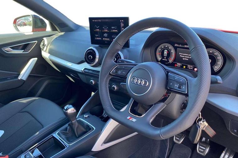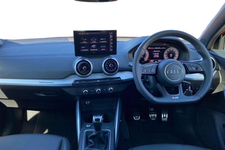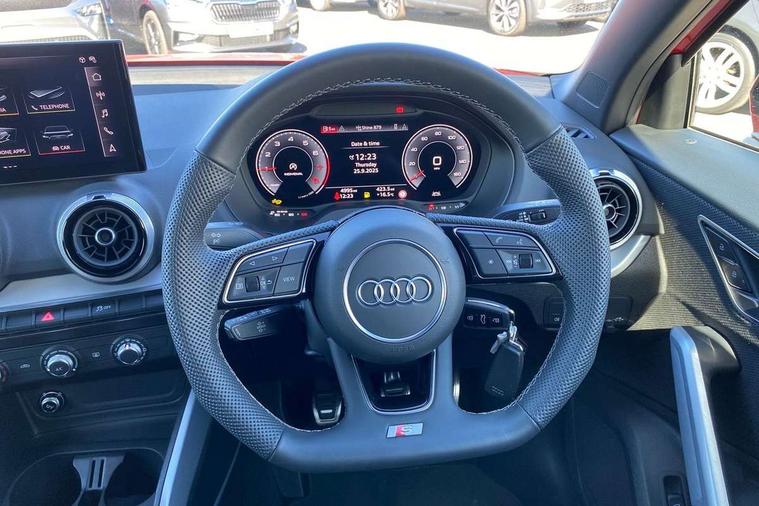 3D map display, Audi connect navigation and infotainment includes innovative services, Audi connect remote and control connects your vehicle to your smartphone, Audi drive select: power steering assistance + engine (modes: comfort, auto, dynamic, individual), Audi smartphone interface - Apple carplay/Android Auto, USB connect, 2xSDXC card readers, voice control for navi, telephone, music and 3rd party apps, Audi virtual cockpit, Automatic start/stop system with recuperation, Bluetooth interface includes bluetooth audio streaming, Camera based traffic sign recognition, Cruise control, Distraction and Fatigue warning, E-call, Jukebox hard drive memory for music (10GB), Lane departure warning, MMI navigation plus with 8.8" touchscreen, Natural voice recognition, Power operated tailgate, Progressive steering, Rear parking sensors, Sport suspension, 6 passive loudspeakers, DAB Digital radio, USB type C port, Audi beam, Auto dimming rear view mirror, Black window trims, Bumper in full body colour paint finish, Electrically adjustable, folding, auto dimming and heated door mirrors with integrated LED side indicators, Front windscreen with grey tinted sunband, LED daytime running lights, LED headlights with dipped beam, high beam, position lights, indicators, LED rear lights, LED third brake light, Privacy glass - dark tinted rear and rear side windows from B-pillar backwards, Rear side wing doors, Rear wiper, Variable front intermittent wipers, Wheel arch trims in manhattan grey, 12v socket in front, 3 seat bench in 2nd row, 3 spoke flat bottomed multi-function leather sport steering wheel, 4-way electric lumbar support for front seats including manual seat height adjustment for both front seats, 60/40 split folding rear seat bench, Black carpets, Black cloth headlining, Front and rear head restraints, Front centre armrest, Front sport seats, Front/rear floor mats, Height/reach adjust steering wheel, Illuminated door sill trims with S logo, ISOFIX child seat mounting in front passenger and rear outer seats, Manual air conditioning, Single front passenger seat, Stainless steel pedals, Black styling pack - Q2, 3x3 point rear seatbelts, 6 airbags - Front, curtain and front side airbags, Electromechanical parking brake, Electronic stabilisation control including ABS, ASR and EDL, Front passenger airbag deactivation, Hill hold assist, Pre-sense front with pedestrian recognition, Seatbelt monitoring, Tyre pressure warning light with visual and acoustic warning, Warning triangle and first aid kit, Anti theft alarm, Anti theft wheel bolts, Electronically operated child locks, Remote central door locking, Aluminium interior element, Black dashboard, Gloss black centre console, Matt brushed aluminium trim inlays, Tool kit,