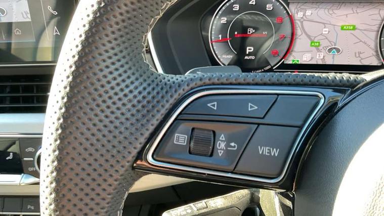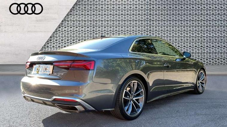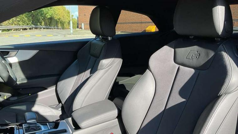 Audi connect safety and service (e-call), Audi connect with Amazon Alexa Integration, Audi drive select (Auto, Comfort, Dynamic, Efficiency and Individual), Audi parking system plus with front and rear sensors, Audi smartphone interface, Audi virtual cockpit - 12.3" full colour digital instrument cluster, vehicle/engine speed, Radio/media information+Driver assistance systems, Automatic start-stop system with coasting functionality and efficiency programme, Bluetooth interface, Electric boot lid release, Electro-mechanical power steering, Email, calendar and text messages displayed via MMI, MMI nav+ with MMI touch - 10.1" high resolution MMI display, touch sensitive, 3D map, route/country info, dynamic route guide, personal route assist, Rear view camera, Service interval indicator, Voice control system, 54 litre fuel tank, Sports suspension lowered by 23mm, 8 passive loudspeakers, CD player, DAB digital radio reception, Two additional USB ports for rear passenger in rear centre console, Two SDXC card slots, Auto dimming door mirrors, Auto dimming rear view mirror, Body colour bumpers, Body colour door handles, Body colour front spoiler lip, Body colour side sill trim, Body coloured door mirrors, Electric adjustable heated door mirrors, Electric folding door mirrors, Electric front windows, Front fog lights, Honeycomb structure radiator grille in grained matt black, Kerb-view function for passenger side, LED headlights and rear lights with LED daytime running lights, LED side indicator lights integrated into door mirrors, LED third brake light, Matt aluminium silver tailpipe trim, Privacy glass, Rain and light sensors, Rear boot, Rear side wing doors, S line badges on front wings, S line front and rear bumpers with side skirts, S Line rear diffuser in matt anthracite black with trim strip in matt aluminium silver, Side air inlets in grained matt black with matt aluminium silver inlay, Variable front intermittent wipers, Windscreen with acoustic glazing, 2 seat bench in 2nd row, 3 spoke high multifunction leather sport steering wheel with paddle shfit and S badging perforated leather grips, 4 way electric lumbar support for driver and front passenger, 40/20/40 split folding 2 seater rear seat bench with rear centre armrest, Adjustable steering column, Black cloth headlining, Black perforated leather gearknob, Contrast stitching on seats, steering wheel and gear lever gaiter, Deluxe 3 zone electronic climate control, Front centre armrest, Front head restraints, Front/rear floor mats, Heated front seats, Illuminated door sill trim with S logo, ISOFIX child seat mounting and top tether, Luggage compartment mat, Manual seat adjustment, Rear headrests, Single front passenger seat, Stainless steel pedals, Sunvisors with vanity mirrors, LED interior light pack - A5/RS5, 2 x 3-point rear seatbelts, 6 airbags - Driver, front passenger, curtain and side airbags, Electromechanical parking brake, Electronic Stabilisation Control (ESC) including ABS, ASR and EDL, Front passenger airbag deactivation, Height adjustable front seatbelts, Hill hold assist, Multi collision brake assist, Pop-up bonnet for pedestrian protection, Pre sense city, Seatbelt monitoring, Tyre pressure warning, Variable restraint system, Warning triangle and first aid kit, Anti theft alarm system, Anti theft wheel bolts, Immobiliser, Keyless Go, Remote central locking, Matt brushed aluminium inlays, Tool kit, Tyre repair kit,