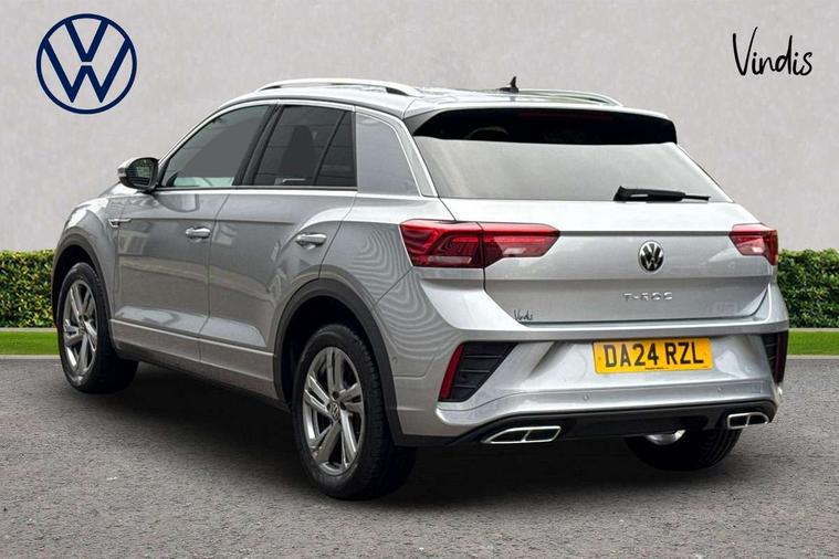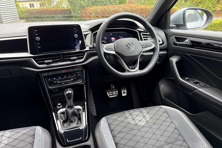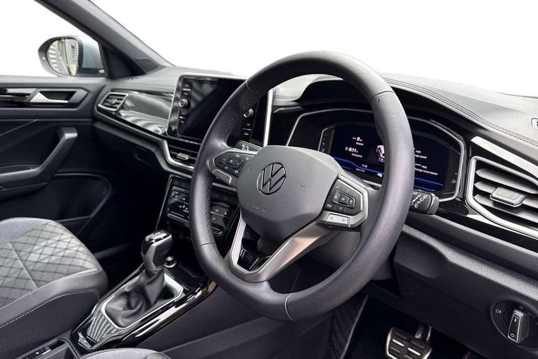 10.25" Digital cockpit pro, Advanced driver attention and drowsiness monitor, Bluetooth mobile phone interface, Emergency call service, Lane keeping system Lane Assist, Modified key software - reduce switch off time for key status change to Long no motion, Online services, Park assist including front and rear parking sensors, Service interval indicator, Tailgate/trunk lid release from outside, Think blue trainer driver tips and journey analysis, Warning sound and light for front seatbelts unfastened, Wireless app connect, Battery regeneration during braking, Start/stop function with battery regeneration, Diversity antenna for FM reception, Music playback - MP3, WMA and AAC files, Premium USB cable in choice of either Apple or Android smartphone compatibility, SD card slot, Simultaneous pairing of 2 compatible mobile devices, Title and cover art display, We Connect and We Connect Plus functionality, 3rd brake light, Auto dimming interior rear view mirror, Automatic hazard lights activation under emergency braking, Automatic headlight control with LED separate daytime running lights with coming/leaving home function, Electrically adjustable and heated door mirrors, Extended roof spoiler, Exterior mirrors aspherical on driver side, convex on front passenger side, External USB type C socket and charging sockets, Front windscreen wiper with intermittent wipe and 4 position delay, Heated rear window, LED rear combination lamps, LED rear number plate lights, Power windows with comfort operation and circuit breaker, R-Line design body coloured bumpers, Rain sensor, Rear exhaust tailpipe, Rear fog light on one side and reversing lights on both sides, Rear side wing doors, Rear wash/wipe with intermittent wipe setting, Remote electrically foldable door mirrors, puddle lights and reverse activated passenger's door mirror, 12V power socket in centre console, 3 rear head restraints, 3 seat bench in 2nd row, 4 load lashing points in luggage compartment, Air care climatronic air conditoning system with active combination filter and 2-zone temperature control, Black roof lining, Chrome plated radiator grille inserts, air vent surrounds and light switch surrounds, Door and side trim panel with leatherette insert, Front + rear carpet mats, Front centre armrest, Front cupholders x 2, Front footwell illumination, Front reading light, Front scuff plates with R Line logo, Front seat back storage pockets, Glove compartment door with light, Instrument lighting, white adjustable panel illumination, Interior ambient lighting and surround lighting, Interior light delay, Isofix child seat preparation, Leather gearshift handle, Load-through provision with cup holder when folded down ('Unsplit rear seat bench, split folding backrest, with centre armrest), Luggage compartment lighting, Single front passenger seat, Stainless steel pedals, Storage compartment in left and right luggage area, Storage compartment in rear doors, Storage compartments in driver and front passenger doors, Sunvisors with illuminated vanity mirrors, Variable boot floor, height adjustable and removable, Driver assistance pack without proactive passenger protection - T-Roc, 3 point height adj front seatbelts + pretensioners, 3 point seatbelts in outer rear with ECE label, ABS, Child locks on rear doors, City emergency braking and pedestrian monitoring, Driver and front passenger airbag with front passenger airbag deactivation, Driver and front passenger safety-optimised head restraints, Drivers seatbelt reminder, Electronic parking brake, Electronic Stability Control (ESC) inc EDL (Electronic Differential Lock) and ASR (Traction Control), Front and rear passengers curtain airbag system including front side airbags, Hill start assist, Predictive pedestrian protection, Rear disc brakes, Two tone horn, Tyre pressure loss indicator, Volkswagen roadside assistance, Anti-theft alarm system with interior monitoring, backup horn, and towing protection, Remote central locking with SAFELOCK, radio remote control with 2 remote control folding keys, Trims for alloy wheels,