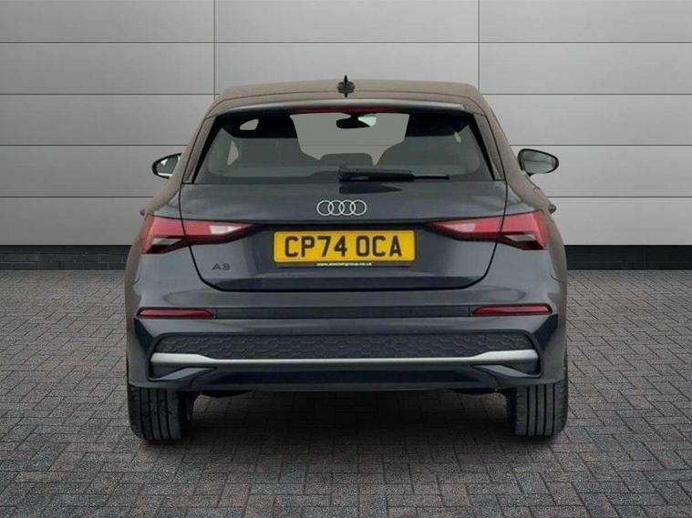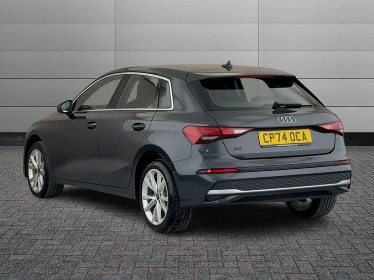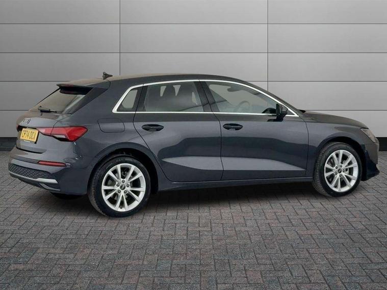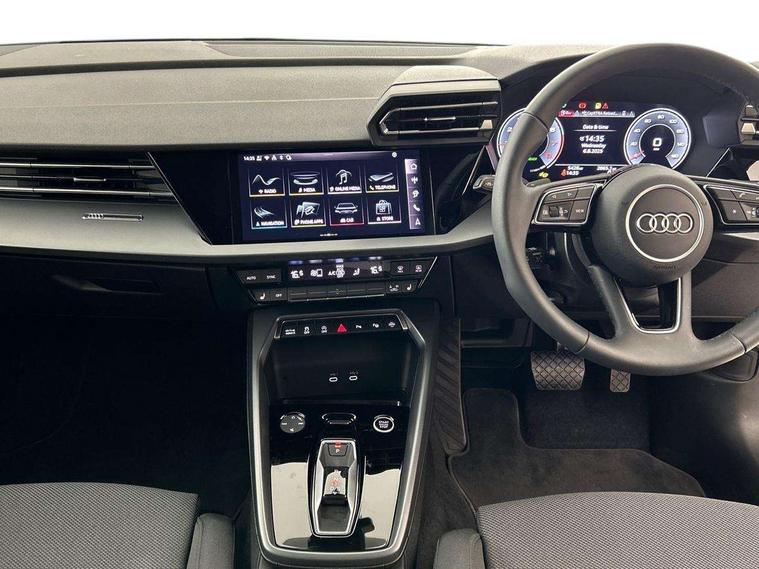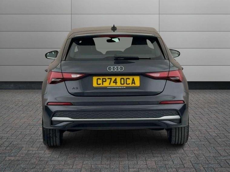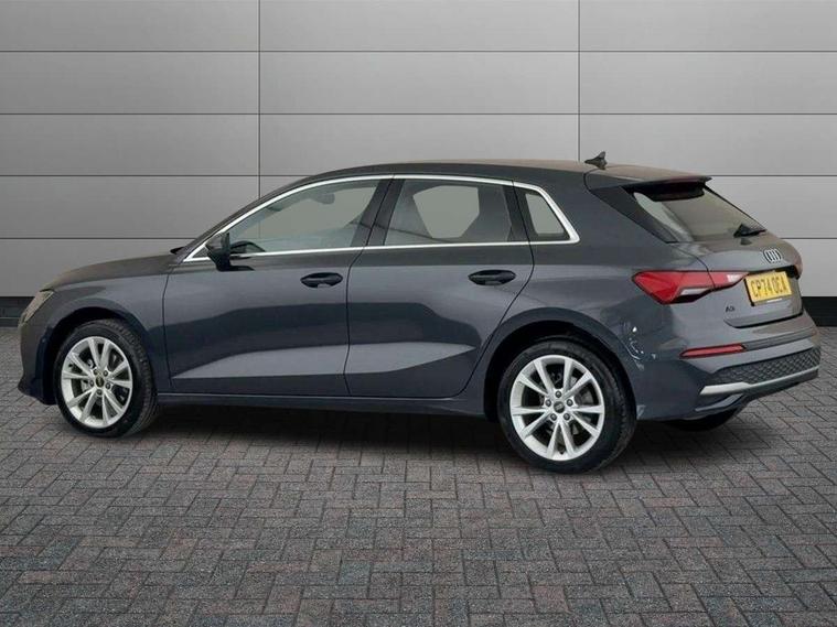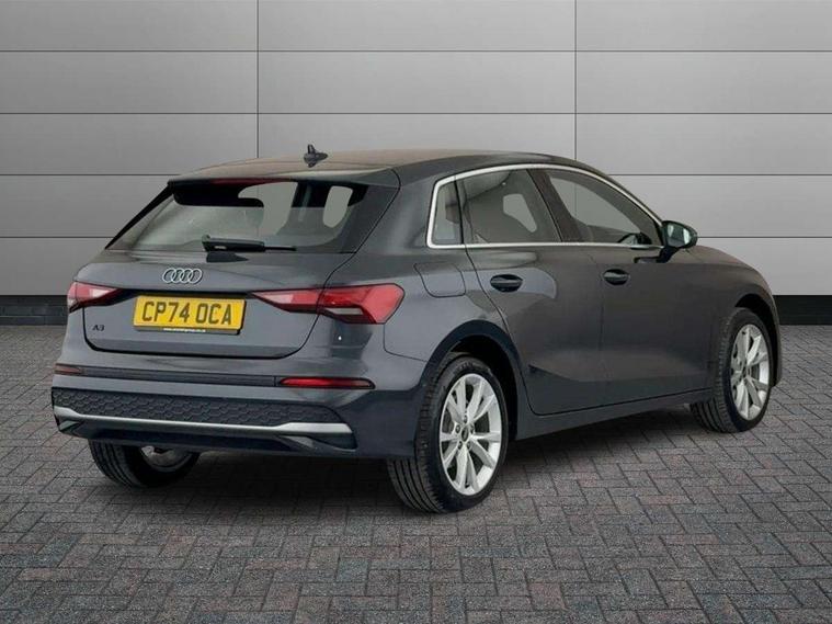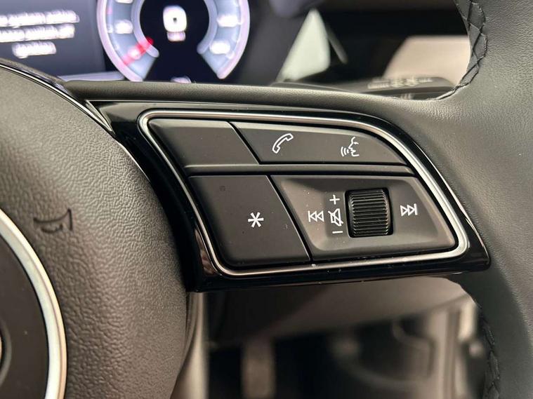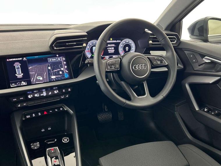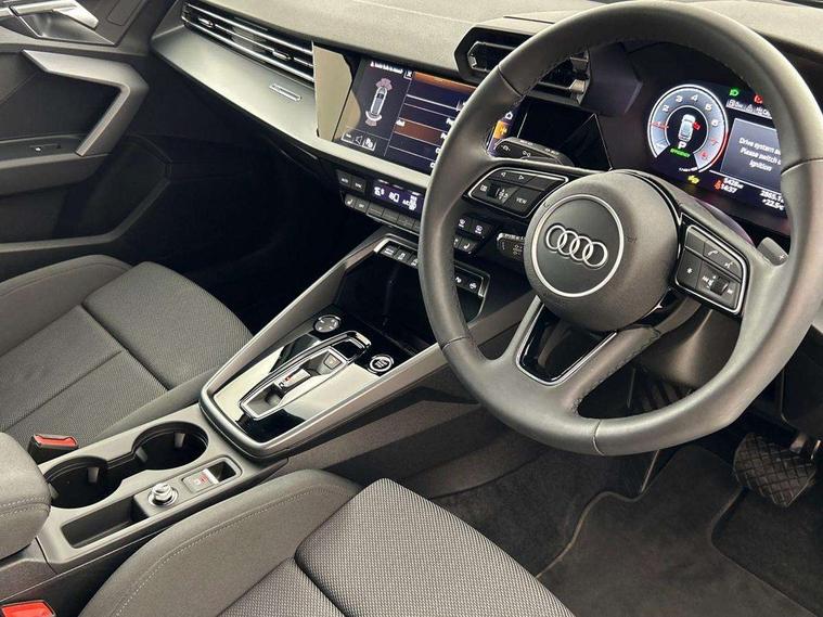 Adjustable speed limiter, Audi drive select, Audi smartphone interface with app store includes wireless Apple carplay, Android auto and Amazon alexa integration, Audi virtual cockpit plus - 12.3" full HD resolution dynamic digital instrument cluster, Automatic start/stop system with recuperation, Bluetooth interface, Camera based traffic sign recognition, Collision avoidance assistant, Cruise control, Distraction and Fatigue warning, e-Call (emergency call), Electromechanical power speed sensitive steering, Lane departure warning system, MMI Navigation Plus with high resolution 10.1" colour touch screen display, Park Assist with parking system Plus, Service indicator, Tailgate, Trip computer, Voice control system with natural language interaction, Standard suspension, Audi Phonebox light with wireless charging, Audi sound system - 10 loudspeakers including centre loudspeaker and subwoofer, DAB Digital radio, USB ports with charging function in the rear, 3rd brake light, Acoustic glass windscreen, Aluminium window trim, Auto dimming frameless rear view mirror, Body colour exterior mirrors, Body colour roof spoiler, Electrically adjustable/heated/folding/auto dimming door mirrors with integrated LED indications + kerb view function for passenger side, Exterior model badging, Front electric windows, Front radiator grill in high gloss dark chrome, Front side air inlets in grained matt black with silver frame, Heat insulating glass windscreen, LED daytime running lights, LED headlights and halogen rear lights, Light and rain sensors, Rear diffuser and grill in grained matt black with silver frame, Rear electric windows, Rear side wing doors, Rear window, rear door windows and rear side windows in clear glass, Rear wiper, 12V socket and storage compartment in front centre console, 3 seat bench in 2nd row, 3 spoke leather multifunction steering wheel with gear shift paddles, 3-zone deluxe automatic air conditioning, 4 way electrically adjustable lumbar support for driver and front passenger, 60/40 split folding rear seat bench, Front and rear headrests, Front centre armrest, Front door sill trims with aluminium inlay, Front/rear floor mats, Heated front seats, Height and reach adjustable steering wheel, Manual boot compartment lid, Manually adjustable front seats, Routine cloth upholstery with front sports seats, Seat side bolsters, Single front passenger seat, Steel grey cloth headlining, Aluminium interior elements pack - A3 Sportback, LED interior lighting pack -A3, 3x3 point rear seat belts, Driver and front passenger airbag with passenger airbag deactivation, Electronic Stabilisation Control (ESC) including ABS, ASR and EDL, First aid kit with warning triangle and 2 safety vests, Front side airbags with head airbags and interaction airbag, Hill hold assist, Pre-sense front with pedestrian and cyclist detection, Seatbelt monitoring, Tyre pressure loss indicator, Anti theft alarm, Anti-theft wheel bolts, Electronically operated child locks, Immobiliser, Remote central locking with safelock, Inlays in volcano grey fine paint finish,