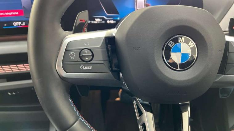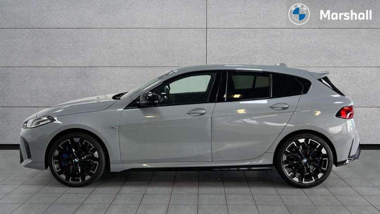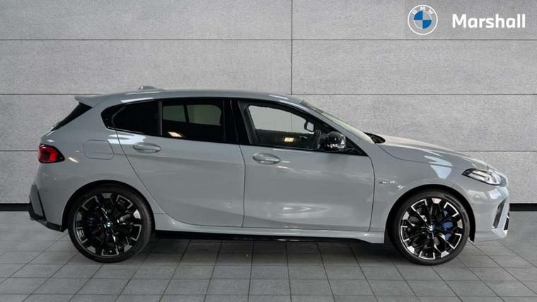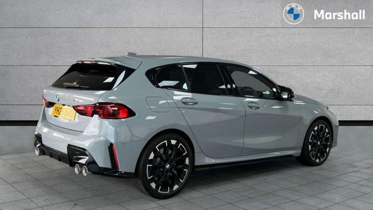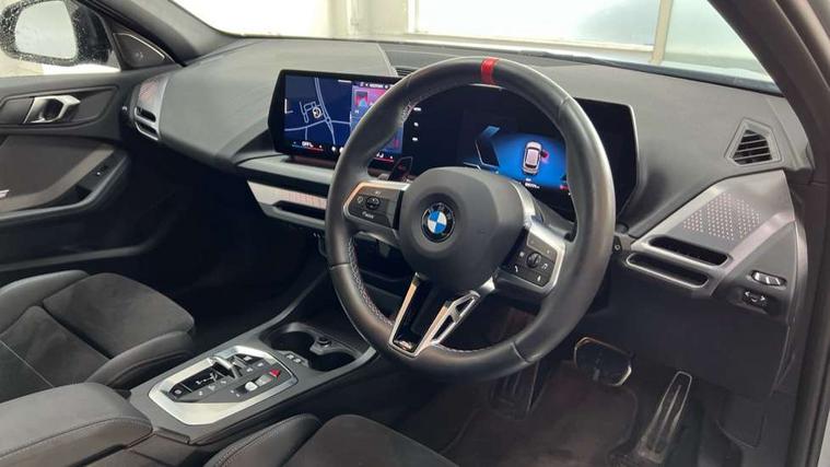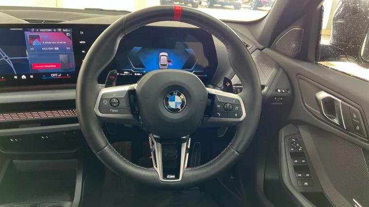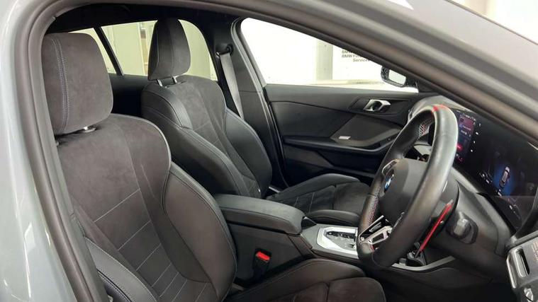 Active guard plus, Attentiveness assist, Bluetooth / WiFi interface for wireless connection of mobile terminal devices and audio streaming, BMW ConnectedDrive online services, BMW Live cockpit plus, BMW Teleservices, Check Control warning system for monitoring of lights and door/luggage compartment open warning, Eco pro mode, Electric power steering, Electro hydraulically controlled multi-plate clutch transfers drive to rear axle and with power take-off device located on the front differential., Energy efficient operating strategy, Evasion assistant, Flat airvents in instrument panel with adjustable slats, Front and rear parking sensors, Front axle single joint with specific axle kinematics to minimise drive influences on steering + provide increased rigidity agile driving behaviour, Gearshift time display in manual mode, Integrated owners handbook, Left turn warning with brake function, M Sports steering with M135i xDrive specific settings, My modes (Personal / Efficient / Sport), Oil sensor for level and grade, On board computer, Optimum shift indicator, Park assist including reversing assistant, lateral parking aid and reversing assist camera, Personal e-SIM, Personal Profile, Pull away assistant, Rigidly mounted rear subframe - Multi link construction with separate spring / damper configuration and excellent driving characteristics, Speed limit Info including no-overtaking indicator, Speed limiter, Sporty fast gear shifting in sport mode, 49 litre fuel tank, Aluminium lightweight construction, Anti roll bar front and rear, Balancer shaft, Double VANOS, Drive Performance Control, Electronic differential lock, Electronic selector lever, Engine cover with M performance designation, High precision injection, Launch control, M Adaptive suspension, M135i specific heavily de-throttled engine intake air guide, M135i specific high-performance cooling package, M135i specific larger turbocharger with integrated divert-air valve, Petrol Particulate Filter, Steptronic transmission with double clutch, Twin tube gas filled shock absorbers with degressive characteristic curve, VALVETRONIC engine management, Variable, stepless and infinitely adjustable distribution of drive torque between the front and rear axles, xDrive intelligent all wheel drive with M135i specific reinforced components, DAB Digital radio, Harman/Kardon surround sound audio system with 12 speakers, Auto dimming rear view mirror, Automatic windscreen wipers and automatic headlight, Body colour door handles, Body colour roof trims, Cerium grey exterior mirror caps, Direction indicator side lights in exterior mirrors, Electrically adjustable exterior mirror with mirror adjustment switch on drivers armrest and aspheric on driver side, convex on passenger side, Exhaust tailpipe, Cerium Grey with bevelled finish - twin, round 100mm, left and right split, Fading support, Folding side mirrors with auto dimming/folding wing mirrors with auto dimming, Follow me home headlights, Front and rear bumper system with replaceable deformation elements, Front and rear electric windows with open and close fingertip control, anti trap facility and comfort closing, Front door sill finishers with M135i designation, Green tinted heat protection glazing, Heated rear window, High gloss shadowline window frame, Recess cover mirror frames and B/C pillar embelisher trim, High level third brake light, Integrated front windscreen with washer jets, Kidney grille frame in Cerium Grey with Mesh design, LED daytime running lights, LED eyebrow turn indicators, LED Headlights, Lightweight engineering, M Performance exhaust system with valve control and minimised exhaust back pressure, M Performance specific setup, M rear spoiler in high gloss black, M sport roof spoiler, Matt black air guide grilles, Matt black wheel arch trim, Model badge on tailgate right, Nearside reverse light in rear light cluster, Preparation for high beam assistant, Rain sensor, Rear fog lights, Rear side wing doors, Rear window wiper, Reinforced crank drive, new pistons and adapted con rods, Shark fin antenna, Sun protection glass, Trailer stabilisation logic, Visible VIN plate, Welcome lighting, 12V power socket in front centre console with blanking plug, 3 rear seat head restraints, 3 seat bench in 2nd row, 3 spoke Walknappa leather steering wheel, decorative stitching, badge, pearl chrome finish, thumbnails, red centre and black/red high gloss paddles, Anthracite front and rear floor mats, Anthracite headlining, Black boot net with lashing eyes, Cargo function on 2nd seat row, Child seat ISOFIX attachment for two outer rear seats and front passenger seat with anchorage points, Conditioned based service, Driver and front passenger backrest net on rear, Driver and front passenger seat heating, Driver side folding compartment in instrument panel, Folding rear clothes hook, Footrest and pedals in black plastic, Four grab handles integrated in roof lining, Front and rear door pockets with bottle holders, Front and rear side armrest integrated into door trim, Front armrest with storage compartment, Glove compartment, Height adjustable front head restraints, Luggage compartment for bag hooks on left and right, foldable luggage compartment liner and four lashing eyelets, Manual adjust steering wheel, Multi-function controls for steering wheel, Rear seat backrest with manual 60:40 split folding with 3 top tether clips integrated on rear of seat panels, Single front passenger seat, Storage compartment in centre console, Storage compartment in luggage compartment, Stowage of the parcel shelf in luggage compartment trim, Sun visors with vanity mirrors and insert tab, Two front centre console cupholders, Type C two USB ports in rear centre console, Upper retaining strap integrated into backrest rear panels, Connected pack professional - 1 Series, Interior lights pack - 1 Series, M Sport exterior styling aerodynamics pack - 1 Series 135i, 2 tone horn, 3 point seatbelts on all seats, front pyrotechnic be