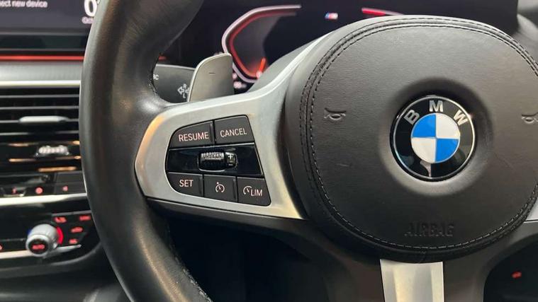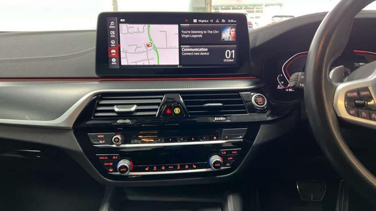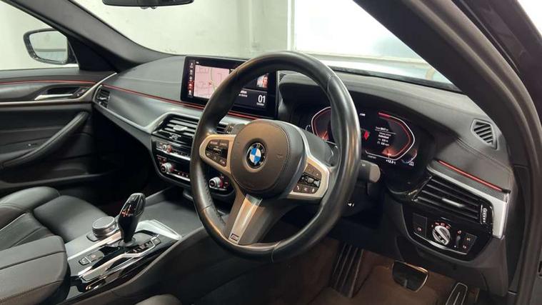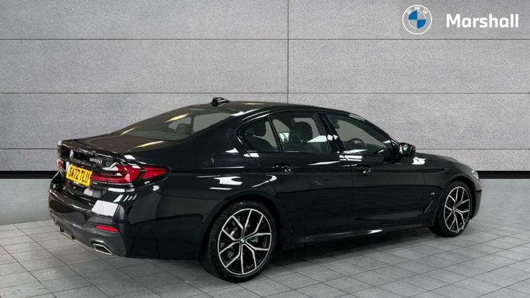 32GB hard disc drive (HDD) memory, Active Guard, Bluetooth connection, BMW ConnectedDrive online services, BMW Live Cockpit Professional sat nav system with 12.3" instrument display and high resolution control display, BMW Teleservices, Brake pad wear indicator, Cruise control with brake assist, Driving experience switch, eCall emergency call system, Electric Power Steering (EPS) with Servotronic, iDrive controller with shortcut buttons, Intelligent emergency call, Multifunctional instrument panel, Oil sensor for level and grade, On board computer inc. average speed, fuel consumption, liquid crystal Info display, journey computer, outside temperature display, personal profile, On-board diagnosis - OBD, Powered by Operating System 7.0, Service interval indicator, Speed limiting function, Stop/start button, 48V Mild hybrid technology, Diesel particulate filter, Drive performance control with ECO PRO comfort + sport mode, Engine cover with twin turbo designation, M sport suspension, Steptronic sport transmission with gearshift paddle switches on steering wheel, DAB Digital radio, Favourite buttons, Acoustic glazing, All round anti-corrosion system, Automatic windscreen wipers and automatic headlight, Automatically dimming rear view mirror, BMW Individual high gloss shadow line includes exterior mirror frame, window frame surround, B pillar finish, air breather in high gloss black, Body colour door handles, Body coloured bumpers, Door handle illumination, Dynamic brake lights with LED technology, Electric front and rear windows with fingertip open/close + anti-trap facility and comfort closing function, Electrically adjustable and heated exterior mirrors includes integrated direction indicators and automatic parking function, Folding exterior side mirror with auto- dimming, Follow me home headlight function, Heated windscreen washer jets, High gloss black active air stream kidney grille, LED daytime running lights, LED Headlights, LED third brake light, M designation on front side panels, left and right in chrome, M Sport exterior styling, Preparation for high beam assistant, Rear boot, Rear side wing doors, Trapezoidal visible exhaust tailpipes, 12V power socket in front and rear, 3 seat bench in 2nd row, Armrest - front and rear integrated door trim, centre console includes storage compartment, rear centre includes 2 cupholders, Child seat ISOFIX attachment with rear outer seats includes top tether, Cup holders (2 front and 2 rear), Front and rear footwell lights, Front reading lights, Height and length adjustable steering column and activation via lateral lever on the steering column, Lockable glove compartment with light, M door sill finishers, M specific pedals, M specific velour floor mats, Multifunction controls for leather steering wheel, Rear headrests, Single front passenger seat, Three spoke sport M leather steering wheel, Ambient lighting pack - 5 Series, Connected package professional - 5 Series, M Aerodynamic pack - 5 Series, Parking assistant pack - 5 Series, Airbags - driver/front passenger, rear and side, first and second row seats head airbags, front passenger seat airbag deactivation, Anti-lock braking system (ABS), Automatic Stability Control (ASC), Brake assist function, Brake energy regeneration, Cornering brake control (CBC), Crash sensor activating central locking release, hazard warning lights, fuel cut off and interior lighting, Deformation zones - front and rear with door reinforcements and bumpers up to 2.5 mph, DSC - Dynamic Stability Control, Dynamic brake control, Dynamic Traction Control - DTC, Electromechanical parking brake with automatic drive away release and auto hold function, Electronic brake force distribution, Engine drag torque control, Front and rear brake discs with interior ventilation, Front head restraints with anti-whiplash, Hill start assist, Mechanical child proof lock on rear doors, Passive protection for pedestrians, Rear door child safety locks, Side impact protection, Three point seat belts for all four seats, Two tone horn, Tyre pressure indicator, Warning triangle and first aid kit, Alarm system (Thatcham 1) with remote control and electronic engine immobiliser, Locking wheel bolts,