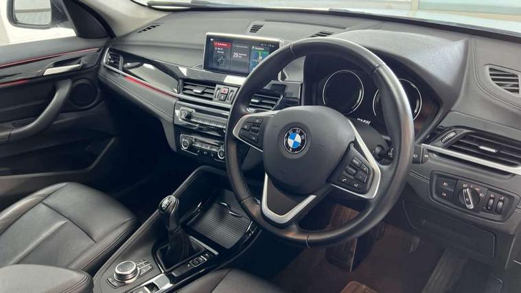 Active Guard incl speed limiting and lane departure functions with auto steering, and front collision warning with brake intervention, Ambient temperature display, Apple CarPlay, Arrow pointers, north up, direction of travel and perspective map displays, Attentiveness assist, Automatic tailgate opening, BMW ConnectedDrive, BMW Online services, BMW remote services, BMW Teleservices, Brake pad wear indicator in front and rear, Characteristic map controlled oil pump system, Cruise control with brake assist, Front axle single joint with specific axle kinematics to minimise drive influences on steering + provide increased rigidity agile driving behaviour, Front/rear park distance control (PDC), Instrument cluster with Black optic display featuring superimposed dials and 5.7" colour display, Instrument cluster with speedometer with miles per hour read out, tachometer and fuel gauge, Integrated hard drive with map data updates via USB interface, Lights on warning by audio warning signal when ignition is switched off, On board computer, Operation by iDrive with direct selection buttons and 8 programmable buttons, Optimum shift indicator, Outside temperature gauge, Park assist system, Personal Profile - automatic lock when driving away selectable, Real time traffic information, Rigidly mounted rear subframe - Multi link construction with separate spring / damper configuration and excellent driving characteristics, Service interval indicator, Servotronic PAS, Tyre puncture warning system, 12V compressor with integrated sealant injection bottle and hose, Aluminium lightweight construction including crankcase, Anti-roll bars, Balancer shaft, Double VANOS, Drive performance control with ECO PRO comfort + sport mode, High precision injection, Performance Control, Standard suspension, Stop/start function, Turbocharger with Valvetronic, Twin tube gas filled shock absorbers with degressive characteristic curve, BMW professional radio includes amplifier power 100w, Two mide range speakers in door trims and two woofers as central bass speaker under front seats, DAB Digital radio, Adjustable headlights, Aero curtain, Automatically dimming rear view mirror, BMW Icon design LED daytime driving lights, Body colour bumpers, Body colour door handles, Body colour door mirrors, Direction indicator side lights integrated exterior mirrors, Dynamic brake lights, Electric windows - front and rear, with open/close fingertip control, anti-trap facility and comfort closing, Electrically adjustable door mirrors with aspheric on driver side, convex on passenger side with integrated indicators, Exclusive front door sill finishers with BMW designation, Exterior mirrors - electrically folding with anti-dazzle, Follow me home headlights, Front air guide finished in black silver, Front air inlets in matt black with silver finisher matt, Front and rear bumper system, Front bumper underbody protection in silver matt, Green tinted heat protection glazing glass, Headlight beam throw control, Heated door mirrors, Heated windscreen washer jets, High level third brake light, Kidney grille with 14 chrome matt aluminium fronted with black matt sides vertical bars, LED direction indicator lights in headlight eyebrow, LED front fog lights, Lightweight engineering, Model designation, Rain sensor including auto headlights activation, Rear bumper underbody protection in black silver with silver matt insert, Rear fog lights, Rear window aerial, Rear window wash/wipe, Reversing light in rear light cluster, Roof mouldings in matt black, Shark fin antenna, Sill cover matt black with matt silver insert, Single chrome exhaust tailpipe, Two eye face design on light, Visible VIN plate, Welcome lighting, 12v power point in centre console, 2 cup holders in front, 3 rear headrests, 3 spoke sport leather steering wheel, 40:20:40 split folding rear bench seat, Boot light, Centre armrest in 20 degree part rear seat backrest, Child seat ISOFIX attachment for two outer rear seats and front passenger seat with anchorage points, Conditioned based service, Dakota leather upholstery with perforation and contrast stitching, Driver and front passenger heated seats, Driver/front passenger seat backrest back with luggage net, Dual zone automatic air conditioning, Four grab handles integrated in roof linings, Front and rear side armrests integrated into door trim, Front centre armrest/sliding cover, Front centre interior light over interior mirror and rear centre automatic interior light when door is opened/ignition switched off or via remote key, Front/rear adjustable head restraints, Illuminated glovebox, Leather gearknob/gaiter/handbrake grip, LED ambient lighting in door trim, Luggage area underfloor compartment, Luggage compartment access via recessed handle below tailgate, Luggage compartment lighting, Luggage compartment loading edge with stainless steel insert, Manually adjustment steering wheel column, Multifunction steering wheel, Rear coded belt buckles, Standing free front adjustable armrest and fixed in different positions, Sunvisors with vanity mirrors and ticket pocket, Velour floor carpets, Extended lights pack - X1, Extended storage package - X1, ABS/EBD, Audio/visual collision warning system, Automatic Stability Control (ASC), Battery safety cut-off, BMW emergency call, Brake drying, Brake energy regeneration, Braking readiness, Collision mitigation braking system, Cornering brake control (CBC), Crash Sensor - activates hazard/interior lighting + unlocks doors, Driver/Front Passenger airbags, Driver/front passenger side airbags, Dynamic brake control, Dynamic stability control + (DSC+), Dynamic Traction Control - DTC, Electronic differential lock control (EDLC), Electronic parking brake, Front and rear head airbags, Front passenger airbag deactivation, Front seatbelt force limiters, Front ventilated disc brakes, Hill start assist, Pyrotechnically pre-tensioned front seatbelts, Rear disc brakes, Rear door child safety locks, Seatbelt security check 