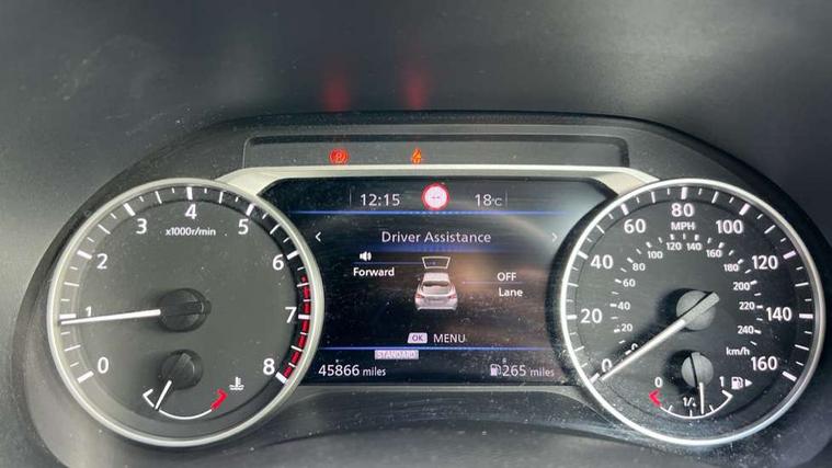 7" full colour TFT screen combimeter, 8" infotainment colour display with touch screen, Apple CarPlay and Google Android auto, Drive modes select (Eco, normal and sport), Emergency and breakdown call, Front parking sensor, Idle start/stop system, Intelligent lane intervention, Lane departure warning system, Nissan connect nav with TomTom traffic, Nissan connect services and Wifi connection, Outside temperature sensor, Power Steering, Rear parking sensor, Traffic sign recognition, Trip computer, Gasoline particulate filter, 6 speakers, Bluetooth system, USB, Aux-in and 12V socket, DAB Digital radio, Rear console USB port, Auto dimming interior rear view mirror, Automatic hazard signal with emergency stop signal, Body colour bumpers, Body colour door handles, Electrically adjustable door mirrors with integrated indicators, Follow me home headlights, Front and rear electric window with one touch driver and passenger window, Heated and auto folding door mirrors, High beam assist, LED daytime running lights, LED front fog lights, LED headlamps, LED rear fog lamp, LED rear lamps, Rain sensor windscreen wipers, Rear privacy glass, Rear spoiler, Rear wiper, Three blink turn signal, 3 height adjustable rear headrests, 60/40 split folding rear seat, Automatic climate control, Card holder on driver sunvisor, Cloth upholstery, Door ambient lighting, Driver and passenger sliding and reclining seats, Driver seat back pocket, Driver side rear coat hanger, Driver/passenger sunvisors and illuminated vanity mirrors, Front and rear cabin lights, Front armrest, Front door pockets with bottle holders, Front head restraints, Front/rear passenger grab handles, Gear console ambient circle lighting, Grey synthetic leather kneepad, Height adjustable driver's seat, Internal chrome door handles, Leather gearshift knob, Leather steering wheel, Luggage board, Luggage space lighting, Monoform sporty seats, Multifunction steering wheel, Passenger seat back pocket, Rear door bottle holders, Telescopic steering wheel adjustment, Two cupholders in front centre console, Two rear isofix child seat anchorage points with top tether, Voice recognition switch on steering wheel, Welcome light and console tray ambient lighting, ABS with EBD and brake assist, Active ride control, Active Trace Control, Driver and passenger airbags, Driver and passenger side airbags, Electric handbrake with auto hold function, Electronic Stability Programme (ESP), Front and rear curtain airbags, Height adjustable seatbelts, Hill start assist, Intelligent emergency braking with pedestrian and cyclist recognition, Seatbelt reminder for driver/front passenger and rear seats, Single tone horn, Three 3 point rear seatbelts, Traction control, Tyre pressure monitoring system, VDC Dynamic Vehicle Control, Ventilated rear brake discs, Alarm, Immobiliser, Intelligent Key with push button starter, Remote central locking,