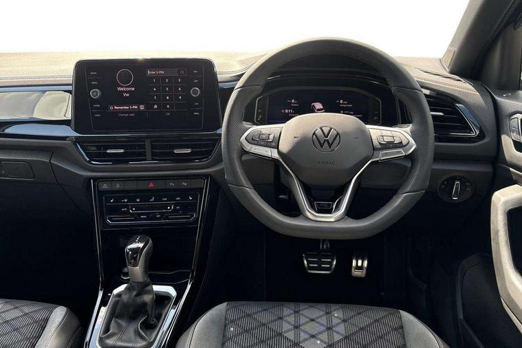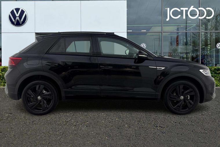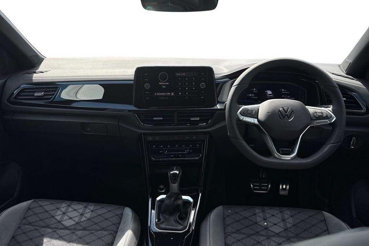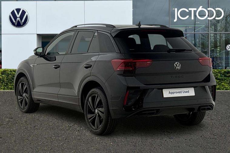 10.25" Digital cockpit pro, Advanced driver attention and drowsiness monitor, Emergency call service, Lane keeping system Lane Assist, Mobile phone interface, Modified key software - reduce switch off time for key status change to Long no motion, Online services, Park assist including front and rear parking sensors, Power assisted speed sensitive steering, Service interval indicator, Tailgate/trunk lid release from outside, Think blue trainer driver tips and journey analysis, Warning sound and light for front seatbelts unfastened, Wireless app connect, Battery regeneration during braking, Rear shock absorption chassis with increased ride height, Start/stop function with battery regeneration, DAB Digital radio, Diversity antenna for FM reception, Front and rear 6 speakers, Music playback - MP3, WMA and AAC files, Premium USB cable in choice of either Apple or Android smartphone compatibility, SD card slot, Simultaneous pairing of 2 compatible mobile devices, Title and cover art display, We Connect and We Connect Plus functionality, Auto dimming interior rear view mirror, Automatic hazard lights activation under emergency braking, Automatic headlight control with LED separate daytime running lights with coming/leaving home function, Dynamic cornering light, Electrically adjustable and heated door mirrors, Extended roof spoiler, Exterior mirrors aspherical on driver side, convex on front passenger side, External USB type C socket and charging sockets, Front windscreen wiper with intermittent wipe and 4 position delay, Heated rear window, Illuminated front grille, IQ LED matrix headlights, LED 3rd brake light, LED rear number plate lights, LED rear tail lights with dynamic turn signal, Light mode for poor weather, rain, fog or snow, Power windows with comfort operation and circuit breaker, R-Line design body coloured bumpers, Rain sensor, Rear exhaust tailpipe, Rear fog light on one side and reversing lights on both sides, Rear side wing doors, Rear wash/wipe with intermittent wipe setting, Remote electrically foldable door mirrors, puddle lights and reverse activated passenger's door mirror, 12V power socket in centre console, 3 rear head restraints, 3 seat bench in 2nd row, 4 load lashing points in luggage compartment, Air care climatronic air conditoning system with active combination filter and 2-zone temperature control, Artvelours cloth upholstery, Black roof lining, Chrome plated radiator grille inserts, air vent surrounds and light switch surrounds, Door and side trim panel with leatherette insert, Drawer under drivers seat, Driver seat height adjust, Driver's seat lumbar support, Front + rear carpet mats, Front centre armrest, Front comfort sports seats, Front cupholders x 2, Front footwell illumination, Front reading light, Front scuff plates with R Line logo, Front seat back storage pockets, Glove compartment door with light, Instrument lighting, white adjustable panel illumination, Interior ambient lighting and surround lighting, Interior light delay, Isofix child seat preparation, Leather gearshift handle, Leather wrapped multifunction steering wheel with paddle shift, Load-through provision with cup holder when folded down ('Unsplit rear seat bench, split folding backrest, with centre armrest), Luggage compartment lighting, Non-folding front passenger seat backrest, Passenger seat height adjuster, Passenger seat lumbar support, Single front passenger seat, Stainless steel pedals, Storage compartment in left and right luggage area, Storage compartment in rear doors, Storage compartments in driver and front passenger doors, Sunvisors with illuminated vanity mirrors, Variable boot floor, height adjustable and removable, Winter pack without heated windscreen washer jets - T-Roc, 3 point height adj front seatbelts + pretensioners, 3 point seatbelts in outer rear with ECE label, ABS, Child locks on rear doors, City emergency braking and pedestrian monitoring, Driver and front passenger airbag with front passenger airbag deactivation, Driver and front passenger safety-optimised head restraints, Drivers seatbelt reminder, Electronic parking brake, Electronic Stability Control (ESC) inc EDL (Electronic Differential Lock) and ASR (Traction Control), Front and rear passengers curtain airbag system including front side airbags, Front disc brakes, Hill start assist, Predictive pedestrian protection, Rear disc brakes, Two tone horn, Tyre pressure loss indicator, Volkswagen roadside assistance, Tool kit, Trims for alloy wheels, Tyre mobility kit including compressor and sealing foam,