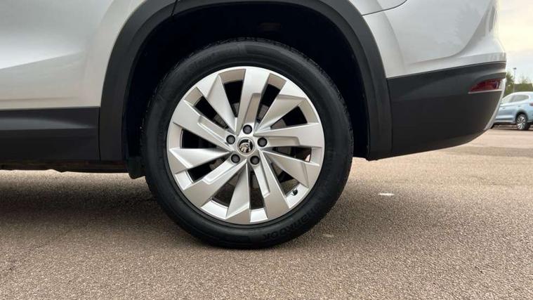 13" satellite navigation touchscreen display, Blind spot detection with door exit warning, Bluetooth system, ChatGPT functionality, Drive mode selector, Driver alert with fatigue sensor, Driver drowsiness alert system, Dry display cleaner, e call+, Front cross traffic assist, Lane assist, PAS, Rear traffic assist, Tailgate unlocking from outside, Traffic sign recognition, USB C Port x 2 in front centre console, Virtual Cockpit - 10.25" digital display, Voice control system, Wireless charging for two smartphones (15W) with cooling function, Wireless SmartLink for Apple CarPlay and Android Auto, Stop/start function, 2x USB-C in the rear, DAB Digital radio, Aero front windscreen wipers with intermittent function, Auto dimming rear view mirror, AWL (all weather lighting) and all weather light with cornering function, Black wheel arch surrounds, Body colour bumpers, Body colour door mirrors and handles, Cornering light and poor weather light, Electric folding /adjustable/separted heated/folding door mirrors, auto dimming with boarding sports and memory function, Electric front and rear windows, Exterior black decorative trims, Heat insulating glass in windshield, Heated rear window, Ice scraper in fuel tank cap, Invisible tailpipe, LED daytime running lights, LED rear fog light, LED third brake light in rear spoiler, Light assistant with automatic headlight control and coming home feature, Logo projection in door mirrors, Privacy glass, Rear side wing doors, Rear spoiler, Rear window wiper, Red decorative strip between rear LED lights, Safety reflectors on front and rear doors, Window control switches with black trim, Windscreen wipers with rain sensor, Without engine designation, 1.5l bottle holder points in all door, 12V socket in boot, 1x centre rear reading light, 2 seat bench in 3rd row, 3 configurable smart dials with 32mm coloured display, 3 seat bench in 2nd row, 4 foldable roof handles with rear coat hooks, Ambient interior lighting - Dashboard, front-door stowage compartments, front and rear door panels and footwell lighting, Automatic gear selector on steering wheel, Chrome interior door handles, Driver/front passenger reading lights, Fabric headlining, Fixed bench 40:60:40 split folding backrests, Front and rear floor mats, Front centre armrest with jumbo box storage compartment, cup holder and 12V socket, Front courtesy lights, Height adjustable front headrests, Isofix child seat fittings in outer middle row rear seats and front passenger with top tether, Manually adjustable steering column, Pollen filter, Rear centre armrest with cupholders, Rear seat boot backrest release, Retractable luggage compartment cover, Single front passenger seat, Sliding trunk cover, Small Bags on the inner sides of the front backrests, Storage pocket including mobile phone pockets on the backs of the front seats, Sunvisors with illuminated vanity mirrors, Three rear height adjustable headrests, Ticket holder on A Pillar, Tri zone climate control, Umbrella in door panel x1 made from sustainable materials, Upper and lower glovebox with card holder and coin compartment, USB C port by rear view mirror for charging only (15W), Exterior styling pack - Kodiaq, Auto door release and activation of warning lights in the event of an accident, Driver and front passenger airbag with knee airbag and front passenger airbag deactivation, Electric child locks, Electronic parking brake, ESC (incl. ABS+EMD+MSR+ASR+EDL+HBA+DSR+RBS+ESBS+MCB+TSA+XDS), Front assist with braking reaction to vehicles, pedestrians and cyclists, Front disc brakes, Fuel cut off safety device, Height adjustable front 3 point seatbelts + pretensioners, Hill hold control, Junction assist with automatic emergency braking, Rear disc brakes, Safety vest holder in door, Seat belt reminder for all seats, Three point rear seat belts, Two tone horn, Tyre pressure monitor, Anti-theft wheel bolts, Immobiliser, Remote central locking with 2 keys, Breakdown kit,