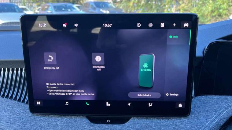 13" touchscreen display with satellite navigation, 4x USB-C ports (2x in front centre console and 2x in rear) (45W), Adaptive cruise control with speed assist, lane assist plus and traffic tram assist, Blind spot detection with door exit warning, Bluetooth system, CareConnect and Emergency Call, ChatGPT functionality, Driver fatigue sensor, Front assist with extended predictive pedestrian protection, Front cross traffic assist, PAS, Quick start all heating software functionality, Rear view camera with washer, Stop/start engine system, Traffic sign recognition, Turn assist with evasive assistance, Virtual Cockpit - 10.25" digital display, Voice control system, Wireless charging for one smartphone (15W) with cooling function, Wireless smartlink apple carplay, SmartLink+ android auto, 8 Speakers, DAB Digital radio, Display cleaner, FM radio connection, Web radio connection, Acoustic side windows and interior noise suppression, Backdrop lighting, Body colour door handles, Body coloured door mirrors, Chrome roof rails, Chrome window surround, Electrically adjustable, heated, folding and driver side auto-dimming door mirrors with integrated indicators and logo projection, Frameless auto-dimming rear view mirror with USB-C, Front windscreen with heat-insulating glass, Ice scraper in fuel tank cap, LED 3rd brake light, Light assist with High beam control, Light assistant (coming/leaving home/tunnel light), Privacy glass, Rear fog light (x1), Rear roof spoiler, Rear side wing doors, Rear windscreen wiper, Tow bar preparation, Unique dark chrome design logo on alloy wheels, Unique dark chrome grille surround with dark chrome rib elements, Windscreen wipers with rain sensor, 12V socket 1x centre console 1x boot, 12V socket and 2x cargo elements in boot, 2 spoke multifunction steering wheel with DSG paddles, 3 seat bench in 2nd row, 4x foldable bag hooks in boot, 60:40 Split folding rear seats, Bottle holders in the front doors 1.5 litre bottle and rear 1.5 litre bottle, Cup holder in front with easy open mat, Front and rear footwell illumination, Front armrest with storage box, Front comfort seats, Heated front seats, Height adjustable driver and front passenger seats with 2-way electric tilt, 4-way pneumatic lumbar support, and extendable thigh support, Height adjustable front and rear head restraints, Height adjustable front passenger seat, Illuminated glovebox, Interior lights with control switches, Isofix child seat fittings in outer rear and front passenger seats, LED front and rear reading lights, Massage function for front seats, Single front passenger seat, Skoda lettering on steering wheel, Storage pockets on back of front seats, Sun visors with illuminated vanity mirrors, Ticket holder on A Pillar, Tri zone climate control, Umbrella in driver's door, 3 rear seatbelts, 8 Airbags - Front driver and passenger, front side driver and passenger, centre, curtain front and rear, drivers knee, Crew protect assist, Driver and passenger seatbelts with warning light, Electronic parking brake, ESC including ABS, EBV, MSR, ASR, EDS, HBA, DSR, RBS, CBC, multi-collision brake (MKB) and Auto hold, Hill hold assist, Power operated child lock in rear doors, Alarm with interior monitoring tilt sensor and back up horn, Backrest remote release from trunk, Electronic engine immobiliser, Keyless start/stop, Remote central locking with SAFE system, Third key, Decorative front door sills,